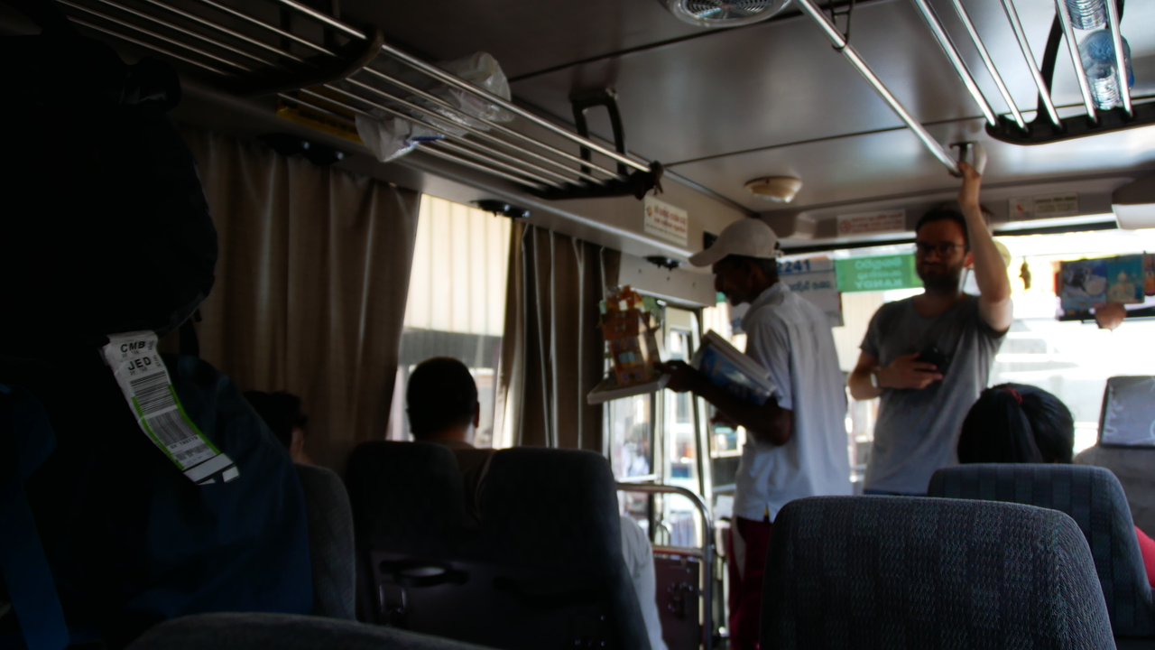 Wir waren im Vorfeld gewarnt worden, dass Busfahren in Sri Lanka lebensgefährlich sei und es oft zu schweren Unfällen komme. Und tatsächlich lässt sich der Fahrstil der Busfahrer nur mit dem Wort Kamikaze beschreiben. Besonders die Überholmanöver am laufenden Band und der Anspruch, durchweg entweder Vollgas zu geben oder voll in die Eisen zu gehen, ist erst einmal sehr gewöhnungsbedürftig und lädt nicht zum Relaxen ein. Wie Simon uns empfohlen hat, sitzen wir in der Mitte des Busses, um bei einem etwaigen Unfall bessere Karten zu haben. Als wir uns an die Fahrweise gewöhnt haben und Vertrauen in die Fähigkeiten des Busfahrers gefasst haben, können wir etwas entspannen. Für 115 Kilometer Fahrt in die Bergregion benötigen wir vier Stunden und zahlen 1.080 Sri Lanka Rupien, also umgerechnet knapp 2 Euro pro Platz.
