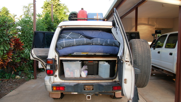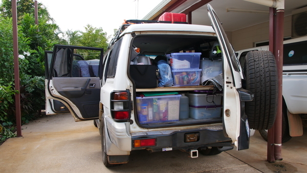 Als zusätzliche Ausstattung besorgen wir einen gebrauchten 3-Wege-Kühlschrank, der praktischerweise mit Gas, 12 Volt und 240 Volt betrieben werden kann. Der nette Vorbesitzer Alex schenkt uns dazu noch ein aufklappbares Minizelt, das wir zusammen mit unserer Campingdusche als Duschkabine verwenden können. Wir komplettieren die Küchenutensilien und besorgen Yogamatten, plüschige Gurtpolster und Lichterketten zur Beleuchtung von Kofferraum, Dachzelt und Markise - keine Angst, bei über 30 Grad kommt trotz Lichterkette keine Weihnachtsstimmung auf. Als nützlich erweisen würden sich außerdem eine Kassette mit AUX-Anschluss fürs Handy und eine ThermaCell zur Abwehr von Moskitos. Fündig werden wir auf unserer Shoppingtour beim Baumarkt Bunnings, dem günstigen Allzweckladen Kmart, dem Automobilausstatter AutoBarn und einer Reihe von Campingausstattern. Letztere führen ein sagenhaftes Sortiment an Angelausrüstung, was die Leidenschaft vieler Australier ist, und Camping World verkauft zu unserer Verwunderung gebrauchte Militärausrüstung wie Munitionskisten. An einem Samstagmorgen ist der Paji vollständig bestückt und wir wollen gerade Richtung Litchfield Nationalpark aufbrechen. Doch es kommt anders...