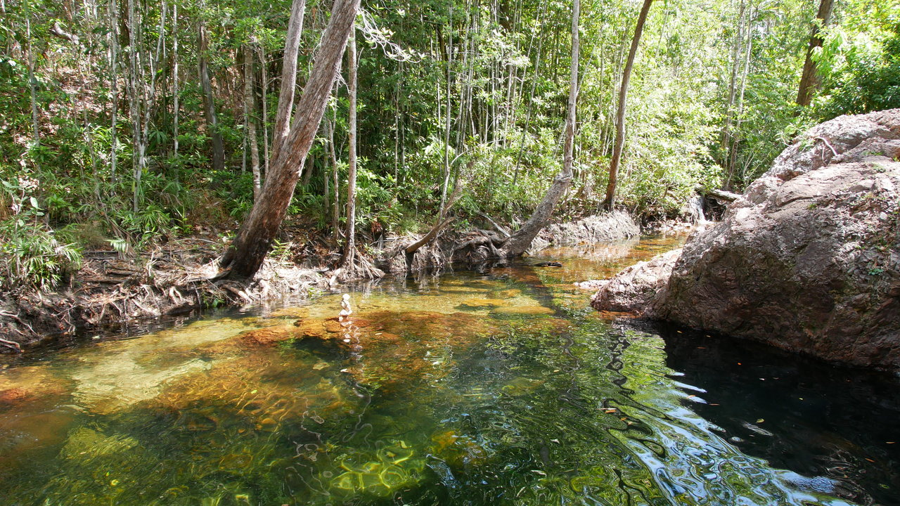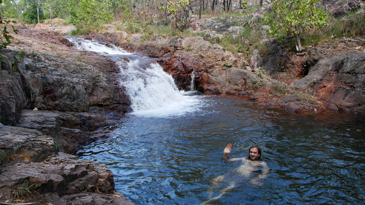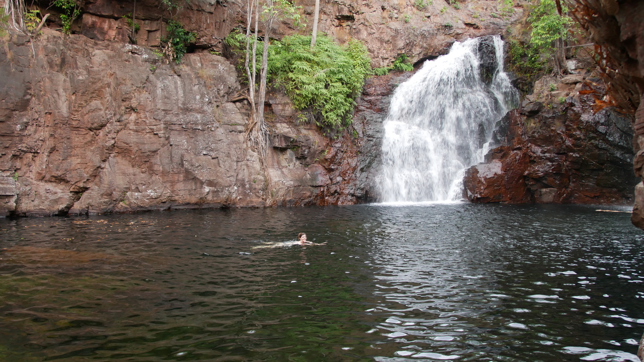 Wer es liebt, in kristallklaren Felsbecken neben Wasserfällen zu schwimmen, ist in Litchfield goldrichtig. Vermutlich ist das neben der kürzeren Fahrtzeit auch der Grund, weshalb der Nationalpark bei den Bewohnern des Territory beliebter ist als der bekannte Kakadu Nationalpark. So sagt man hier „Lichtfield-do, Kaka-don‘t”, wie wir von Tim erfahren. Viele der Wasserlöcher sind leicht zugänglich, andere nur durch eine Wanderung zu erreichen. Da in der Gegend gefährliche Leistenkrokodile leben, gibt es regelmäßige Krokodil-Kontrollen in den Zonen, die zum Schwimmen freigegeben sind (so genannte „croc patrols“). Wir sind begeistert von den vielfältigen Wasserfällen: