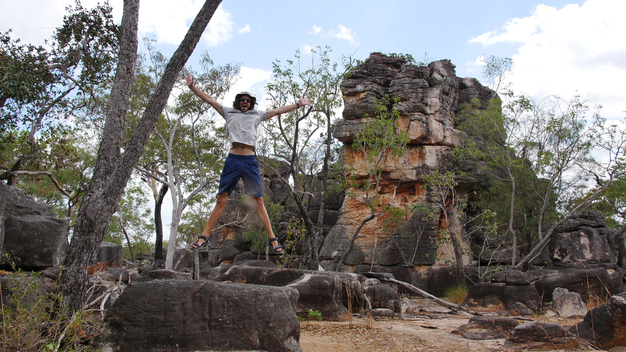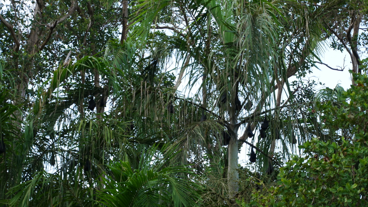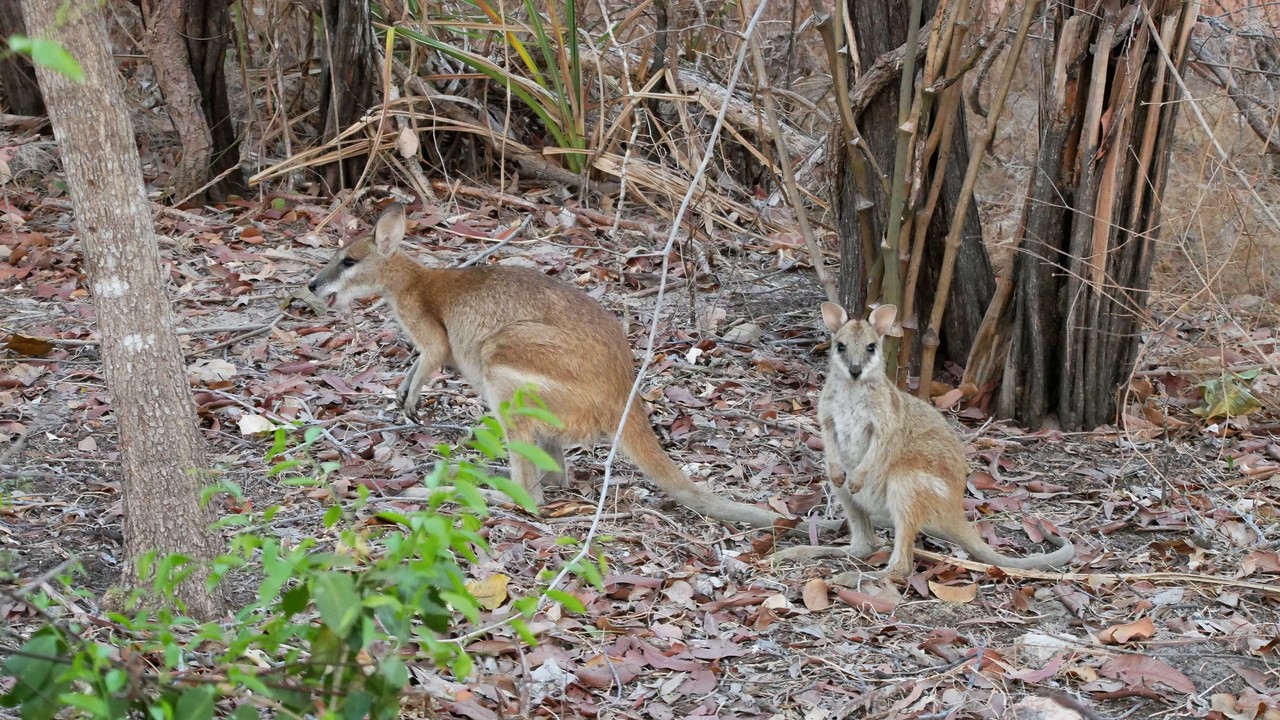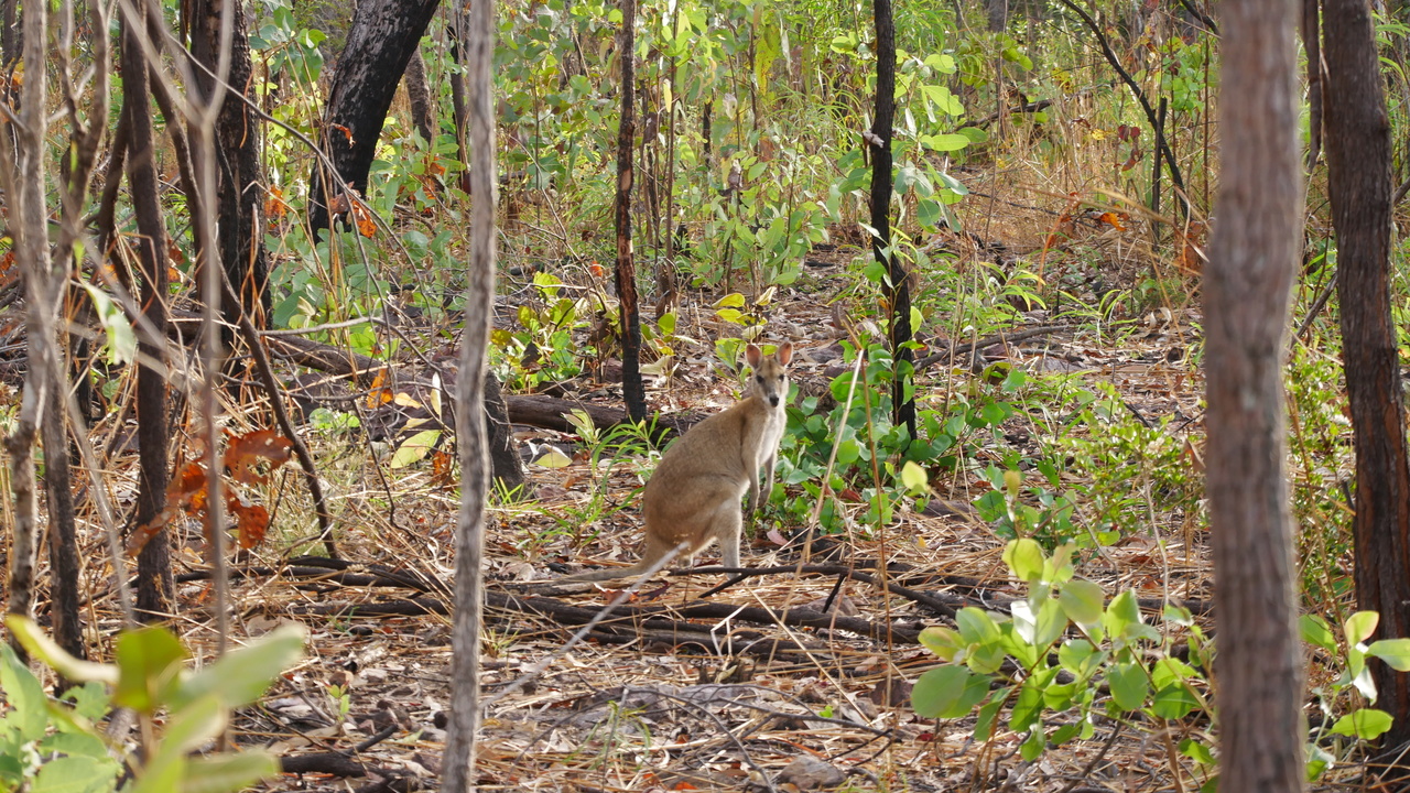 „Please do not feed the wildlife“. Als wir in der Abenddämmerung mit unseren Camping-Kochern kochen, sehen wir zwei süße Wallabys auf Nahrungssuche durchs Unterholz hüpfen. Wir hätten sie zu gerne mit etwas Essbarem angelockt, halten uns aber an die Vorschrift. Später flattern scharenweise Flughunde mit ihren Rufen durch die Dämmerung, bevor sich uns ein sternenklarer Nachthimmel samt Milchstraße präsentiert. Als früh morgens wir auf die Anhöhen der Wangi Falls wandern, treffen wir die Flughunde wieder an: jetzt hängen sie schlafend in den Bäumen, wo sie sich ab und zu kühle Luft zu fächern und unablässig vor sich hin brabbeln. Im Sumpfgebiet des Tabletop Swamp beobachten wir flinke Vögel, die sich auf Beutejagd ins Wasser stürzen und blitzschnell wieder auftauchen.