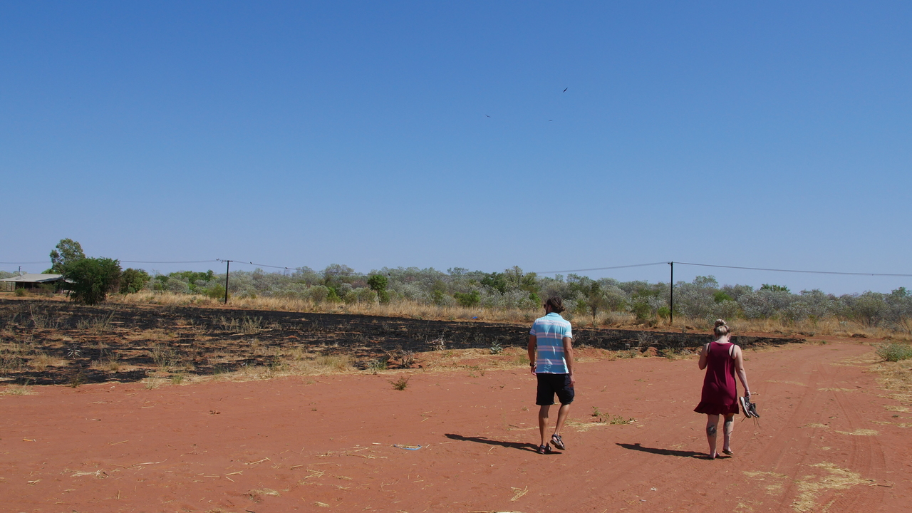 Am nächsten Morgen spazieren wir mit Ebony durch die Community und lernen einige der Bewohner kennen. Während die Älteren die lokale Aborigine-Sprache sprechen, unterhalten sich die Jüngeren in Kreolisch. Einerseits haben die Menschen hier Smartphones und Haustiere, andererseits pflegen sie weiterhin einige ihrer uralten Traditionen. So jagen sie Goannas (riesige Echsen), sammeln Buschmelonen und kümmern sich um das Land. Ein großes Aschefeld inmitten der Community zeugt vom Feuer des Vortags. Die Bewohner haben einen Landstrich angezündet, um die Schlagen zu vertreiben, die hier ein echten Problem darstellen und von denen die meisten giftig sind. Am selben Morgen wurde traurigerweise der Hund des Jungen Tys von einer Schlange getötet.