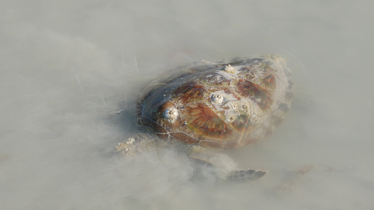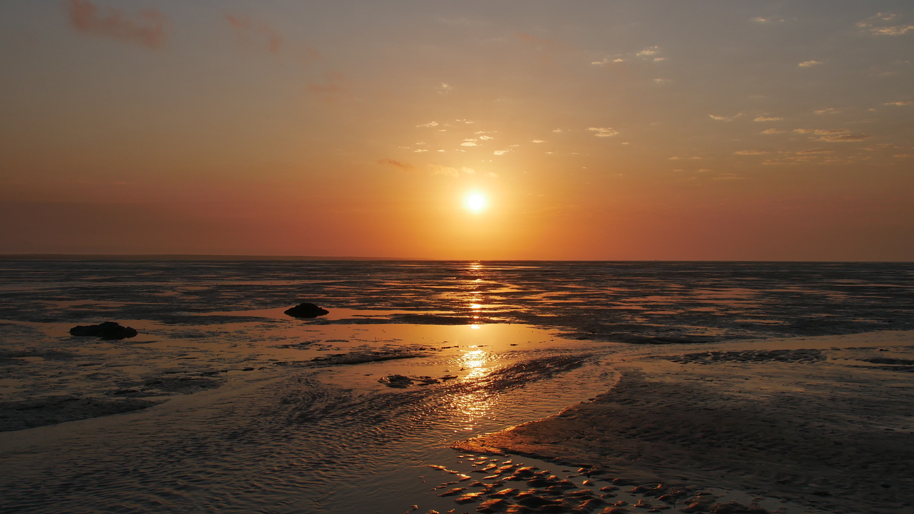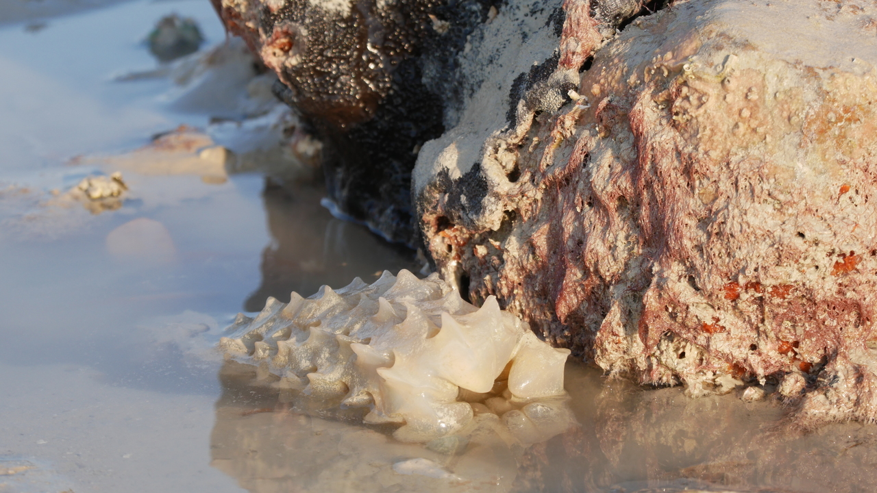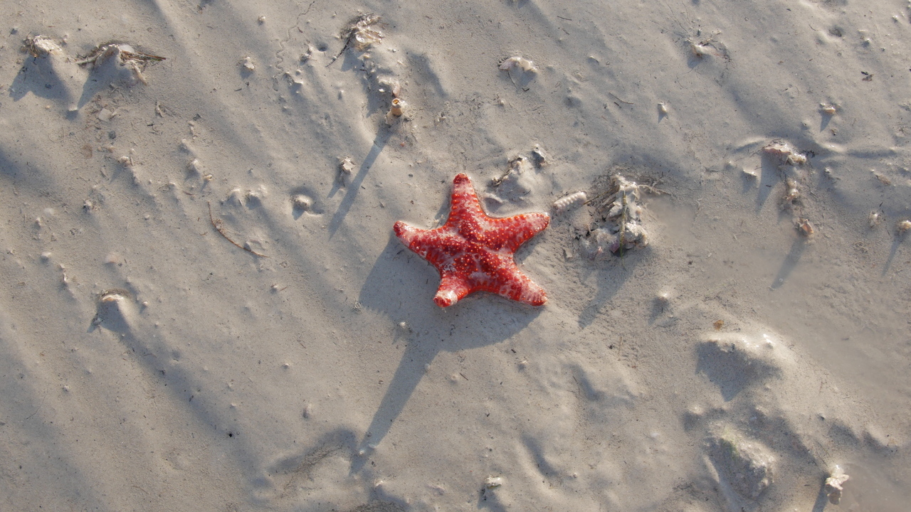 Um 05:30 Uhr wandern wir durchs Watt, als die Sonne über dem Meer aufgeht. Seesterne, Krebse, Pelikane und eine Meeresschildkröte leisten uns Gesellschaft. An einigen Stellen sinken wir knöcheltief ins Watt ein, an anderen waten wir knietief durch die Wasserströme, die ins Meer zurückfließen. Nach 1,5 Kilometern erreichen wir unser Ziel: mehrere Flugbootwracks aus dem Zweiten Weltkrieg. Obwohl sie tief im Sand versunken und von Muscheln überwuchert sind, sind die Boote und Turbinen noch als solche erkennbar. Die Flugboote tauchen nur bei extrem niedriger Ebbe aus dem Meer auf und dass dies tagsüber passiert, kommt nur alle paar Wochen vor. Wir verdanken das besondere Erlebnis unserer Wattwanderung also dem Mond.