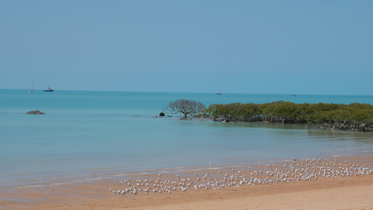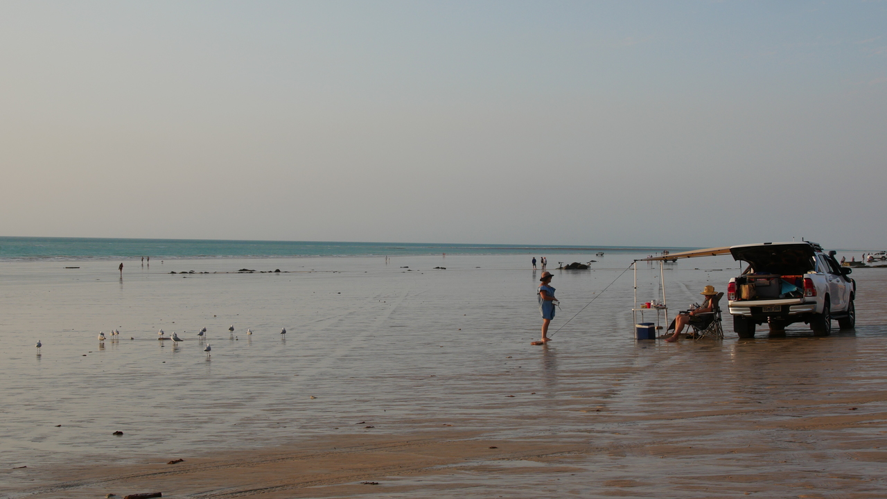 Eine ganze Reihe inspirierender Begegnungen runden unsere Zeit in Broome ab. In der Bibliothek lauschen wir dem fesselnden Vortrag des Neuseeländers Jeremy Scott, der in 2,5 Jahren von London nach Auckland geradelt ist dank einer Herz-OP, die ihm als Vierjähriger das Leben rettete. Am Town Beach lernen wir eine vierköpfige Familie aus Sydney kennen, die gerade ein Jahr lang mit einem Segelschiff Australien umrundet, das sie in Malaysia gekauft haben. Das Homeschooling laufe so lálá. In der Bib sehen wir immer wieder Familien beim Homeschooling. So zum Beispiel eine Familie aus Melbourne, die mit vier Kindern und sechs Fahrrädern in einem Pop-up-Campertrailer unterwegs ist und die wir bereits im Kakadu-Nationalpark kennen gelernt haben. Auf unserem Caravan Park scheinen viele Australier in ihren Wohnwagen zu wohnen und – zumindest zeitweise - in Broome zu arbeiten. Nach etlichen Begegnungen stellen wir fest: „Work and Travel“ machen hier nicht nur deutsche Abiturienten, sondern ist der Lebensstil vieler Aussies.