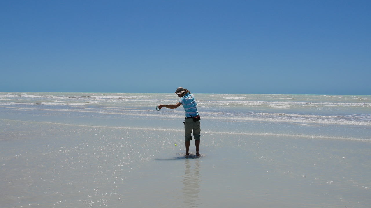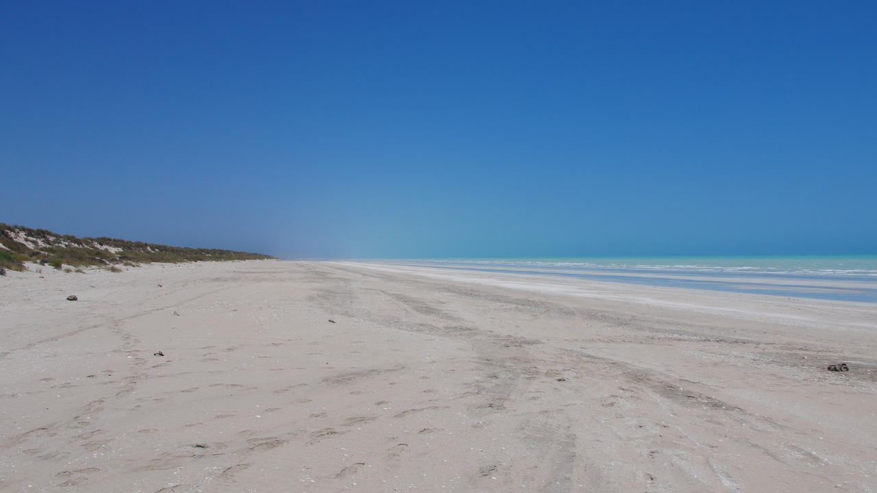 Weißer Sand soweit das Auge reicht - der 80 Mile Beach macht seinem Namen alle Ehre. Süße Winzmöwen laufen über den Sand und exotische Muscheln sehen so aus, als wäre ein Seestern aus ihnen geschlüpft. Anfangs haben wir die Idylle ganz für uns allein. Cape Leveque hat unsere Angellust entfacht, zumal man in Western Australia für die meisten Gewässer keinerlei Angellizenz benötigt (für den Ozean grundsätzlich nicht). Am 80 Mile Beach testet Max unser frisch gekauftes, minimalistisches Angelequipment, aber die Versuche mit der Angelschnur sind bei Ebbe nicht von Erfolg gekrönt. Mal sehen, ob irgendwann noch ein Fisch anbeißt.
