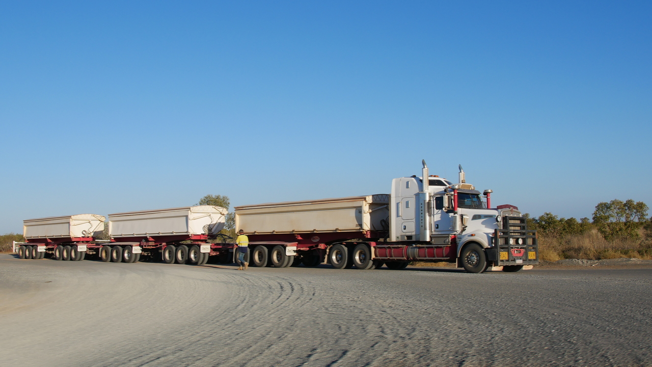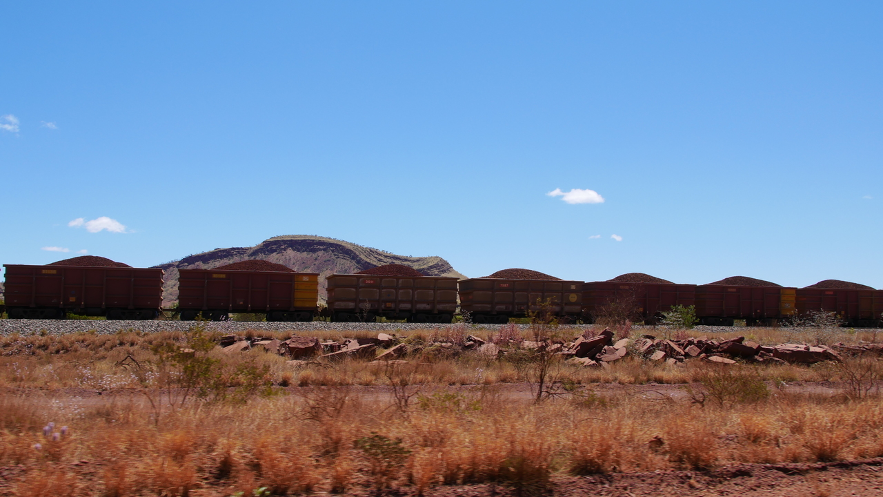 Die Pilbara-Region lebt vom Bergbau. Von Eisenerzminen wie der Marandoo Mine tuckern kilometerlange Güterzüge in Richtung der Hafenstädte Port Hedland und Dampier. Hinzu kommen ellenlange Road Trains, die in Australien zur Versorgung entlegener Regionen oder wie hier zum Transport von Schüttgut dienen. Da es vielerorts kaum Verkehr gibt, warten Road Trains mit beeindruckenden Dimensionen auf - Zuglängen von bis zu 53 Metern und ein Gesamtgewicht von 132 Tonnen. Zum Vergleich: ein normaler Lkw ist maximal 19 Meter lang und ein Gigaliner 25 Meter. In Western Australia dürfen Road Trains mit 100 km/h unterwegs sein. Da wir dem Paji meistens nur 90 km/h zumuten, kommt es schon mal vor, dass uns ein Road Train überholt. Ein solches Überholmanöver dauert manchmal eine ganze Weile und ist nicht immer ungefährlich...