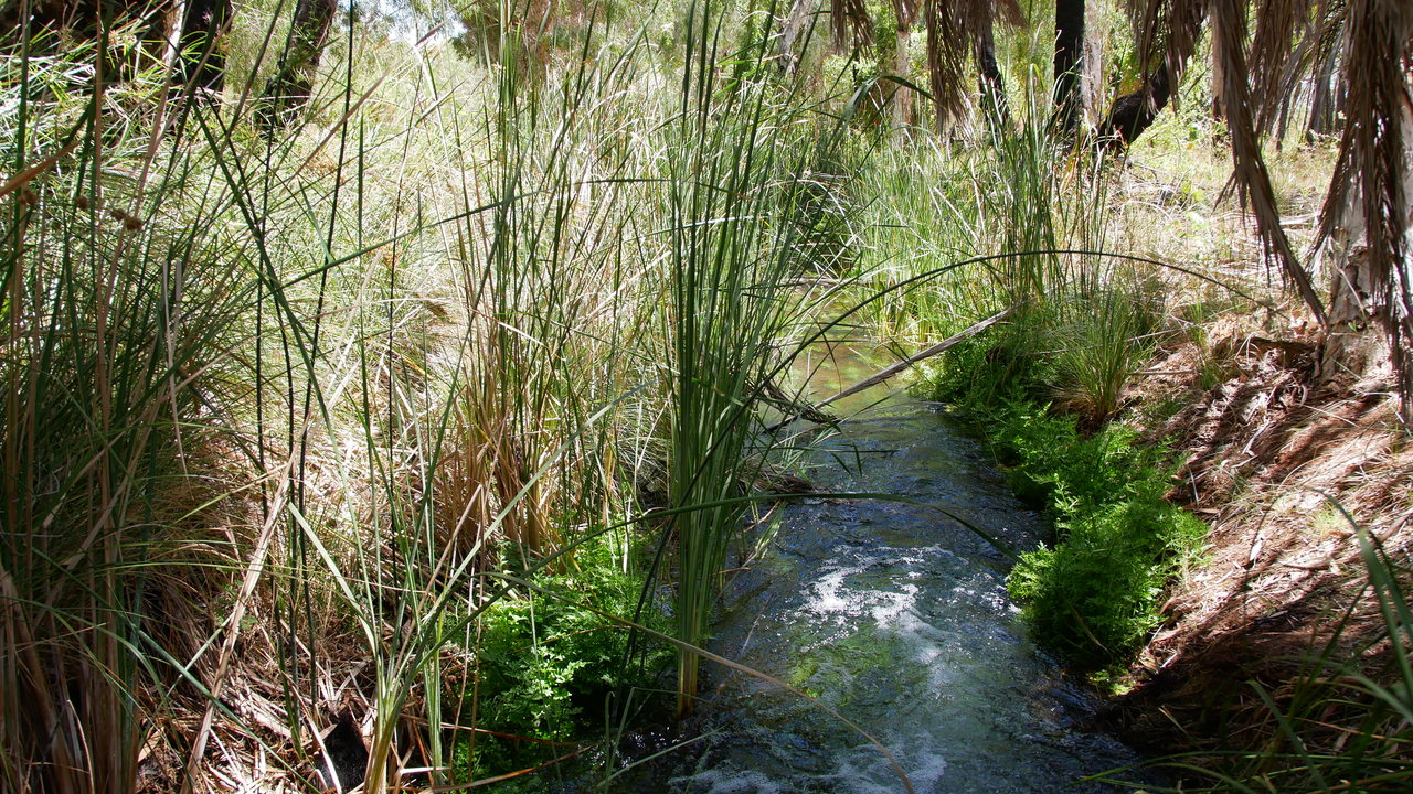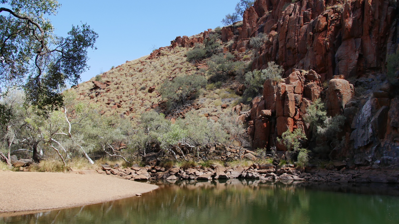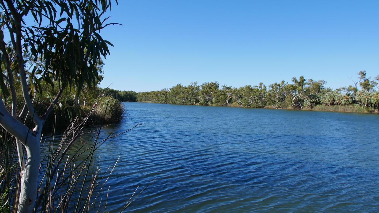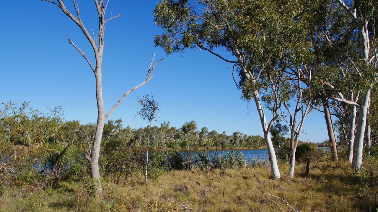 Wir sind in dieser Nacht die einzigen Gäste auf dem Campingplatz. In den frühen Morgenstunden hüpfen Kängurus um unser Fahrzeug herum. Morgens wandern wir über den Wetland Walk zu einem Seerosenteich, der für die Aborigines der Region von großer kultureller Bedeutung ist. Wir fühlen uns wie in einer Oase inmitten der Wüste: sprudelnde Bäche, saftige Gräser, Palmen und Myrtenheiden („paperbark tree“) umgeben uns und viele bunte Libellen surren durch die Luft. Ein Picknicktisch inmitten von weichem Klee lädt uns zum Frühstücken ein - bis wir vor einer Invasion aggressiver, beißender Ameisen heimgesucht werden und auf die Veranda des Homestead flüchten.