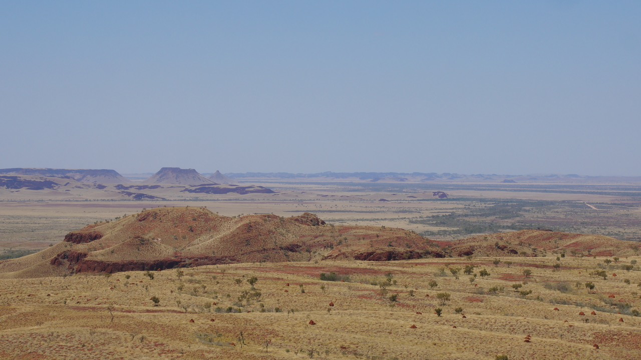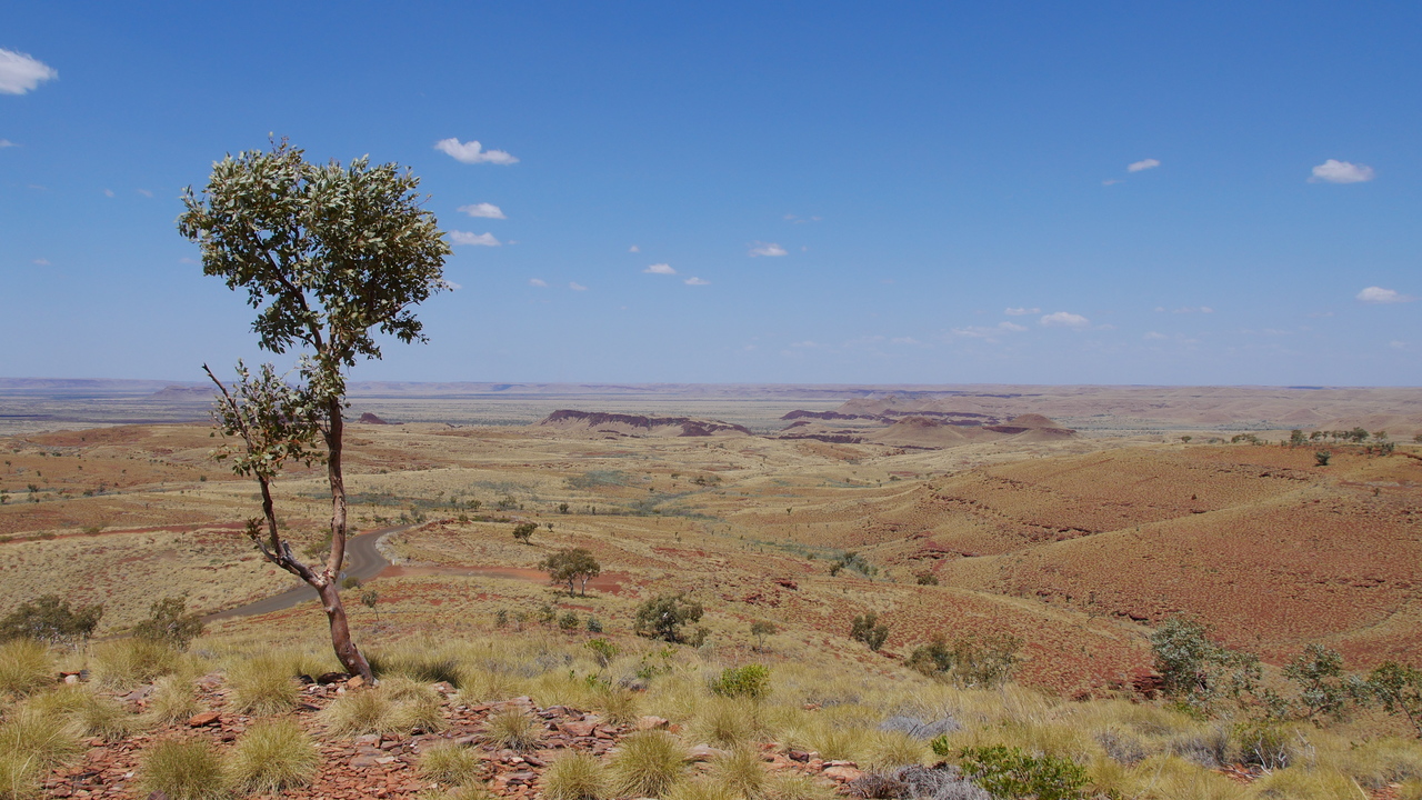 Einen sagenhaften Blick über die weite Steppenlandschaft und die dünenartigen Hügel genießen wir schließlich vom Mount Herbert aus. Der Ruhe ausstrahlende Pythonpool im Norden des Nationalparks ist voller Algenblüten, sodass wir es beim Anschauen belassen. Insgesamt sehen wir nur zwei Traveller im entlegenen Millstream Chichester Nationalpark, den wir besucht haben, weil er auf unserer Abkürzung über die Hamersley Iron Road lag. Da wir keine spezifischen Erwartungen hatten, war es für ihn ein leichtes, uns positiv zu überraschen.