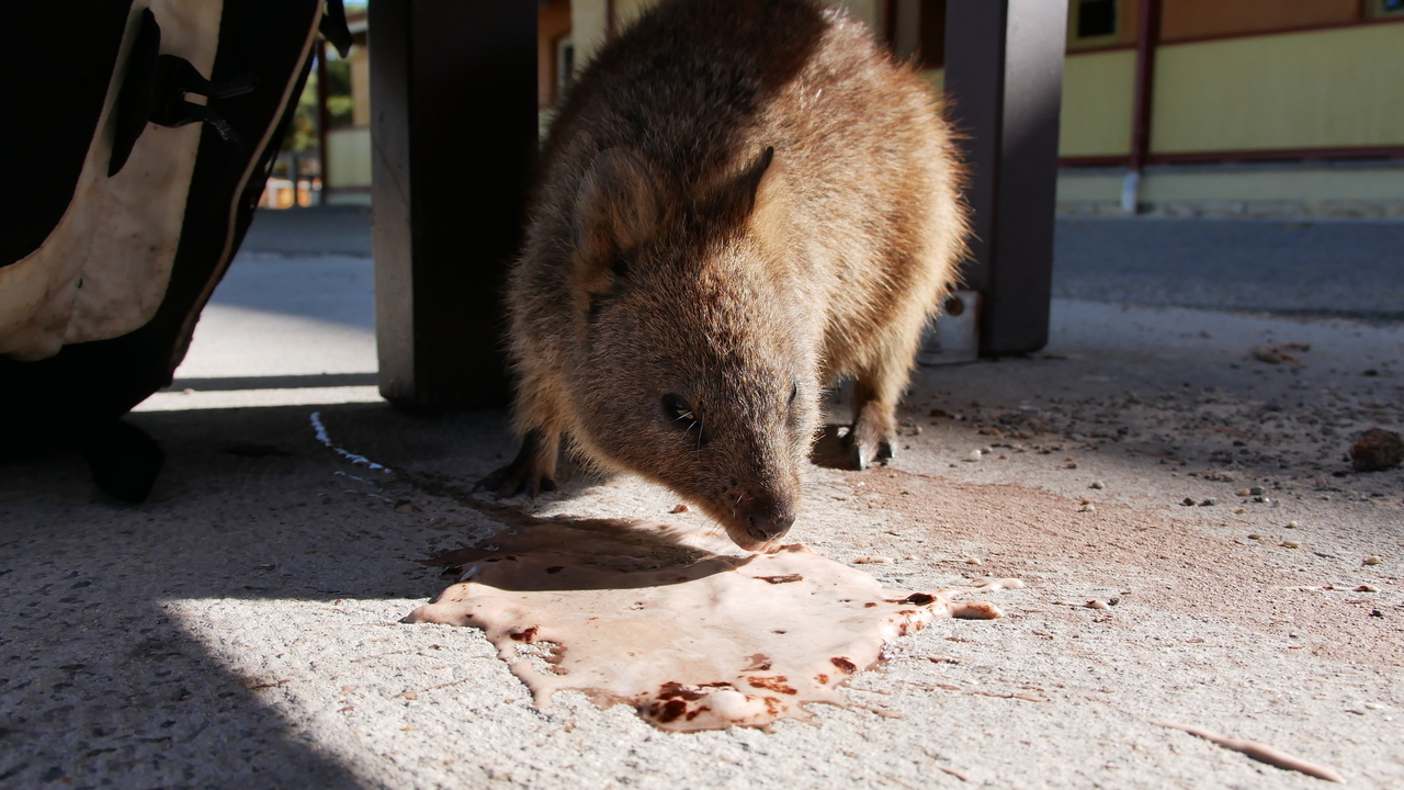 Wie eine Mischung aus aus Känguru, Eichhörnchen und Ratte sehen sie aus, die Quokkas. Da die Holländer sie um 1700 irrtümlich für Ratten hielten, nannten sie die Insel Rottnest („Rattennest“). Dabei konnten die Quokkas auf Rottnest Island gerade deshalb überleben, weil es hier eben keine Räuber wie Ratten oder Füchse gab. Wir erleben die Kleinkängurus als niedliche und zutrauliche Tiere, die meist von Touris mit Smartphones umzingelt sind. Seit ein paar Jahren sind nämlich Selfies mit den putzigen Tierchen im Trend. Die Google-Suche nach „quokka selfie“ erzielt inzwischen hunderttausende Treffer.