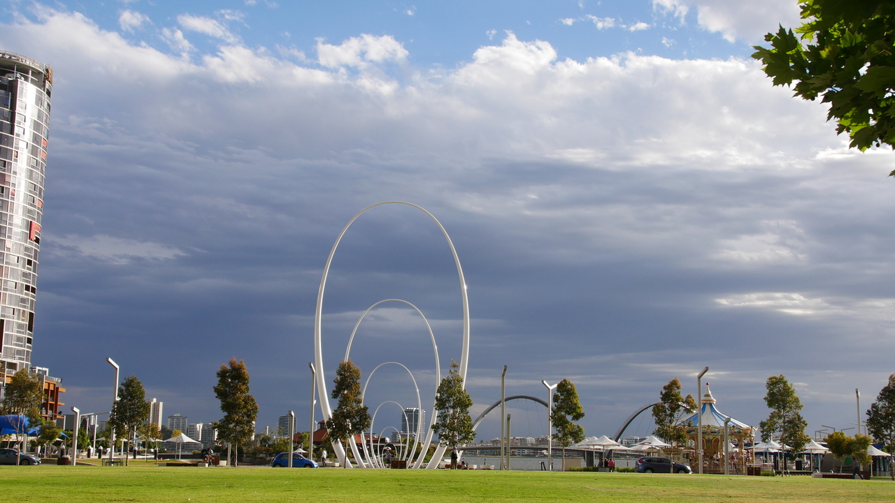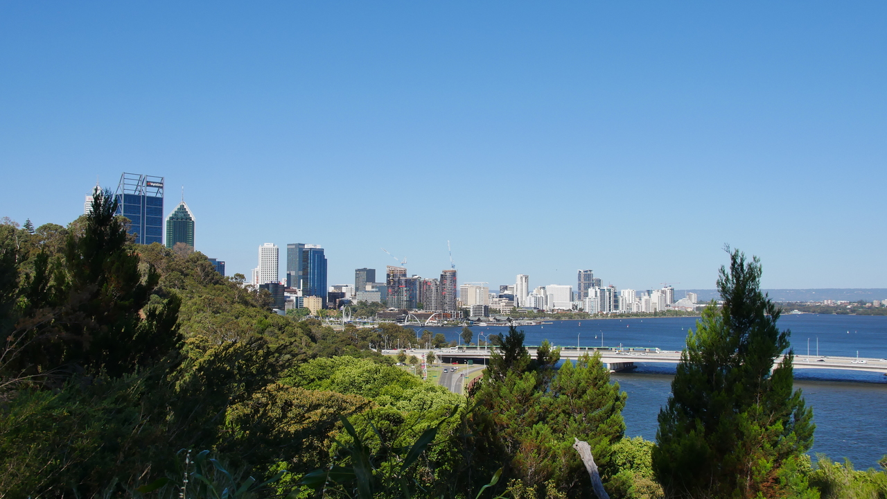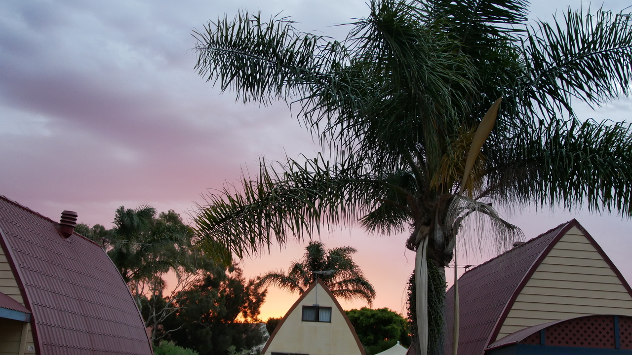 Nach 11.500 Kilometern erreichen wir mit dem Paji unser Etappenziel Perth. Der Feierabendverkehr wird immer dichter, dann stehen wir sogar im Stau. In den Außenbezirken blühen an jeder Ecke Jacarandas zwischen den Bungalows, im Hauptgeschäftsviertel sehen wir erstmals in Australien Wolkenkratzer und Anzugträger. Der Mix aus dunklen Wolken und Sonne geht zur Abenddämmerung in einen rosaroten Himmel über, von dem ein paar Regentropfen herabregnen, während wir uns auf dem Fremantle Village Caravan Park unter Palmen das Obstbrot und Olivenöl aus New Norcia schmecken lassen.