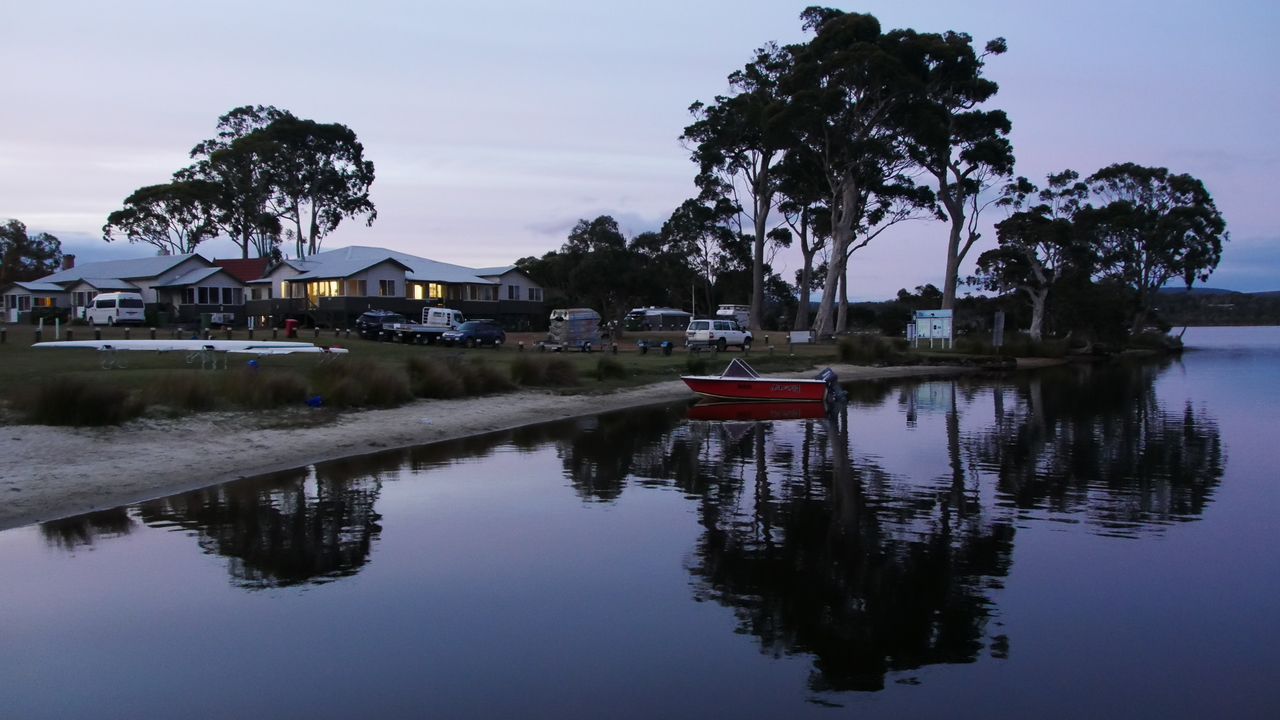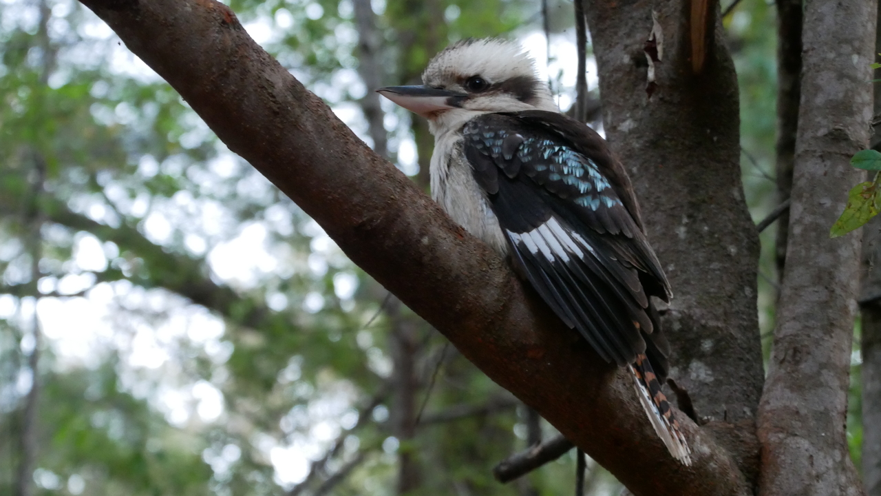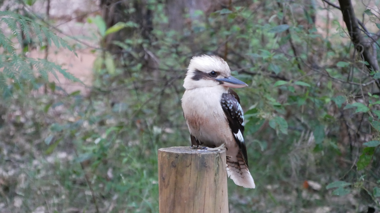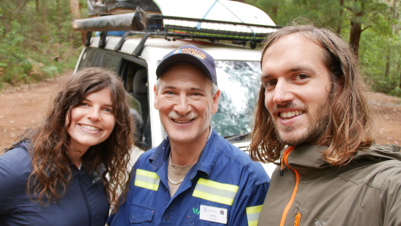 Die Fahrt über den unbefestigten Heartbreak Trail erinnert uns an eine Achterbahnfahrt – steil hoch, wieder runter, scharf rechts, dann links – und eröffnet tolle Blicks auf den Fluss im Tal zwischen den hohen Bäumen hindurch. Auf dem Draftys Campingplatz lernen wir den sympathischen Dave kennen, der hier als Freiwilliger tätig ist. Vor Wissen sprudelnd klärt er uns über die enorme Waldbrandgefahr in den Eukalyptuswäldern auf. Auf den 70 Meter hohen Eukalyptusbäumen züngeln bei einem Brand bis zu 30 Meter hohe Flammen, die sich in wahnsinnigem Tempo ausbreiten. Da Dave hier ist, dürfen wir trotzdem ein kleines Lagerfeuer machen. Von ihm erfahren wir auch den Namen der neugierigen blaugefiederten Vögel, deren Rufe wie eine hysterisch lachende Affenbande klingen: Kookaburra. Dave empfiehlt uns idyllische Spots an der Südküste, wo er während des Sommers als Camp Host aktiv ist, und zeigt uns Fotos von den Campinggästen, die er zu sammeln scheint wie andere Briefmarken. Zum Abschied bekommt er noch ein Foto von uns mit dem Paji, dessen Markise wir laut ihm eigentlich auf der anderen Seite hätten montieren müssen von wegen Gegenverkehr. Ups … Naja, bisher hat uns die Polizei immer nur nett gegrüßt.