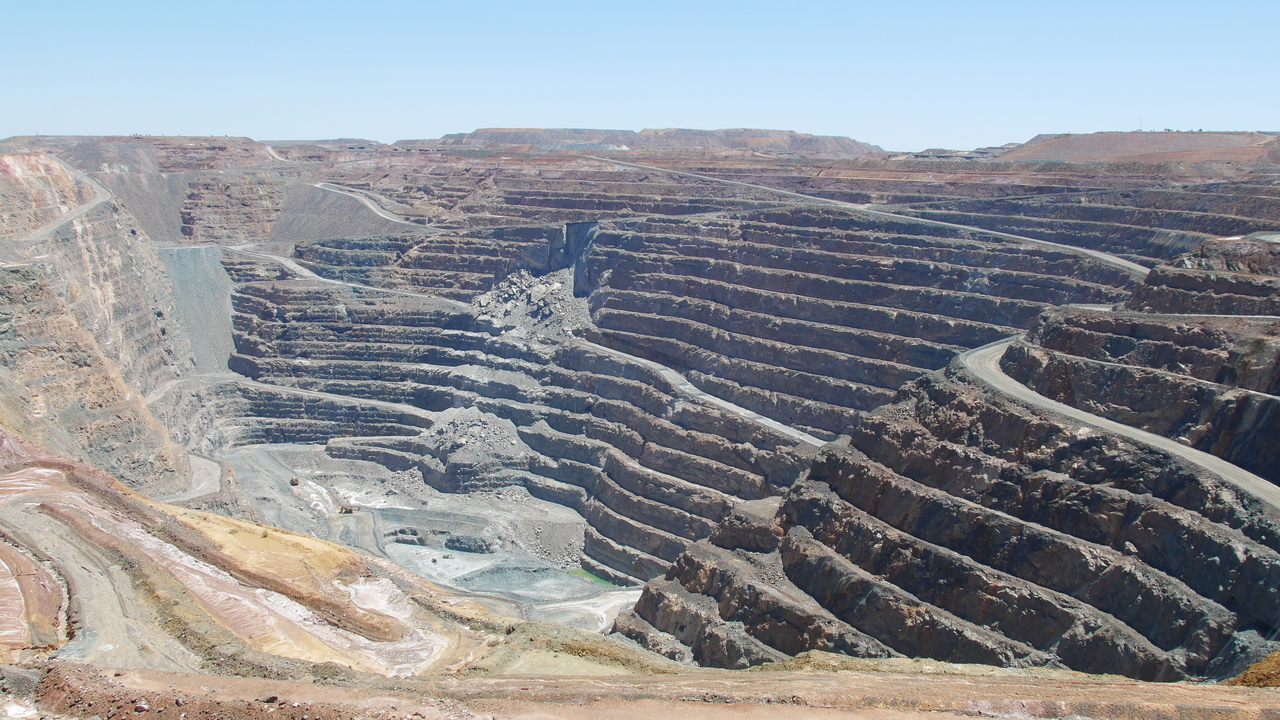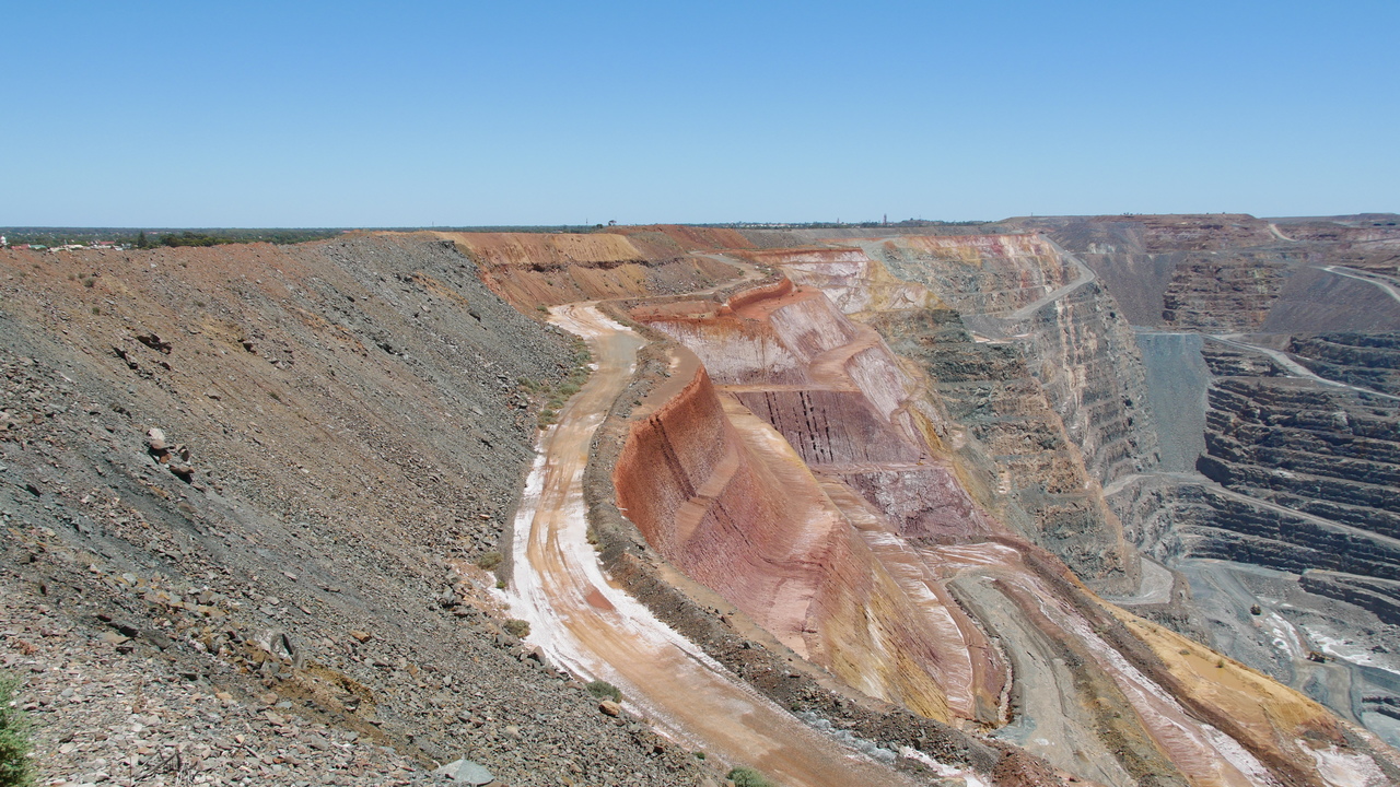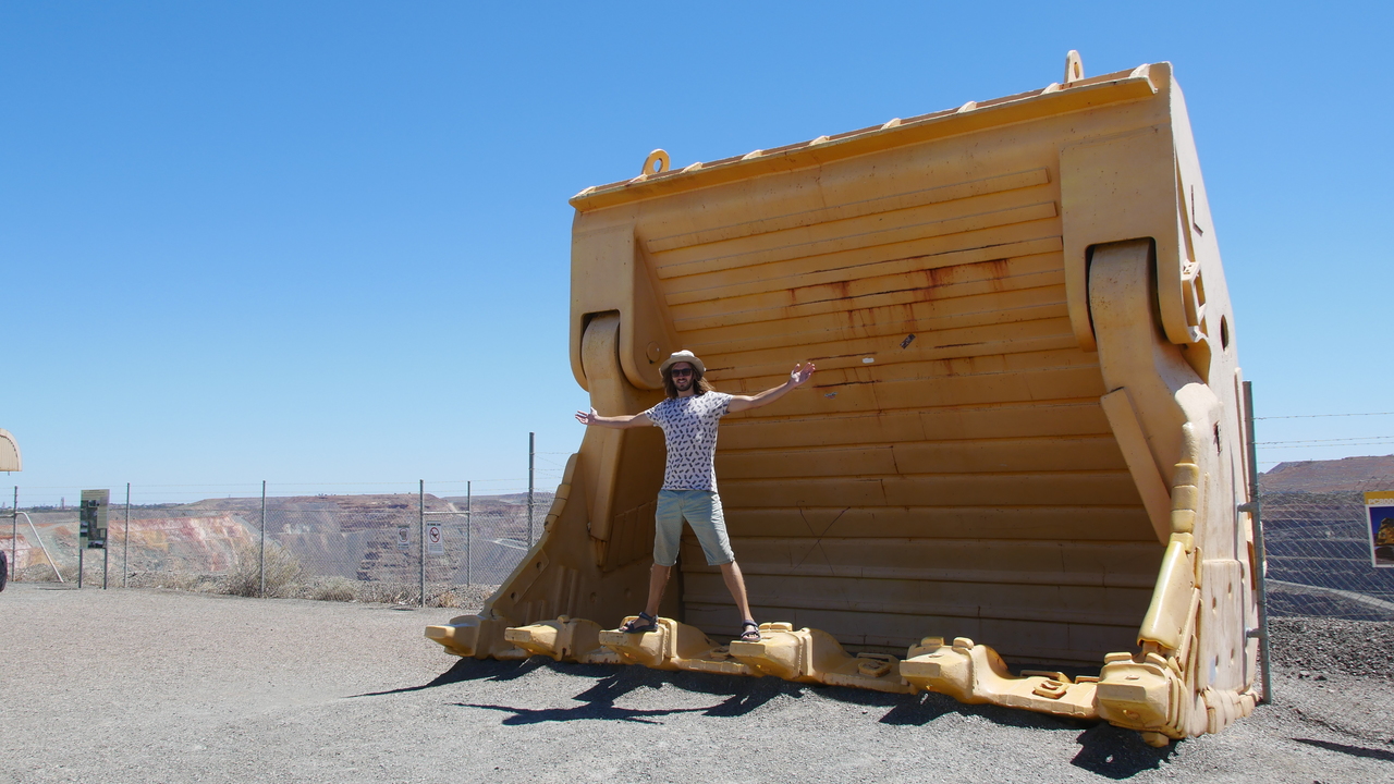 Terrassenförmig reicht die gigantische Mine bis tief unter die Erde, die riesigen Trucks sehen von oben wie winzige Raupen aus. Die „Super Pit“ ist die größte Goldmine Australiens und beeindruckt mit gewaltigen Dimensionen: auf über drei Kilometern Länge und bis zu 600 Metern Tiefen wird hier nach Gold gegraben. Der Uluru (Ayers Rock) würde ins Bergwerk hineinpassen. Gearbeitet wird in 12-Stunden-Schichten. Zweimal wöchentlich finden kontrollierte Sprengungen statt. Der Goldabbau verschlingt immense Ressourcen: für ein Golfball-großes Stück Gold müssen sieben riesige Lkw-Ladungen Gestein abgetragen werden.