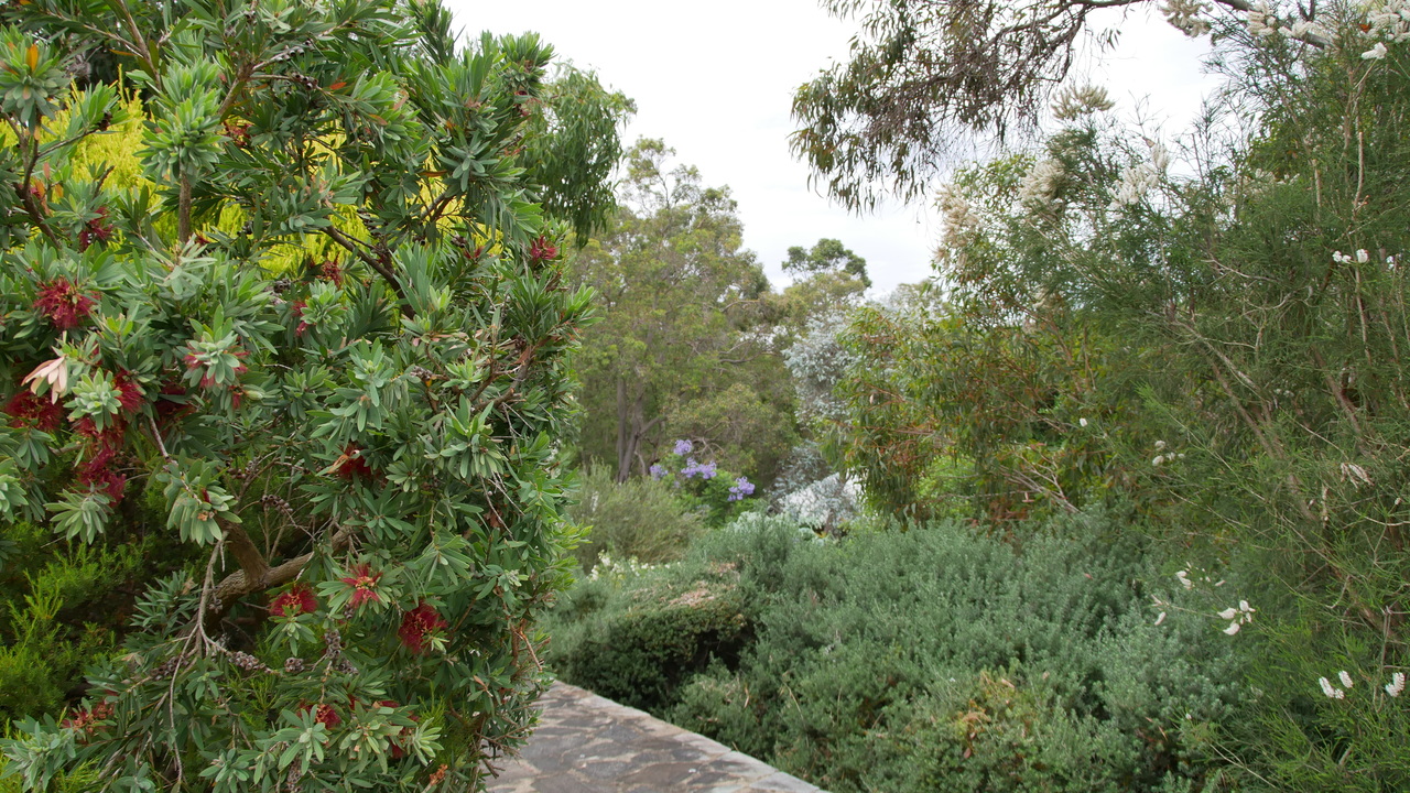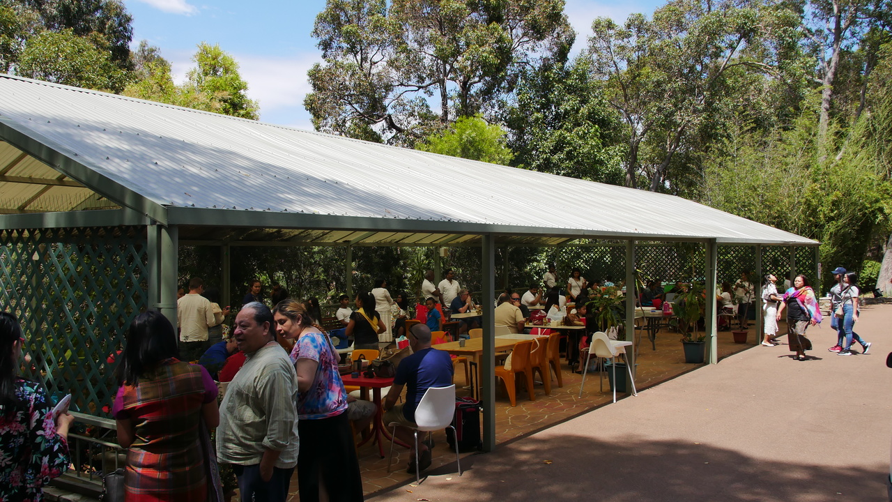 Das Mittagessen ist der Höhepunkt des Tages im Bodhinyana Kloster südlich von Perth, wo wir nach Monaten des Reisens eine Woche lang zur Ruhe kommen. Das gepflegte Gelände mit bunt blühenden Bäumen und Sträuchern strahlt eine besondere Aura der Ruhe aus. Außer dem Zirpen der Grillen, dem Zwitschern der Vögel und dem gelegentlichen Kreischen der Kookaburras hören wir nur ab und zu ein paar Kängurus durch den Wald hoppeln. Inmitten des Eukalyptuswaldes sind die Hütten der Mönche verstreut, die nach der thailändischen Waldklostertradition „kutis“ genannt werden. Während im Meditation Retreat in Nilambe Fünf Gebote galten, sind es während unseres Aufenthaltes im Bodhinyana Kloster Acht Gebote, die einen aufrichtigen, umsichtigen und einfachen Lebensstil vorschreiben. So sind Schmuck und Schminke tabu und ab dem Mittag ist Fasten bis zum nächsten Morgen angesagt. Dafür gilt kein Schweigegebot, was uns viele interessante Begegnungen und Unterhaltungen eröffnet.