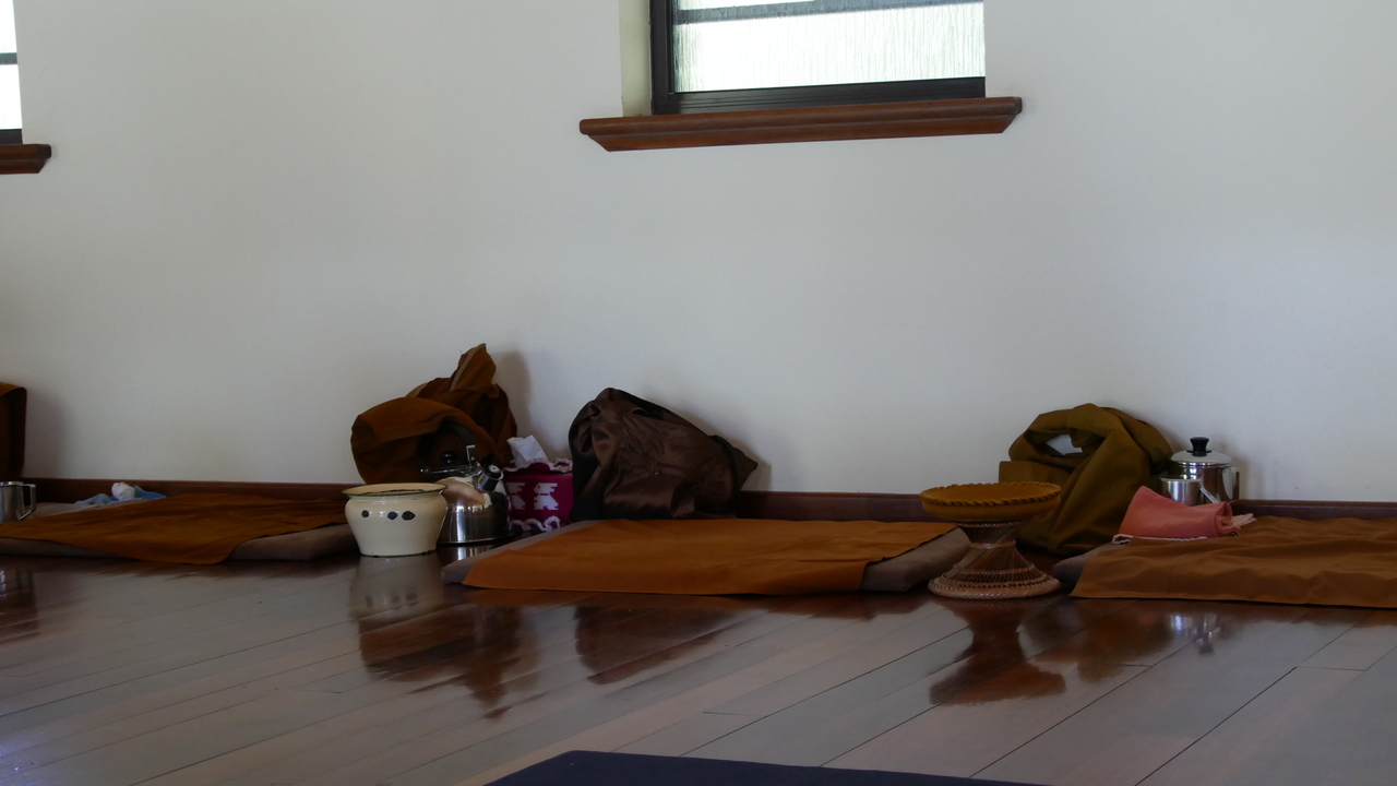 Im Bodhinyana Kloster leben 24 Mönche und vier Anagarikas, die als Anwärter des Novizenstatus in der Regel ein Jahr im Kloster dienen, sprich sich um die Mahlzeiten und Fahrdienste für die Mönche kümmern. Die Seniorität der Mönche ergibt sich anhand ihrer Mönchsjahre, die in Rain Retreats („vassa“) gemessen werden. Während der Regenzeit in Thailand ziehen sich alle Mönche und Nonnen für drei Monate zur Meditation zurück und stellen alle Reisen ein. Diese Tradition wird in den Klöstern der thailändischen Waldtradition weltweit gepflegt. Einige der Mönche sind sehr offen und wir finden es spannend, Einblicke in ihr Leben zu bekommen. Der Novize Jayko aus Malaysia ist in unserem Alter und hat in seinem bürgerlichen Leben Prozessoren bei Intel entwickelt, bevor er sich für das Leben als Mönch entschied. Er führt uns zur Höhle, die zwei Mönche aus Deutschland als Geschenk für Ajahn Brahm gebaut haben und die heute das Zuhause des Abts ist. Dort dürfen wir die absolute Stille und Dunkelheit erleben, die in dem schallisolierten Raum herrscht.