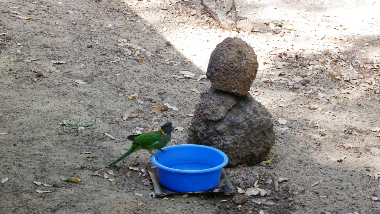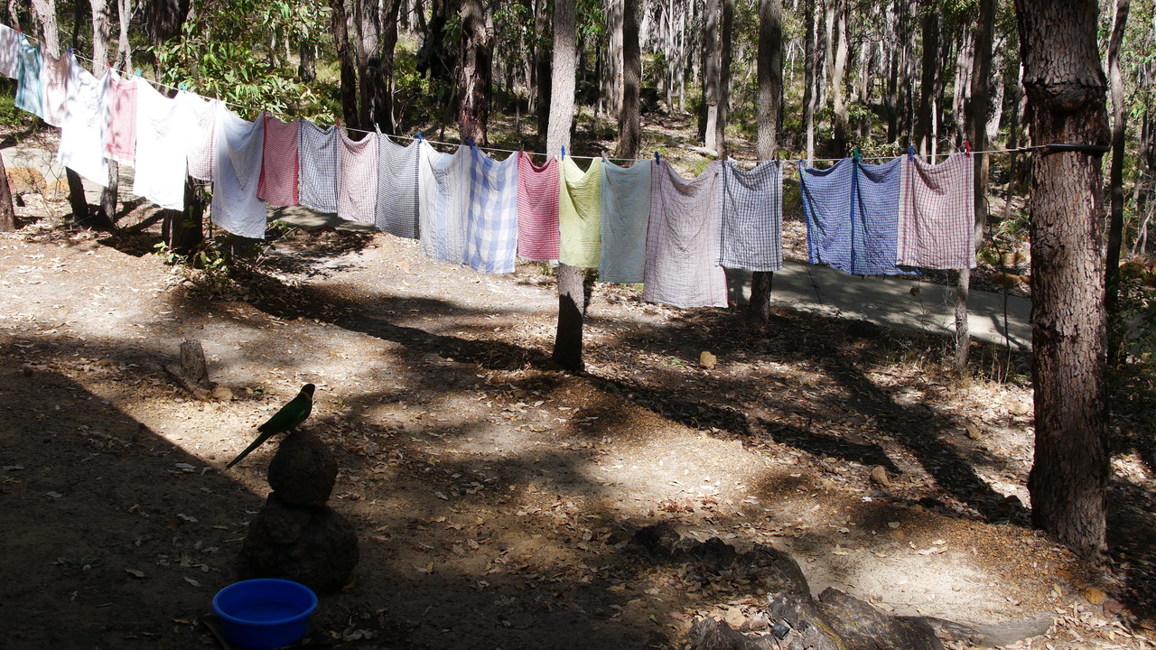 Die Vormittage folgen einem festen Ablauf. Um 06:30 Uhr gibt es Frühstück, das die Männer auf der Terrasse und die Frauen in ihren Zimmern zu sich nehmen. Um 07:15 Uhr fegen wir die Wege auf dem Klostergelände mit Reißigbesen. Die vielen Bäume und der Wind sorgen dafür, dass es jeden Tag Nachschub an Laub gibt. Um 07:30 Uhr finden sich die Männer zur Vergabe der anstehenden Aufgaben zusammen. Männliche Klostergäste helfen entweder beim Fegen, Gärtnern oder Bäumefällen. Max hilft mit dem El Salvadorianer Teo drei Mönchen dabei, Wege für Feuerwehr und Rettungskräfte auf dem großen bewaldeten Gelände des Klosters in Stand zu halten. Es gilt, einen Anhänger mit Ästen und Baumstämmen zu be- und entladen. Die Fahrten mit dem kleinen Geländewagen samt Anhänger sind teilweise sehr abenteuerlich und einmal stellt sich das Gefährt samt Insassen im Hang quer. Überraschend viel Schweiß und Action für einen Klosteraufenthalt also. Die Mönche verlieren dabei übrigens nicht ihre Ruhe und Gelassenheit. Die Frauen übernehmen in der Zeit verschiedene Haushaltstätigkeiten, putzen also die Gästebäder, halten die Terrasse sauber, waschen die Geschirrhandtücher und gießen Pflanzen. Da Anna ein paar Tage lang die einzige Frau im Kloster ist, hat sie in der Zeit ordentlich zu tun. Besonders entlohnend ist es, die kleine Tiertränke vor den Unterkünften der Frauen aufzufüllen, an über den Tag verstreut immer wieder süße Kängurus und Papgeien vorbeischauen.