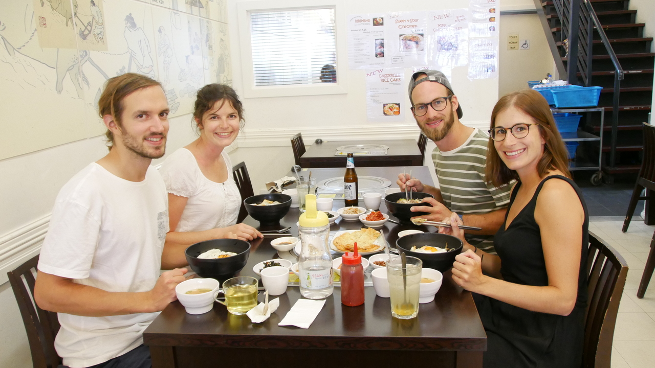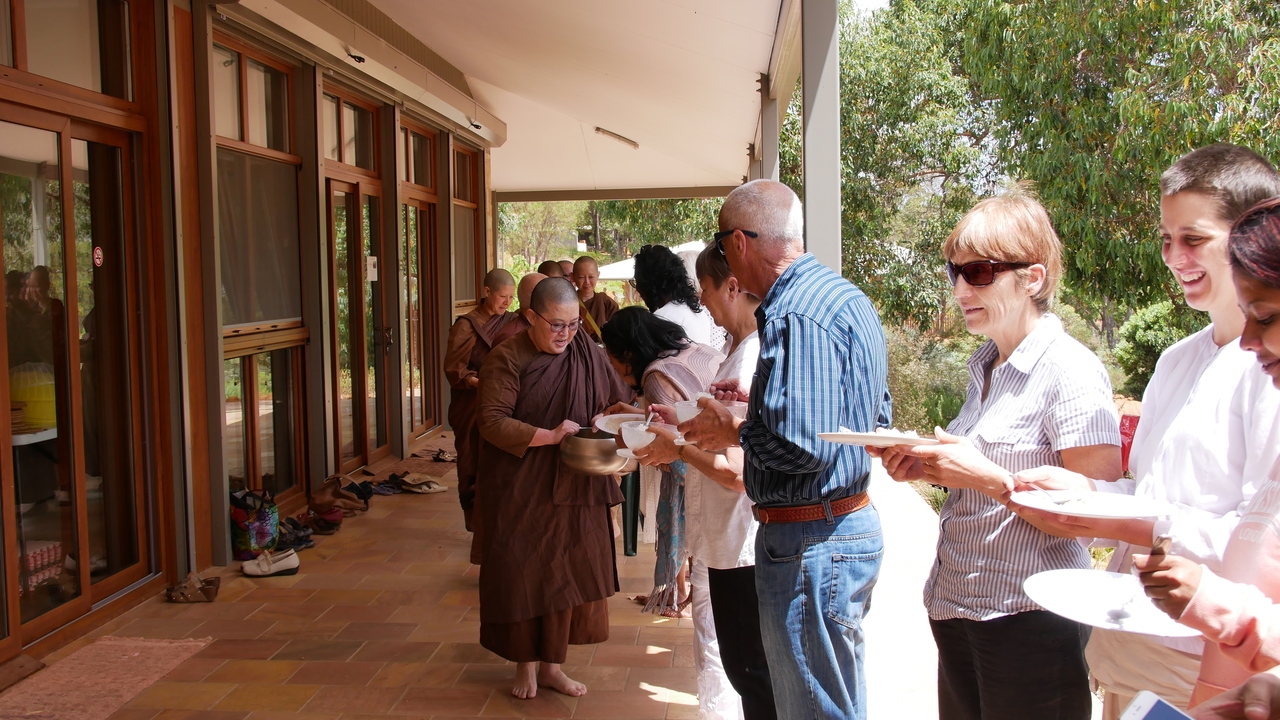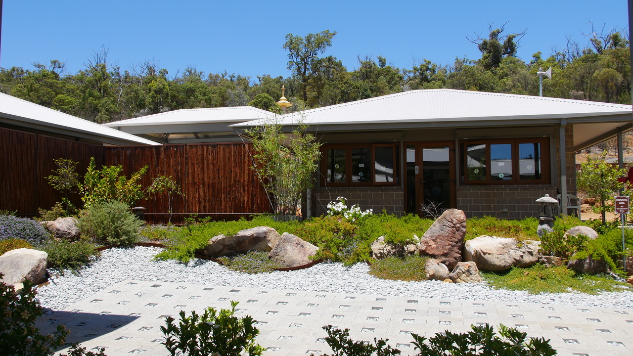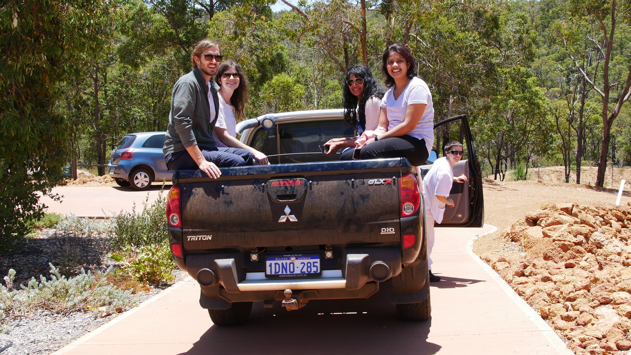 In Perth treffen wir einige der netten Menschen wieder, die wir in den vergangenen Wochen unterwegs kennen gelernt haben. Beim Weintrinken mit David und Janine aus der Schweiz an einem Truck Stop im Nirgendwo haben wir festgestellt, dass wir alle koreanisches Essen lieben. So treffen wir uns in Perth bei Took Bae Kee zu einem leckeren Bibimbap. Die beiden sind auf ihrer Rundreise auf einen australischen Hinterwäldler gestoßen, der schokogetränkte Früchte verkaufte und tatächlich die Schweiz nicht kannte. Seine Nachfrage: „Gibt es denn in … also in diesem Land auch Schokolade?“ … Mit Anusha, die wir im Bodhinyana Kloster kennen gelernt haben, besuchen wir das buddhistische Dhammasara Nonnenkloster. Das Kloster erinnert an ein Resort und in die Spendenzeremonie ist eine Meditationssitzung integriert. Wir lernen Anushas Freundin Sandya kennen, die auch aus Sri Lanka stammt, auf ihrer vierjährigen Reise durch Südostasien und Australien in vielen Klöstern war und in Thailand eine Zeit lang selbst als Nonne gelebt hat. Die Engländerin Anna und die Australierin Rea stehen kurz vor ihrer Ordinierung zu Anagarikas. Wie auch die Nonnen strahlen sie viel Positivität aus und scheinen sich untereinander bestens zu verstehen. Auf der Ladefläche eines Pickups gelangen wir dank Sondergenehmigung zu den entlegeneren Teilen des Klosters, wo wir von felsigen Bergen aus tolle Ausblicke auf das bewaldete Tal haben.