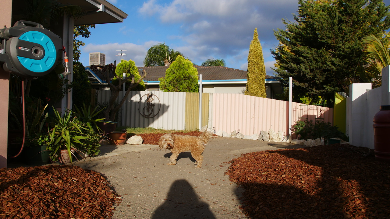 Am nächsten Tag zeigt uns Maria alles Wissenswerte rund um Haus, Hof und Hund. Beim Spaziergang durchs nahegelegene Naturschutzgebiet lernen wir den süßen Pudelmischling Coco besser kennen. Max hilft Jeff dabei, das automatisierte Bewässerungssystem zu erweitern, bis es plötzlich komplett ausfällt. Abends gibt es Pizza und Jeff führt uns seine Gitarren vor, die er aus Zigarrenschachteln baut. Früh am nächsten Morgen fährt Max die vier zum Flughafen, da sie über Weihnachten Jeffs Familie in Victoria besuchen und wir während der zwei Wochen auf Haus und Hund aufpassen.