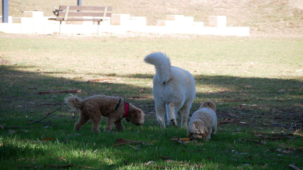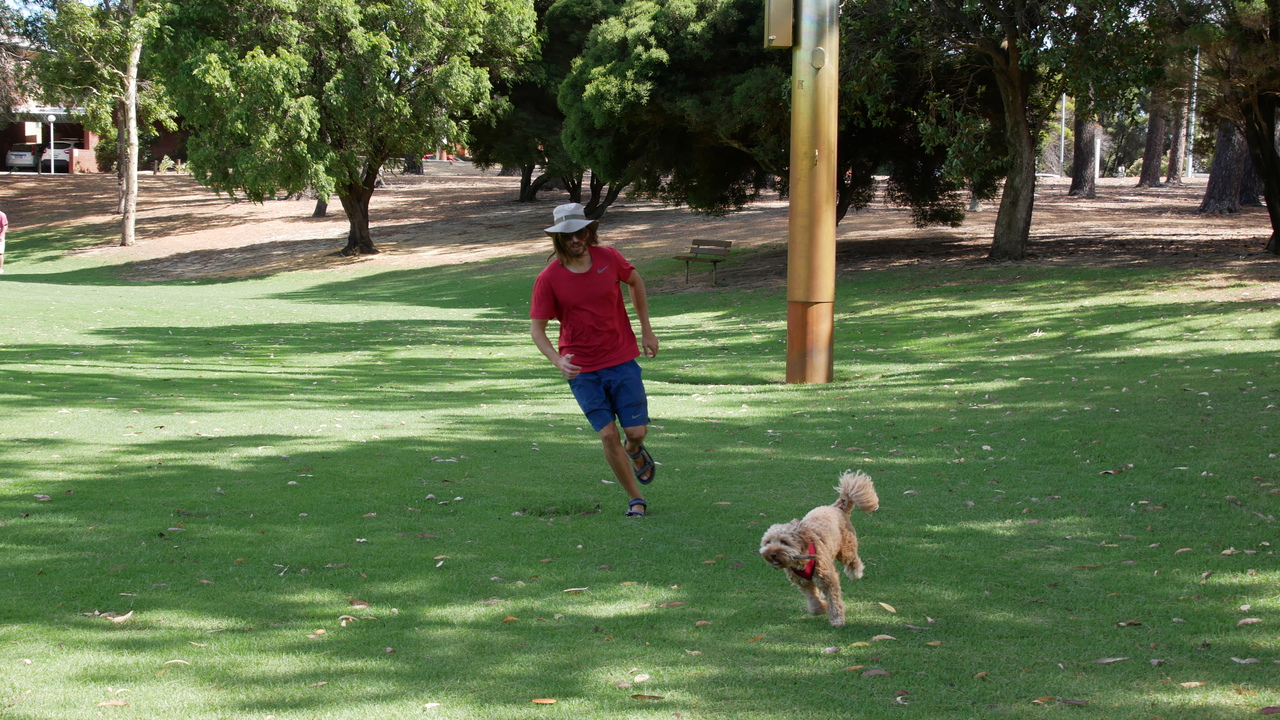 So sehr wir es genießen, statt eines Dachzelts ein Haus mit Garten zu bewohnen, entpuppt sich Coco als das Sahnehäubchen unseres Housesittings. Allmorgendlich spazieren wir mit ihr durch den mediterran anmutenden Vorort Kardinya. Schon nach ein paar Tagen hört sie auf uns und so lassen wir sie ohne Leine auf der ovalförmigen Wiese des Alan Edwards Park Stöckchen, Bällchen und uns selbst hinterherjagen – ein Heidenspaß für uns drei. Coco ist danach in den ersten Tagen ganz schön platt und schläft stundenlang tief und fest. Atmet sie noch? Ok, alles gut. Sie ist nicht nur verspielt, sondern auch sehr anhänglich und verschmust. So folgt sie in jeden Raum, genießt sämtliche Streicheleinheiten und rastet vor Freude schier aus, wenn wir nach ein paar Stunden Abwesenheit wieder nach Hause kommen. Ihr bester Freund ist ein dachsähnliches Stofftier, das wir „Quietschy“ taufen. Besonders wenn wir gerade mit der Heimat telefonieren, versucht Coco gerne, mit den Quietschgeräuschen unsere Aufmerksamkeit zu gewinnen. So süß!
