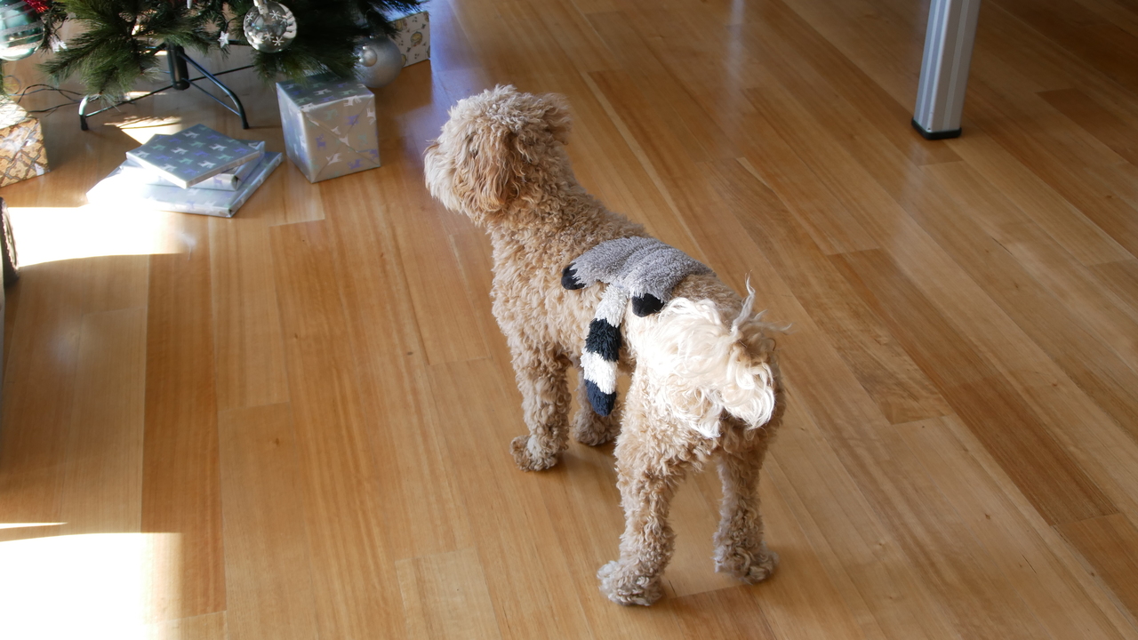 Als Max Maria und ihre Familie Anfang Januar vom Flughafen abholt, sind sie begeistert über die saubere Wohnung, den gemulchten Garten und die frisch gewaschene Coco. Die Kleine hat sich morgens im Park nämlich leidenschaftlich in einem toten Vogel gewälzt und danach so übel gestunken, dass wir sie gleich mehrfach shamponieren mussten… Wir verbringen noch ein paar nette Tage bei Coco und ihrer Familie. An einem Abend gibt es Pizza und eine nachträgliche Bescherung, da noch ein paar Päckchen unter dem Weihnachtsbaum aufgetaucht sind. Später spielen wir mit den VR-Brillen, die Joseph und Dieter zu Weihnachten geschenkt bekommen haben, während Jeff auf einer Zigarrenschachtel-Gitarre spielt und Coco auf der Suche nach Leckerlis und Streicheleinheiten vom einen zum anderen läuft. Es ist eine Herausforderung, unser inzwischen gewachsenes Gepäck auf die Anforderungen eines Billigfliegers zu komprimieren. Maria ist unsere Rettung - sie schenkt uns eine Reisetasche, in der ihre Nichte vor einem Jahr Gepäck nach Deutschland senden wollte und in die Annas Rucksack plus unser Zusatzgepäck hineinpassen. Dann heißt es auch schon Abschied nehmen von den vieren und der süßen Coco, die uns sehr ans Herz gewachsen ist. Gleichzeitig sind wir voller Vorfreude auf … Tasmanien!