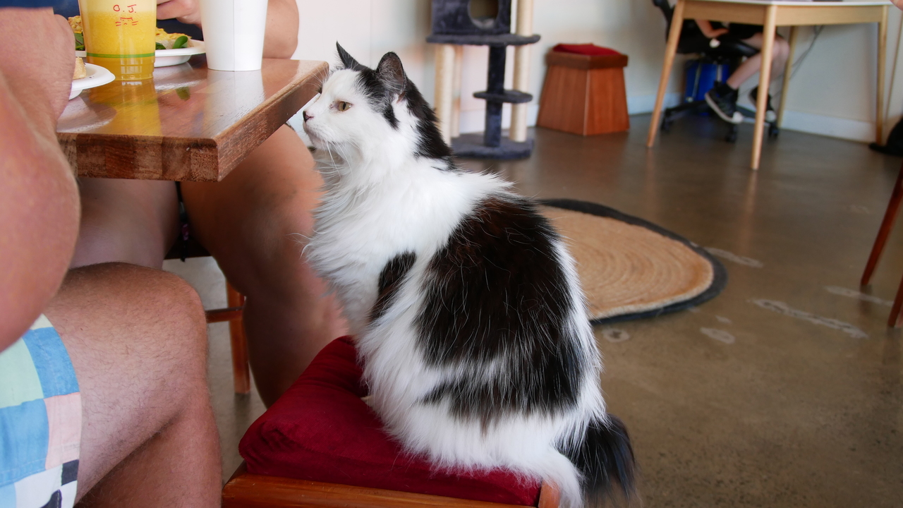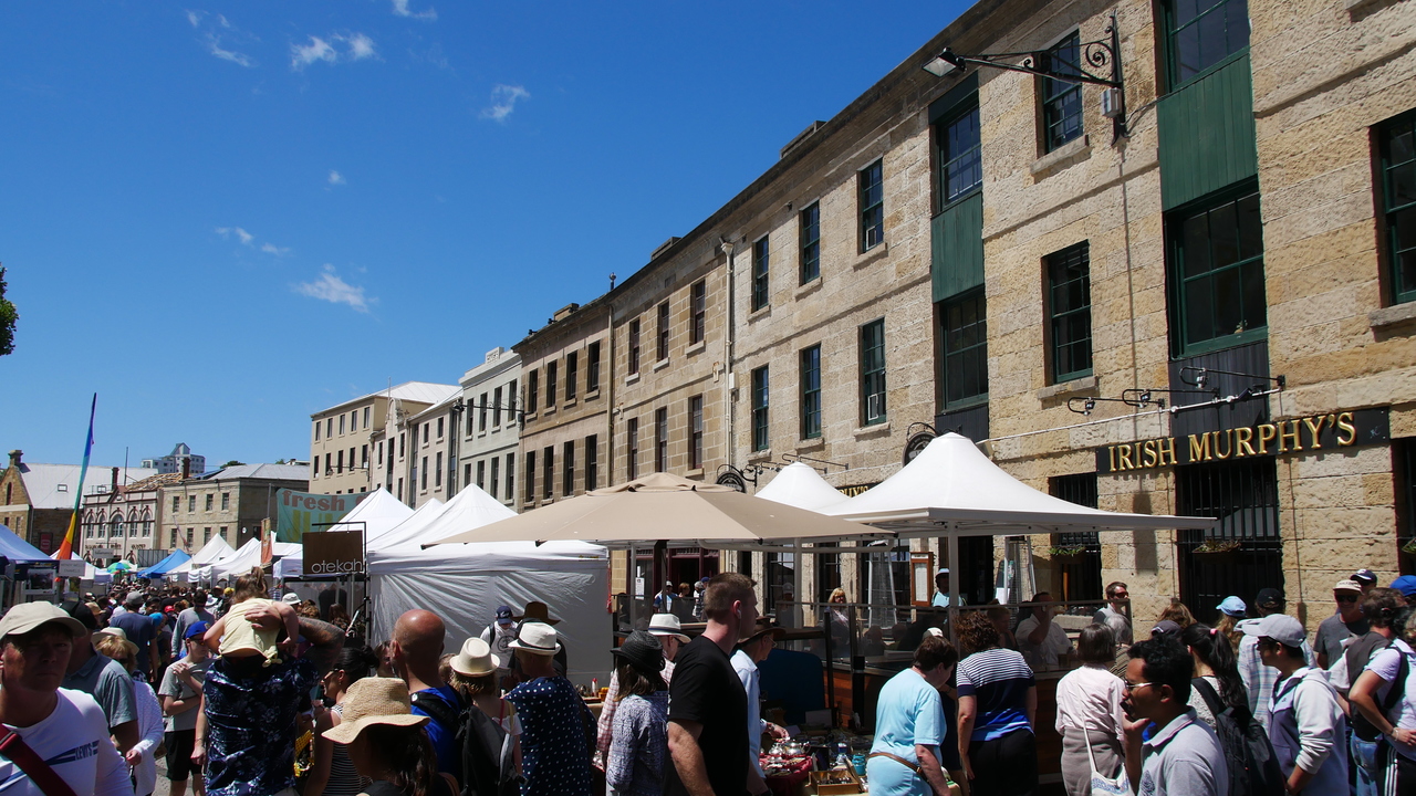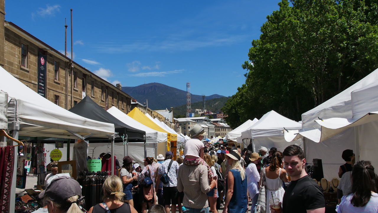 Die weiße Pearl klettert auf den Katzenbaum, der dreibeinige Pablo lässt sich auf dem Hocker am Nachbartisch streicheln und die flauschige Daisy schnurrt auf dem Teppich vor sich hin. Wir sind im Hobart Cat Café gegenüber des Homestead Pub, wo zehn Katzen leben und jede Menge Aufmerksamkeit von den Gästen bekommen – interessantes Konzept. Hobart hat eine ganze Reihe hipper Cafés zu bieten und so kommen wir in den Genuss, Tumeric Latte mit selbstgemachter Cashew-Milch aus stylischen Tassen zu schlürfen. Regionale Lebensmittel wie Blaubeeren und Kokosjoghurt finden wir auf dem Farm Gate Market, wo es überwiegend vegane Bioprodukte gibt. Auf dem Salamanca Market wird vor allem Kunsthandwerk angeboten und wir lassen uns Austern von Bruny Island schmecken. In der Küche unserer Unterkunft lernen wir Ben aus China kennen, der früher bei PWC in Shanghai Nachtschichten geschoben hat und inzwischen in Sydney lebt und ein kleines Export-Business aufgebaut hat. Mit Freunden exportiert er in dieser Saison zwei Tonnen tasmanische Kirschen nach China, die die besten in Australien sein sollen und idealerweise innerhalb von 72 Stunden vom Kirschbaum im Huon Valley bis in die Obstschalen der chinesichen Kunden gelangen.