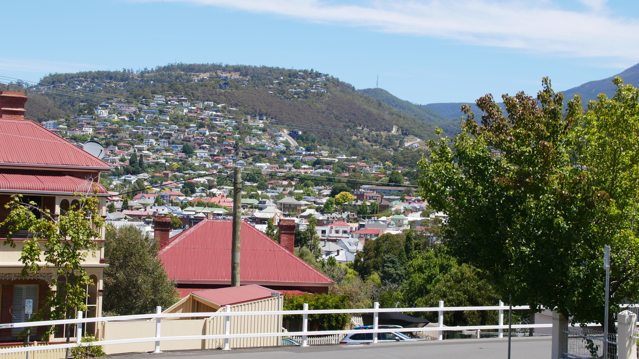Tasmaniens Berge, Seen und Wälder zeichnen sich gegen die untergehende Sonne ab und erinnern uns an Neuseeland, als wir in Hobart landen. Wir haben den Tag am Flughafen von Melbourne verbracht und versuchen uns an die Zeitverschiebung zu gewöhnen, die gegenüber Perth immerhin drei Stunden beträgt. Per Uber gelangen wir zum Homestead Pub. Unten gibt es Live-Musik und Partystimmung, oben sind die Zimmer der AirBnB-Unterkunft. Da wir noch vom Flug übernächtigt sind, entscheiden wir uns fürs Obergeschoss und verschieben das Bier auf den nächsten Abend.