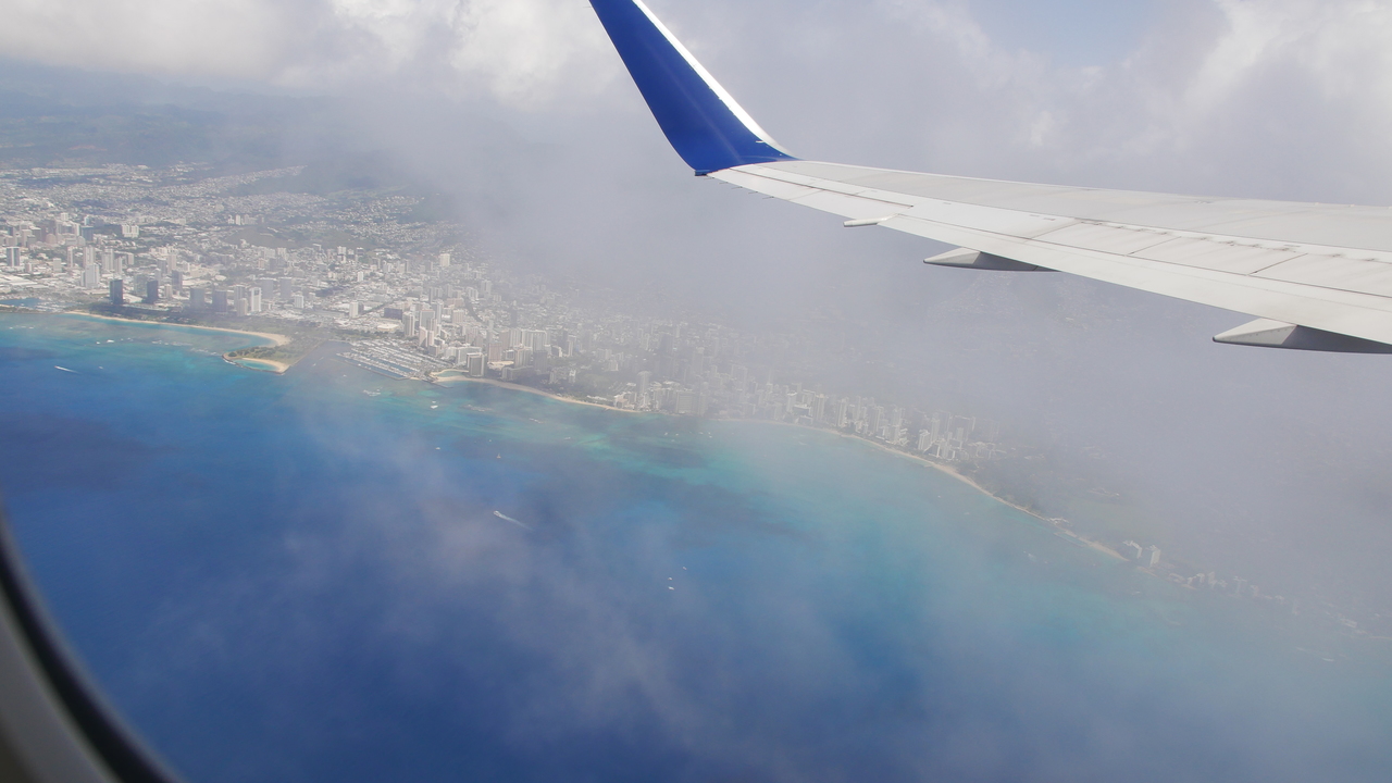 Honolulu. Aufgrund der Flugverspätung bleiben uns exakt 2:15 Stunden bis zum Abflug. Der Wettlauf gegen die Zeit beginnt nicht gerade vielversprechend - die Schlange an der Passkontrolle ist ellenlang und bewegt sich nur langsam. Eine ganze Halle voller Menschen wartet darauf, von ein paar wenigen Beamten durchgewunken zu werden. Immerhin ist der Shutdown vorbei. Wir fragen mehrmals, ob wir wegen der drängenden Zeit abkürzen können und haben nach 25 Minuten Wartezeit schließlich Erfolg. Dann heißt es aufs Gepäck warten, den Zoll passieren und zum weit entfernten Delta-Check-In-Schalter rennen, wobei Max unser 23-Kilogramm-Gepäckstück trägt. 30 Minuten vor Abflug checken wir am Priority-Schalter ein und kommen am Gate an, als gerade das Boarding beginnt. Auf dem Weg können wir noch ein paar hawaiianische Klänge hören und die tropische Luft schnuppern. Vielleicht wäre es doch ganz schön gewesen, hier ein paar Tage Zwischenstopp zu machen? Auf jeden Fall entspannter. Unser Flug startet um 16 Uhr - obwohl wir erst um 19:15 Uhr desselben Tages in Melbourne starten werden bzw. gestartet sind. Diese Datumsgrenze...