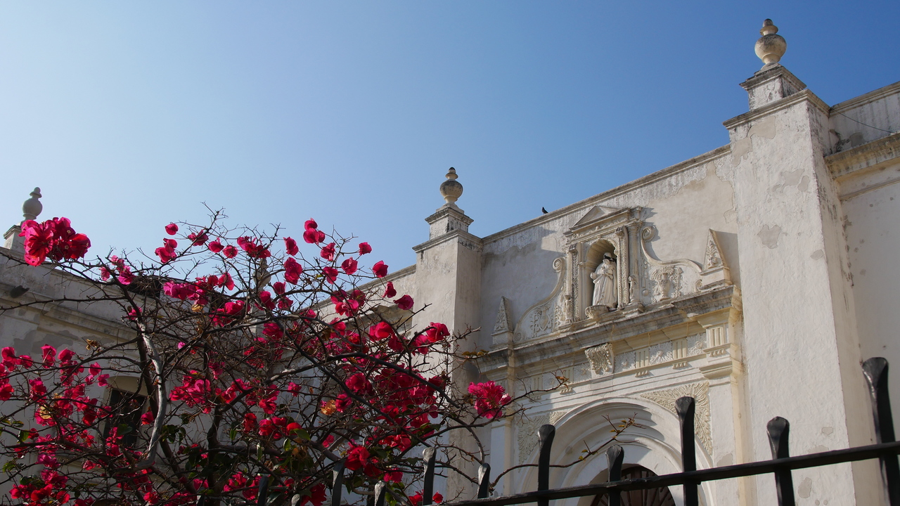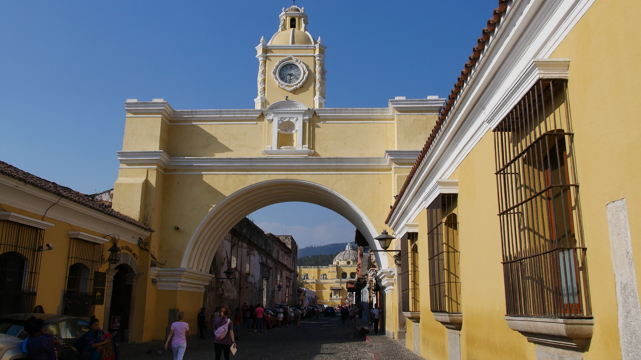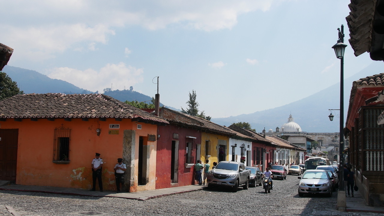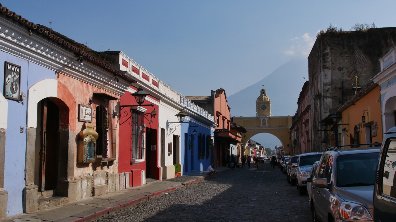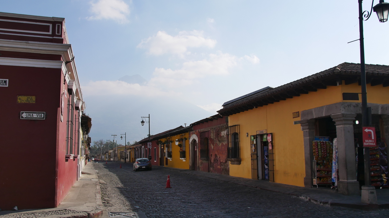 Kopfsteingepflasterte Straßen, Kolonialgebäude in warmen Farbtönen, Cafés in blühenden Innenhöfen, herzliche Menschen und das ganze in einer spektakulären Vulkanlandschaft – Antigua hat es uns sofort angetan. Über 230 Jahre lang diente es als koloniale Hauptstadt und als zentralamerikanischer Verwaltungssitz der Spanier, wovon heute unzählige Klöster und Kirchen zeugen, die entweder sehr schön renoviert sind oder authentischen Ruinencharakter haben. Die Klosterruine der Barockkircke Nuestra Señora de la Merced bietet Blicke auf den Rauch-speienden Vulkan Fuego, während wir vom Arco de Santa Catalina den Vulkan Agua bestaunen können, der unweit der Stadt über 3.700 Meter in die Höhe ragt.