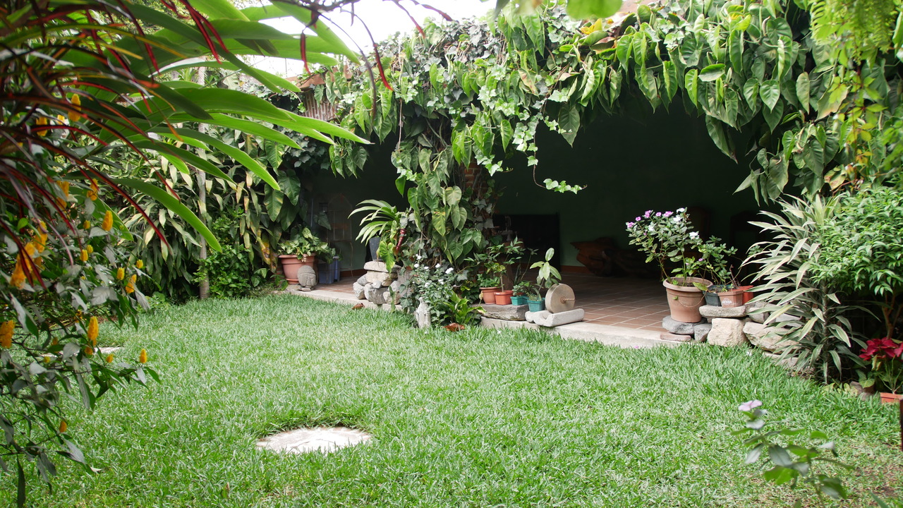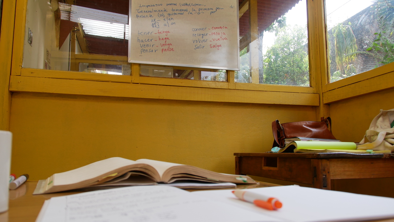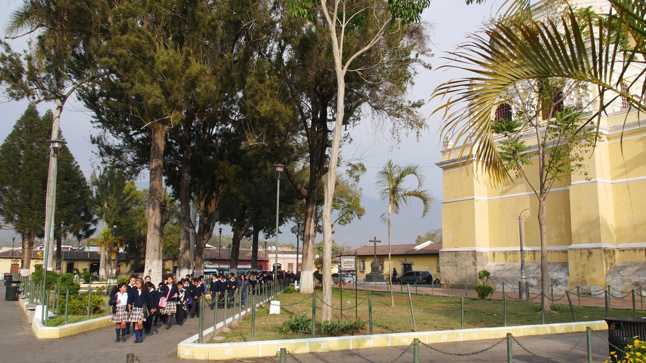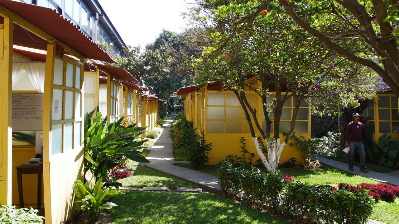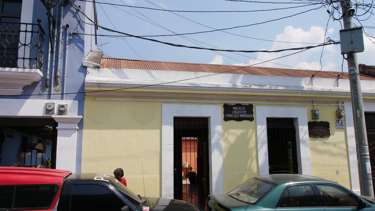 Sprachschulen gibt es in Antigua wie Sand am Meer. Wir entscheiden uns für die älteste Sprachschule der Stadt namens Proyecto Lingüístico Francisco Marroquin, um Grundkenntnisse zu erlernen (Max) bzw. die vorhandenen Spanischkenntnisse aufzufrischen (Anna). So sitzen wir eine Woche lang vormittags mit unseren Sprachlehrern in den offenen Räumchen, die sich in dem gepflegten Obstgarten der Sprachschule aneinanderreihen. Während Max mit Marco die Fundamente legt, macht Anna mit Brenda einen rasanten Streifzug durch die Grammatik. Nach einem Vormittag Imperfecto, Futuro und Condicional kann einem schon mal der Kopf qualmen. Der Einzelunterricht, der in Guatemala eher die Regel als die Ausnahme ist, ist enorm intensiv, effektiv und fordernd. Nebenbei bekommen wir interessante Einblicke in das Leben unserer Sprachlehrer. Brenda hat drei Töchter und lange Jahre gekellnert, bevor sie sich zur Sprachlehrerin weitergebildet hat. Marco hat nebenbei einen Landwirtschaftsbetrieb und arbeitet am Wochenende auf seinen Feldern, wo er Bohnen, Mais und Avocados anbaut.