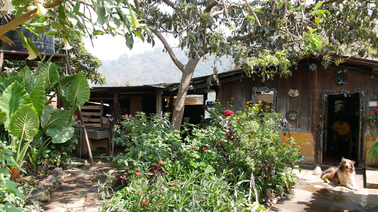 In der efeuberankten Mauer versteckt sich eine kleine rote Tür mit einem Hufeisen. Freundlich empfangen uns Paula und Fred und bieten uns nach englischer Art erst einmal eine Tasse Tee in ihrem Garten an. Das Aussteigerpärchen hat 15 Jahre in Indien verbracht und lebt inzwischen seit 33 Jahren in Guatemala. So kommt es, dass sie zwar keine E-Mailadresse haben, Paula dafür aber orangefarbene Dreadlocks und ein blaues Kreuztattoo zwischen den Augenbrauen. Fred sieht man seine fast 90 Jahre in keinster Weise an. Auf den Ravencroft Stables praktizieren – wenn nicht gar zelebrieren - sie die Englische Reitweise und können kaum glauben, dass wir Westernreiten bevorzugen. Wo doch der klassische Reitstil in Kontinentaleuropa entstanden sei, so viel Geschichte und Kultur damit verbunden seien… Wir lernen schnell noch ein paar Reitvokabeln auf Spanisch und schon geht es auf die Pferde. Unser einheimischer Guide Ariel spricht kein Englisch und meint schon nach ein paar Minuten, wir sollten die Zügel einfach nur in eine Hand nehmen - „es más fácil“ („ist einfacher so“). Womit wir wieder beim Westernreiten wären.
