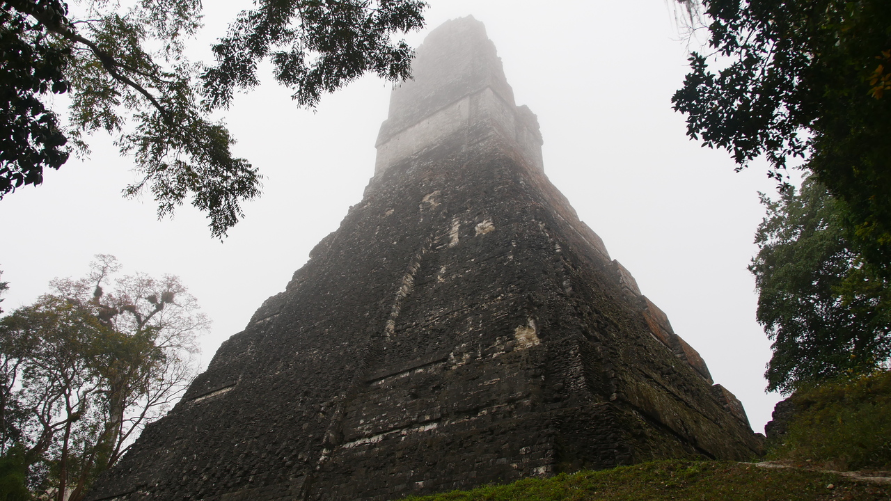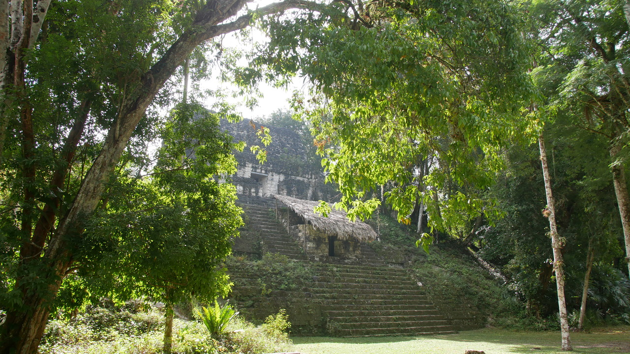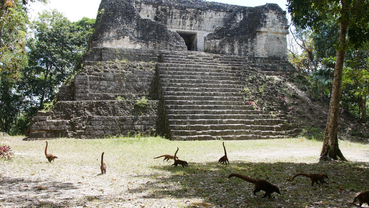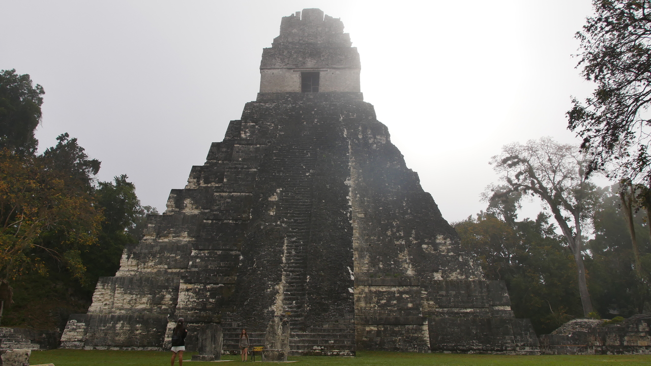 Um etwa 900 vor Christus liegen die Anfänge von Tikal. In ihrer Blütezeit waren die Tempel rot-weiß angemalt und zwischen ihnen verliefen breite Straßen statt Urwald. Gegen 900 nach Christus wurde die Stadt von ihren Bewohnern plötzlich verlassen, vermutlich wegen Überbevölkerung und dem durch die Abholzung des Regenwaldes verursachten Ressourcenmangels. Wiederum gut 900 Jahre später wurde Tikal wieder entdeckt, als Einheimische auf der Suche nach Chicle-Bäumen waren, aus denen eine natürliche Kaugummi-Substanz gewonnen wird. Ein Späher sah von einer Baumkrone aus eine Art Höhle oder Baumhaus mitten im Regenwald. Der Dschungel hatte sich die Stadt in den knapp eintausend Jahren zurückerobert und sich die Pyramiden fast vollständig einverleibt. Bis heute sehen viele der Tempel aus wie steile Hügel, die mit Büschen und Bäumen überwuchert sind. So ist nur eine von neun identischen Pyramiden ausgegraben, die unsere erste Station ist.
