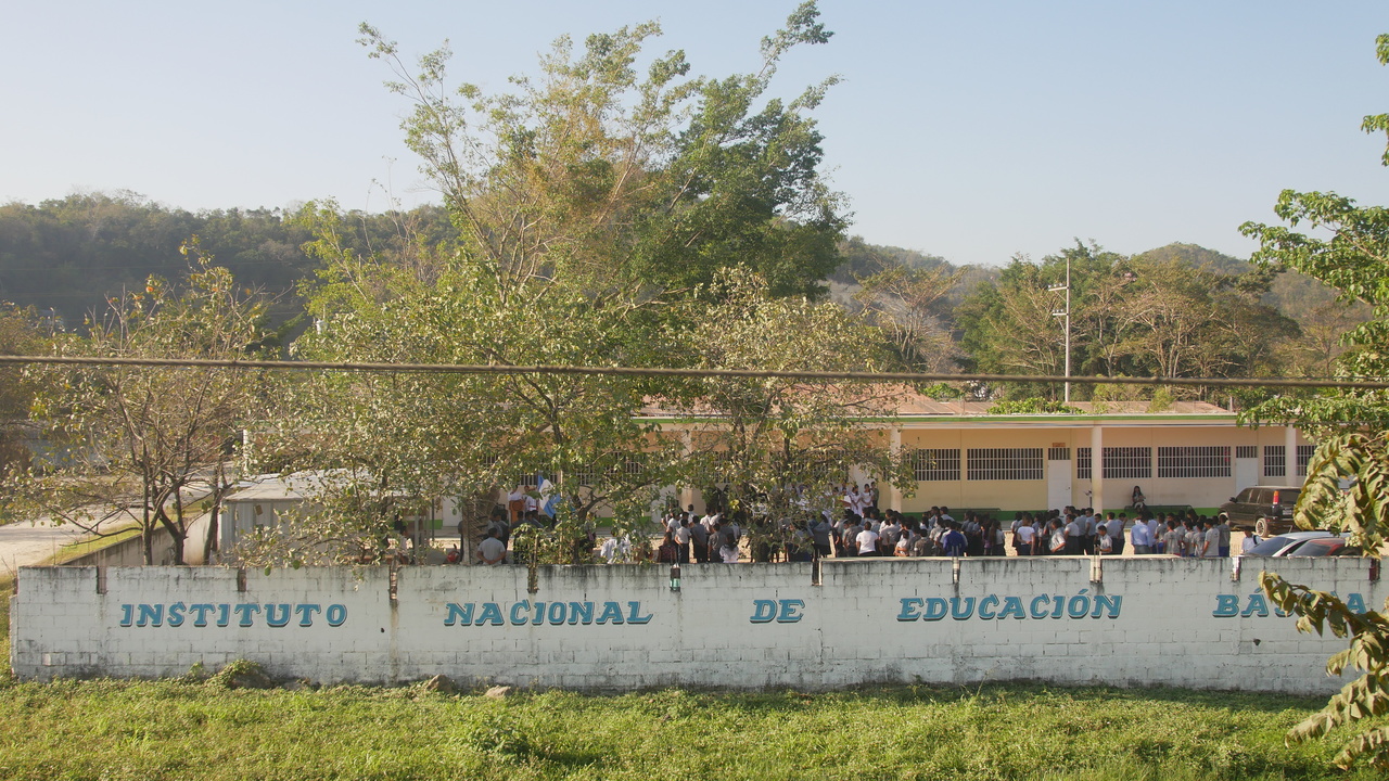 Unsere Unterkunft liegt abseits der Isla de Flores in einer Gegend von Santa Elena, die laut José abends nicht sicher ist. Wir haben gerade eine Tour bei ihm gebucht und so fährt er uns netterweise hin – in einer Schrottlaube ohnegleichen samt defekter Innenbeleuchtung, kaputtem Stoßdämpfer, riesigem Steinschlag an der Frontscheibe und einem rechten Hinterrad, das sich anhört, als würde es jeden Moment abfallen. Wir sind froh, als wir heil ankommen. Im Nachhinein hätten wir verkehrsstrategisch besser auf der Floresinsel übernachtet oder in Tikal selbst, wo man in Hängematten nächtigen kann und sich den Anfahrtsweg am frühen Morgen spart. So bekommen jedoch wir einen interessanten Einblick in den guatemaltekischen Schulalltag. Auf dem Schulhof der gegenüberliegenden Grundschule findet nämlich eine Kundgebung mit viel offizieller Musik und Gesang statt. Die Schüler tragen Schuluniform, vorne stehen Frauen in römisch-weißen Kleidern und Männer in Militäruniform. Im Anschluss scheint Unterricht stattzufinden, während das Schulorchester auf dem Hof pausenlos “Stand by Me” trötet.