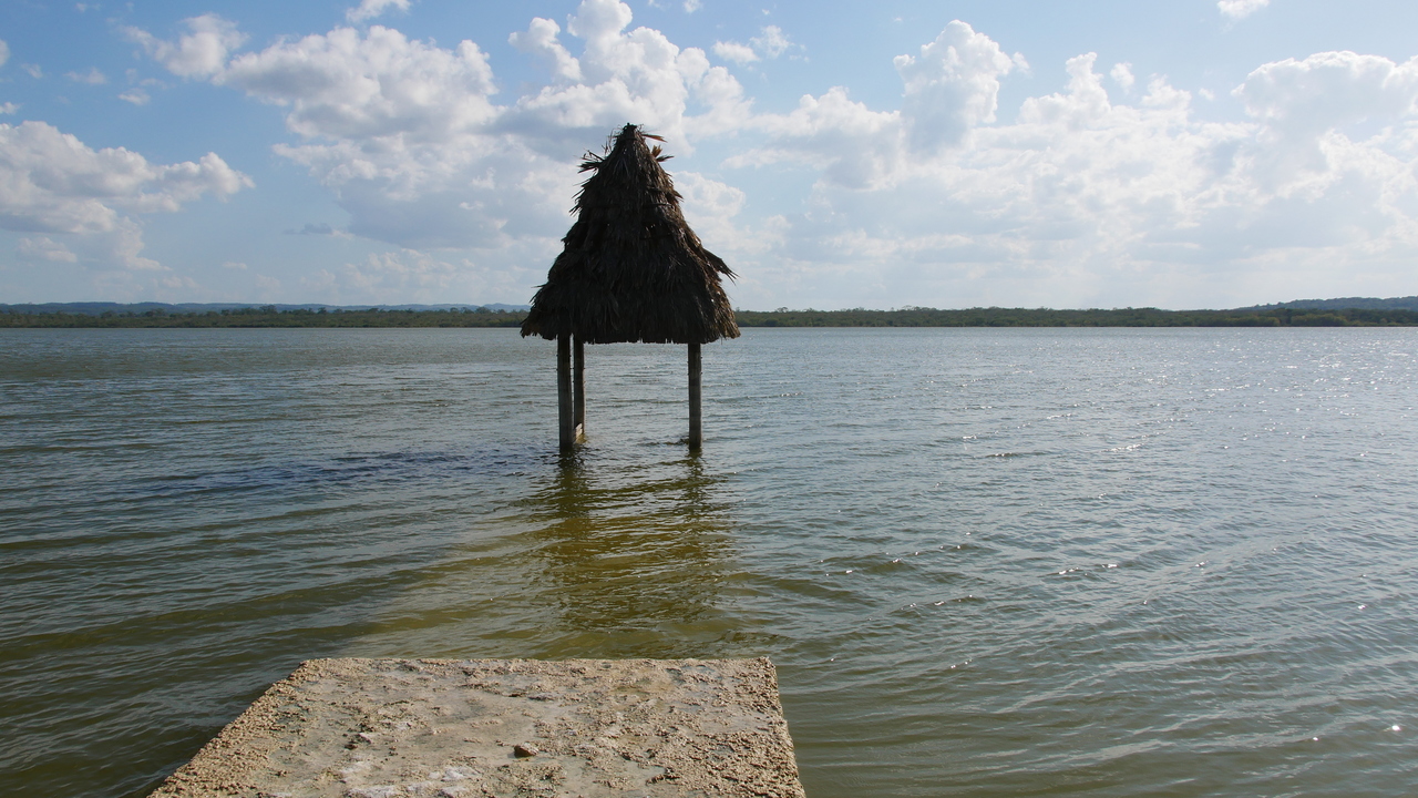 Unser Minibus ruckelt über eine Schotterpiste, die dem Paji gefallen hätte. Am Außenspiegel hängt der frisch gekaufte Fisch unseres Guides, der drinnen dann doch zu stark gestunken hat. Unser Ziel ist die Mayastätte Yaxhá, die im Triángulo Cultural liegt, dem größten Forschungsprojekt über die Mayawelt. Die Hieroglyphe für Yaxhá ist ein Papageienkopf und der Name bedeutet “grün-blaues Wasser”.