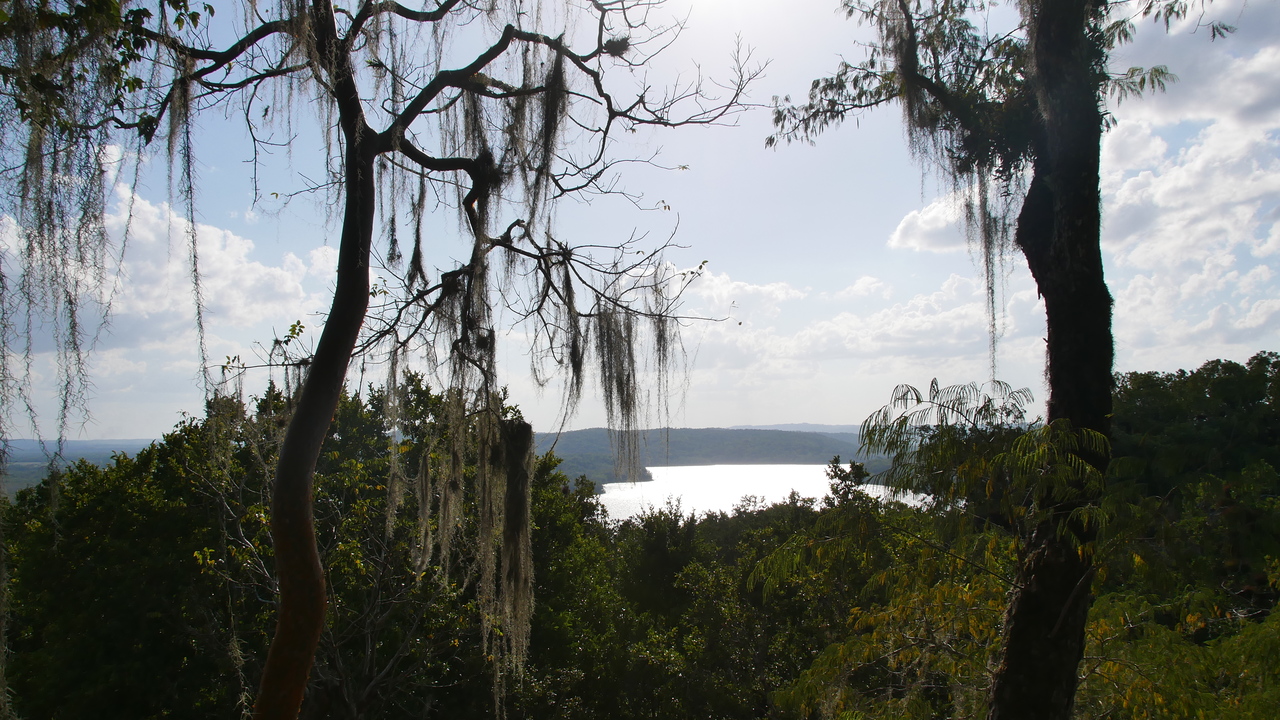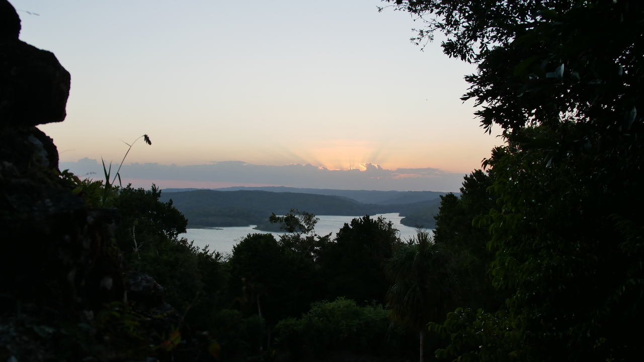 Den krönenden Abschluss unseres Abstechers zu den versunkenen Mayareichen bietet der Sonnenuntergang, den wir in schweigend auf dem höchsten Tempel genießen - mit Blick über die Laguna de Yaxhá, die zwischen den Bäumen hervorragenden Tempelspitzen und den Urwald, untermalt von den Geräuschen der Dschungelbewohner. Grandios!