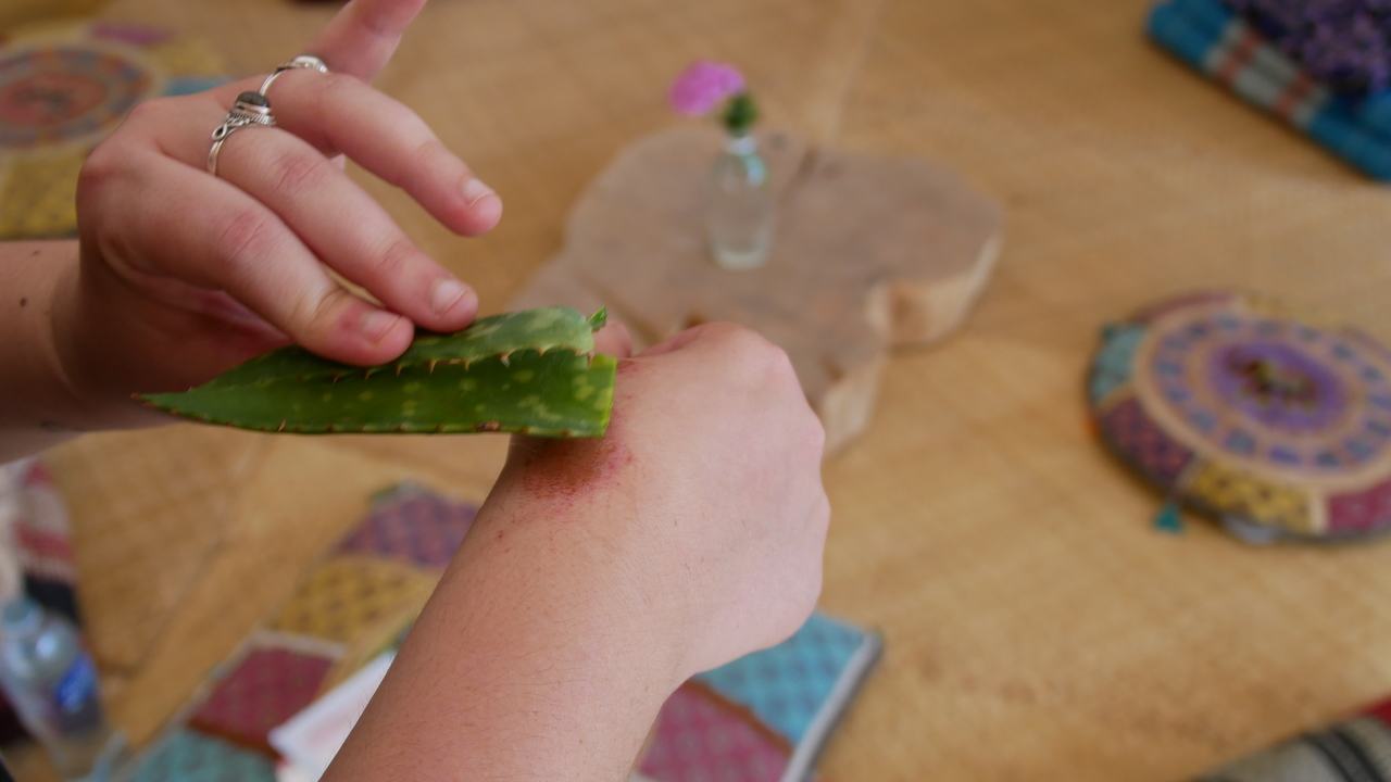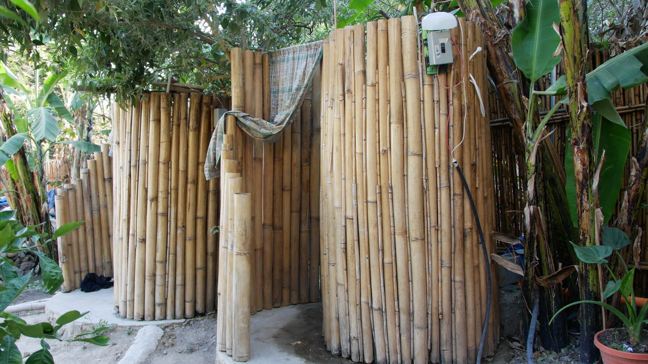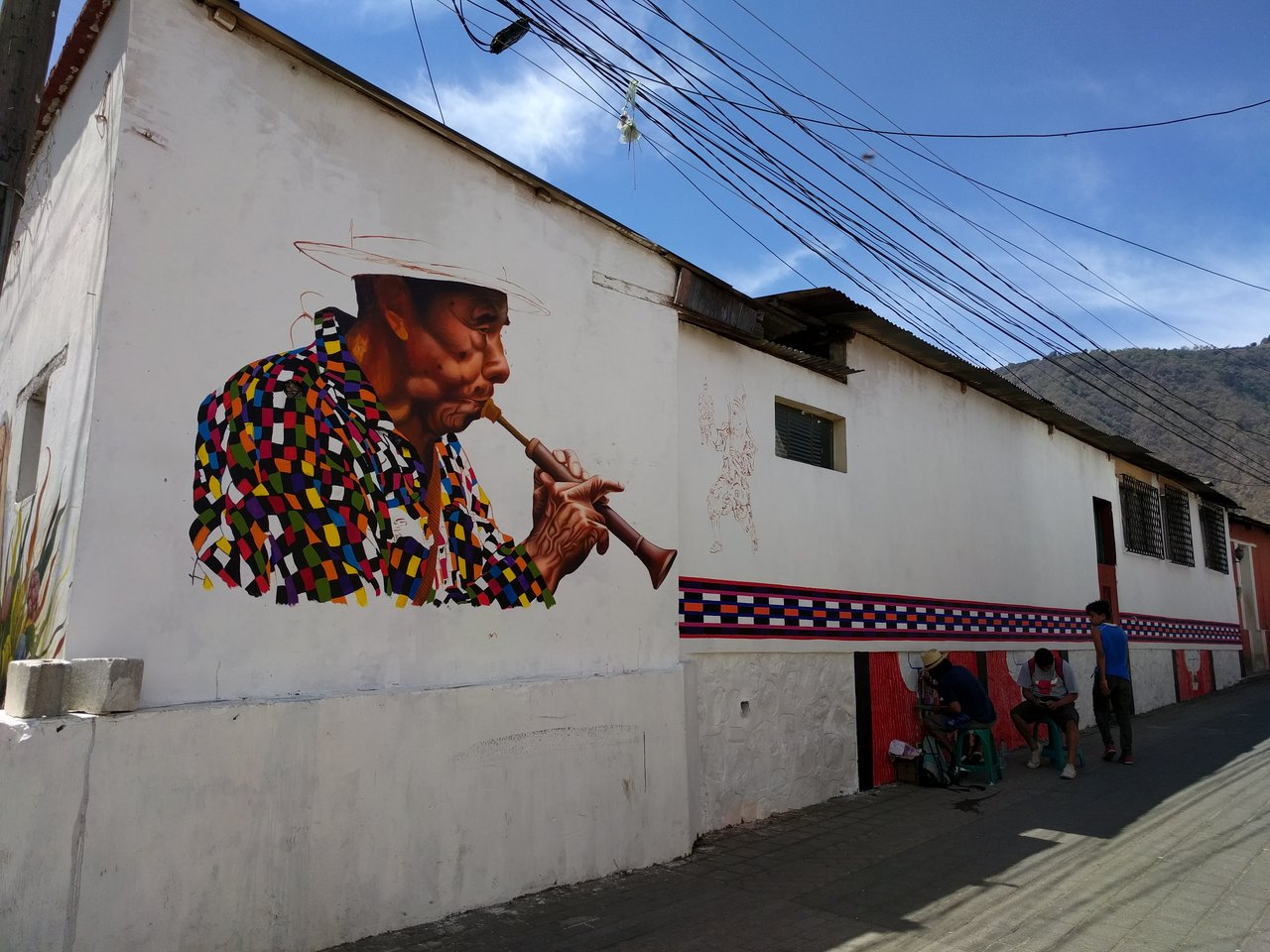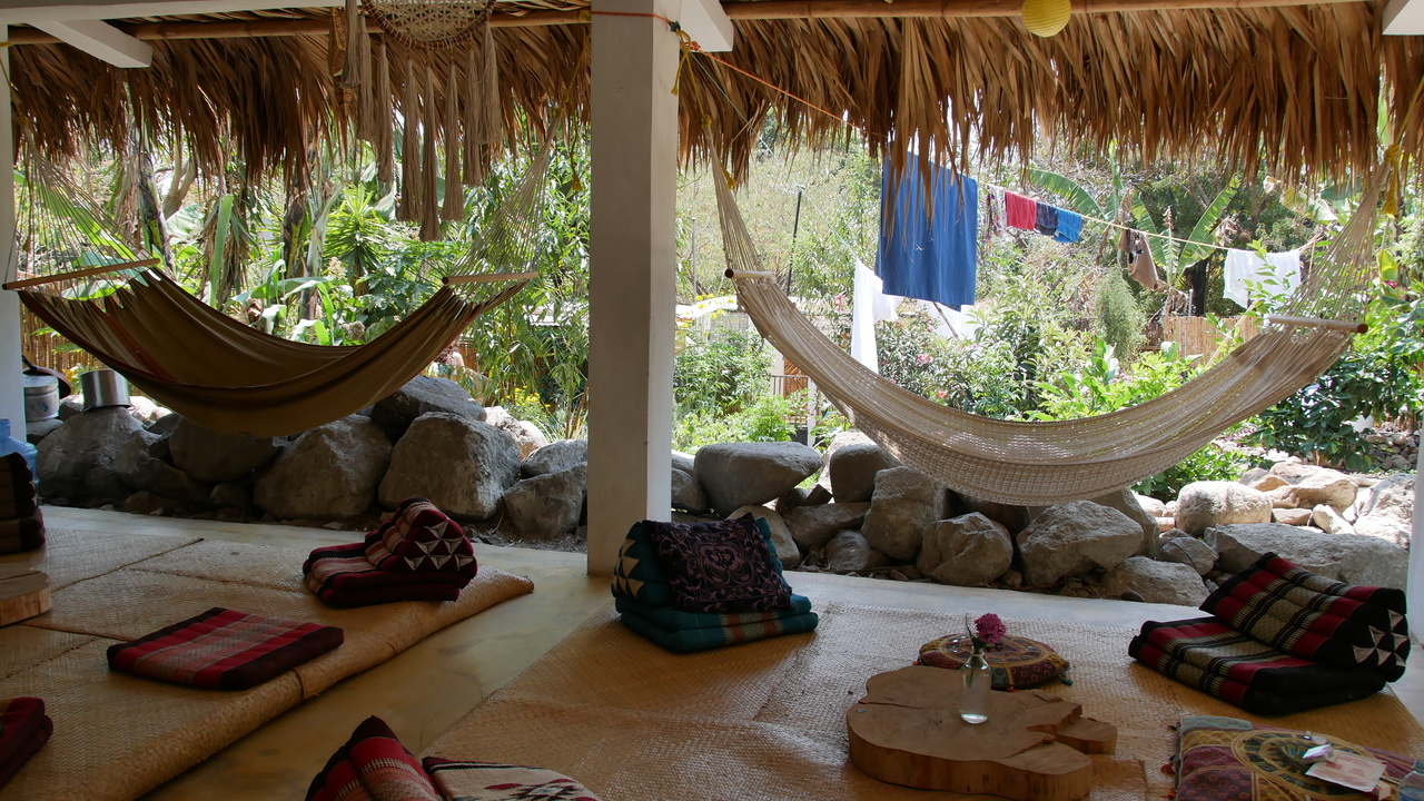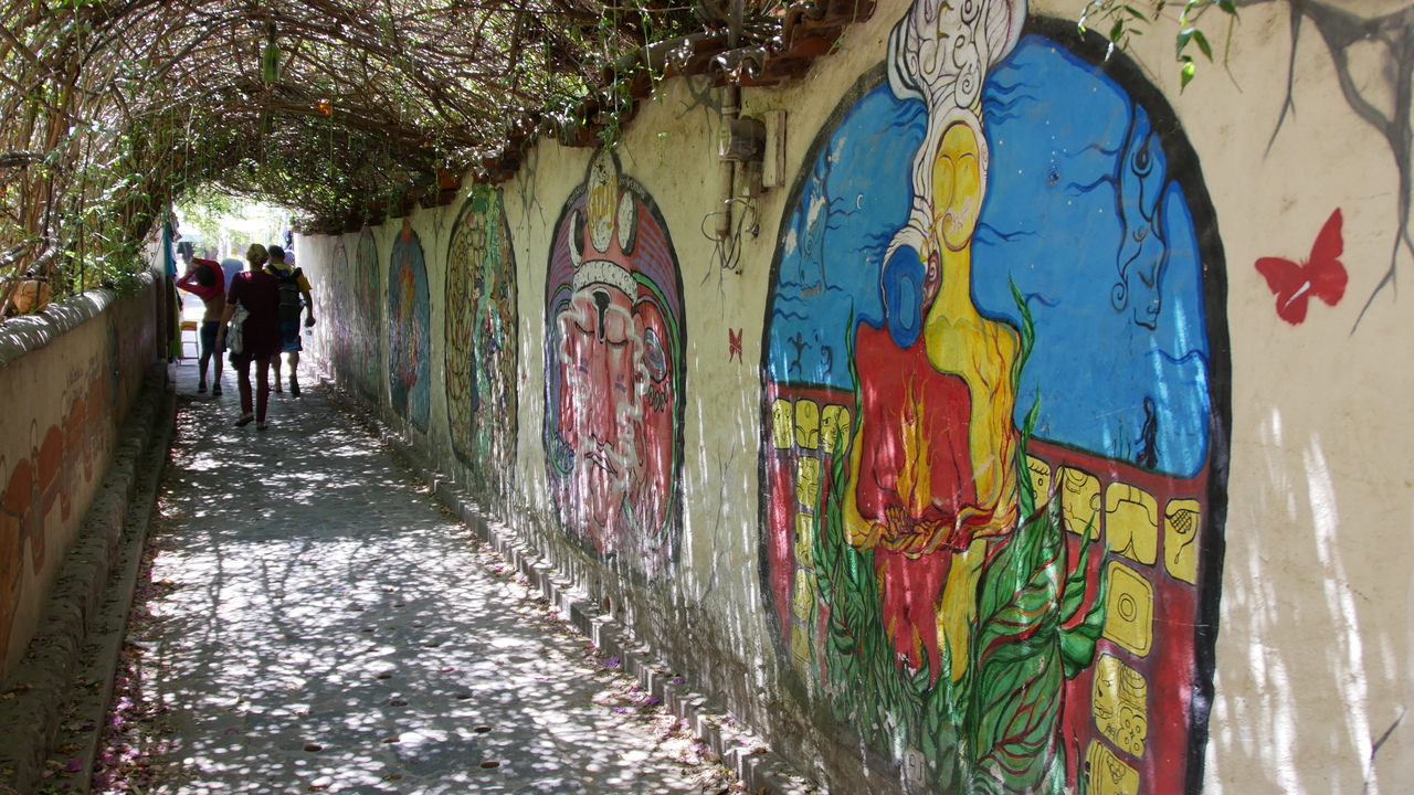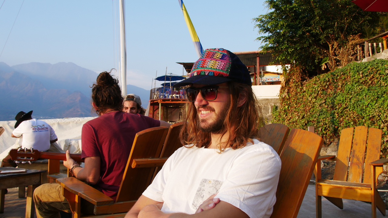 Hippies mit Dread Locks, die Kunsthandwerk und allerlei spirituellen Krimskrams verkaufen, vegane Cafés und Yoga-Hostels inmitten unbefestigter Pfade, auf denen sich abends die Straßenhunde versammeln – San Marcos La Laguna ist das spirituelle Örtchen am Lago de Atitlán. Im alternativen Ahau-Hostel stoßen wir auf bequeme Hängematten, eine chillige Atmosphäre, Bambusduschen und eine Kompostiertoilette. Amélie bekommt von der Gastgeberin frische Aloe Vera aus dem Hostelgarten für ihre Verletzung am Handgelenk, die sie sich beim Paragliding am Vortag zugezogen hat.