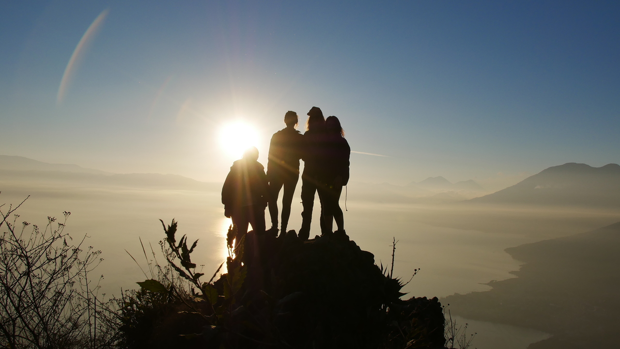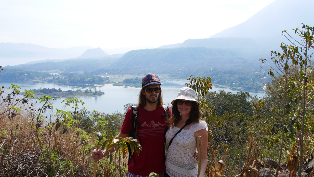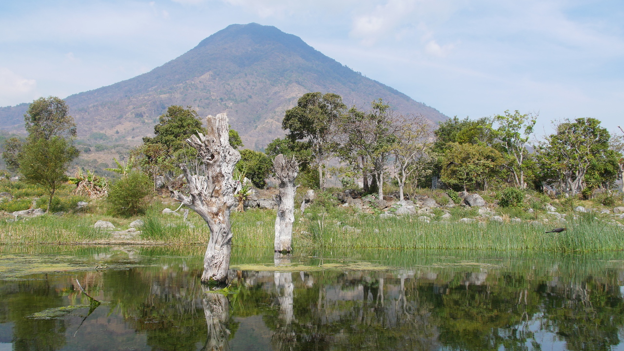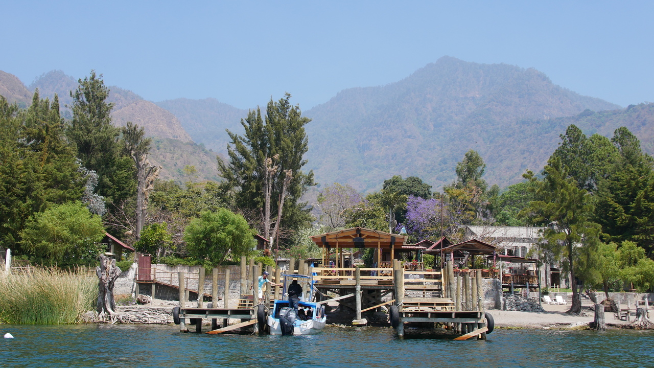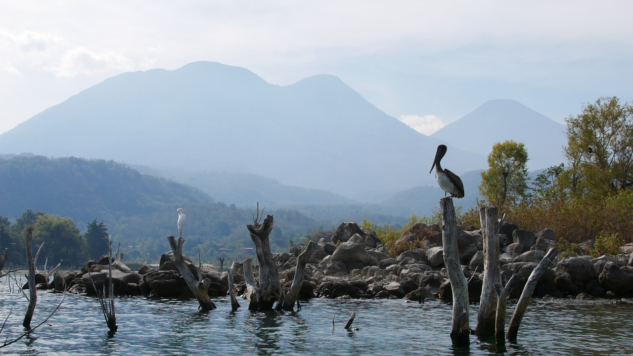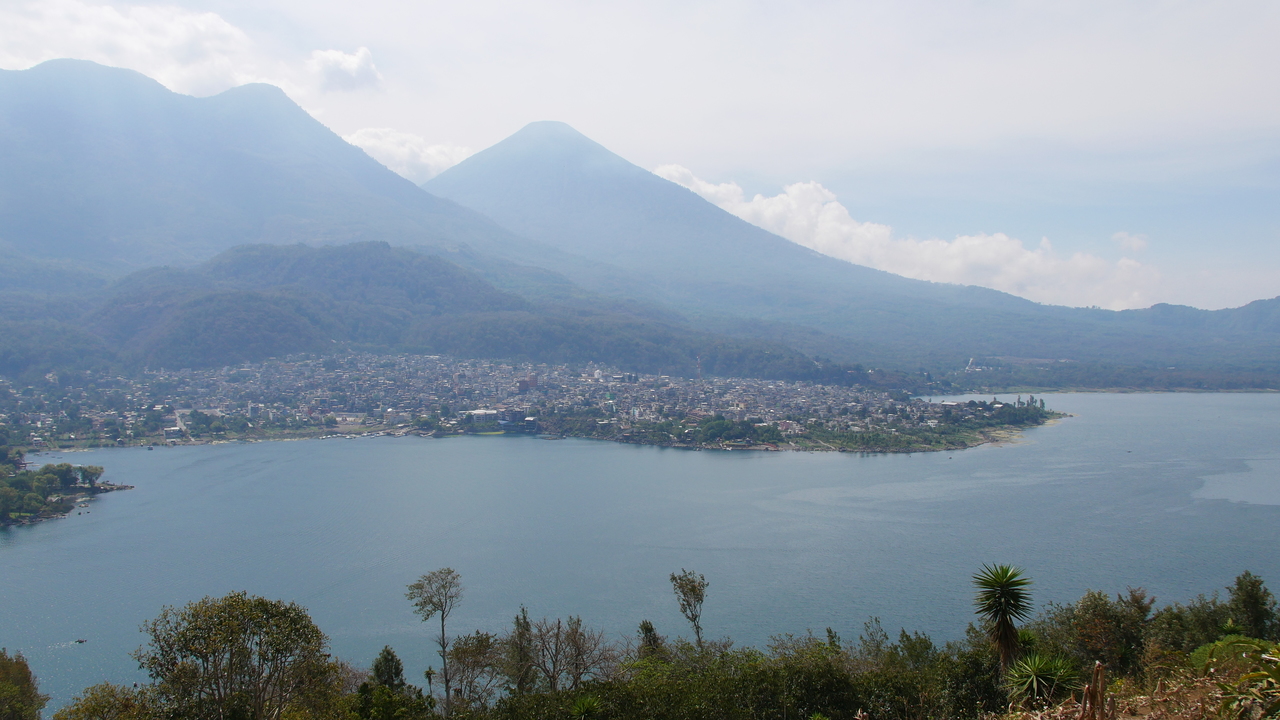 Steil geht es den Berg namens Rostro Maya („Indian Nose“) hinauf, teils über Leitern. Vom Lago aus betrachtet, gleicht der Berg einem menschlichen Profil, genauer einem Vorfahren der lokalen Maya. Nicolas erzählt uns, dass viele Fischarten seit der Einführung größerer Fische aus den USA im Lago verdrängt wurden und dass viele der hier lebenden Bauern seit dem Verfall des Kaffeepreises ein härteres Leben führen. Die Kirchen versprechen ein besseres Leben in der Zukunft. Nicolas gehört zu den wenigen, die dies für eine naive Lüge halten. Er wirkt gebildet, aufgeklärt, aber auch etwas depressiv. Obwohl es noch nahezu stockdunkel ist, zeichnen sich die Berge und Vulkane schon am Horizont ab und Fuego spuckt immer wieder Rauchwölkchen in den Himmel.