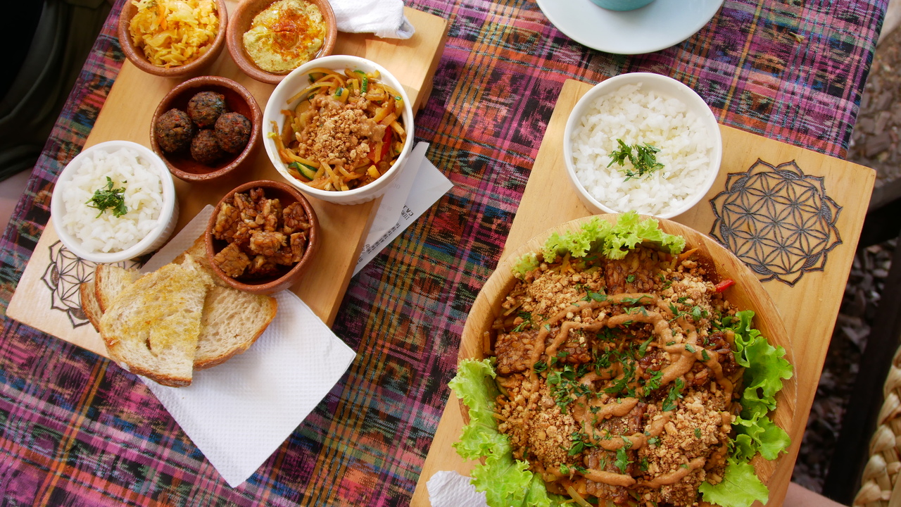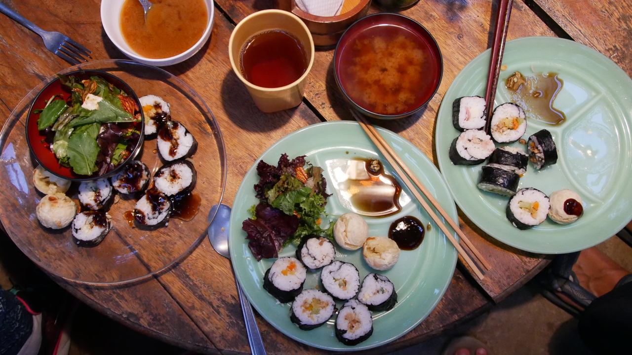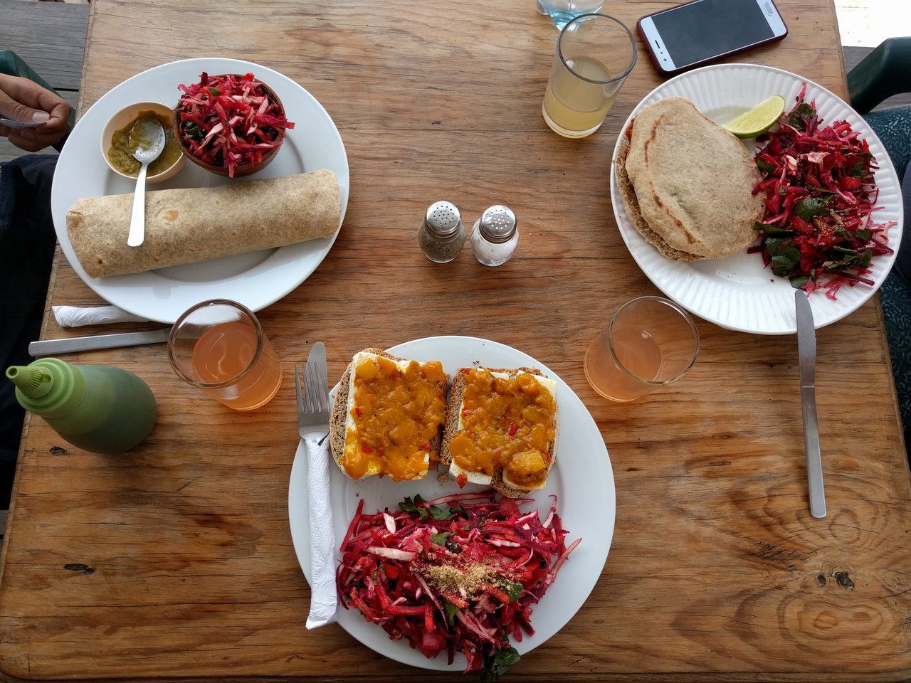 Unsere kulinarischen Highlights sind neben dem bereits erwähnten Zoola das Sushi-Buffet im Allala mit guatemaltekisch-japanischer Live-Musik und die Tempeh-Gerichte im Samsara in San Marcos. Im Café del Arte lassen wir uns typisch guatemaltekische Gerichte in einem bunten Ambiente in der Nähe des Fähranlegers in Santiago schmecken. Im 5th Dimension in San Pedro gibt es Tandoori-Burritos, Ziegenkäse-Mango-Chutney-Sandwichs und sättigende Smoothies mit Hanf-Protein, Cacao-Nibs und allem, was man sich so vorstellen kann. Am besten schmecken jedoch immer noch die Mahlzeiten unserer Gastmütter und dazu warme Mais-Tortillas.