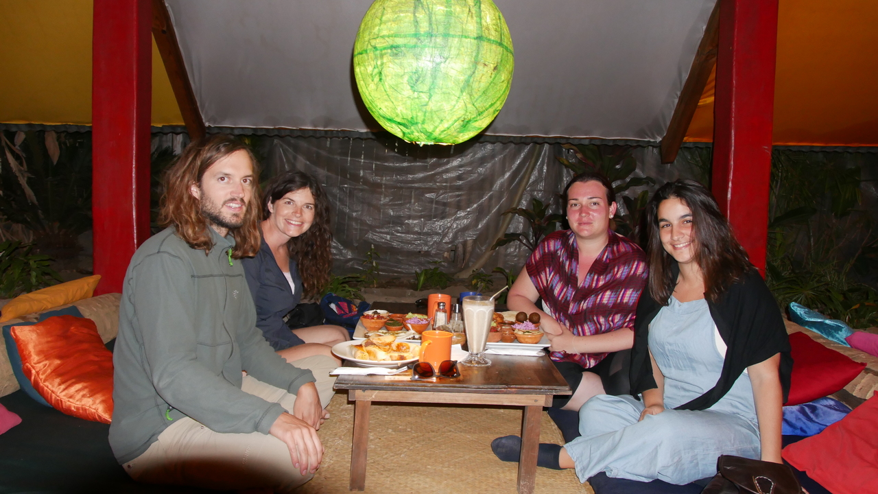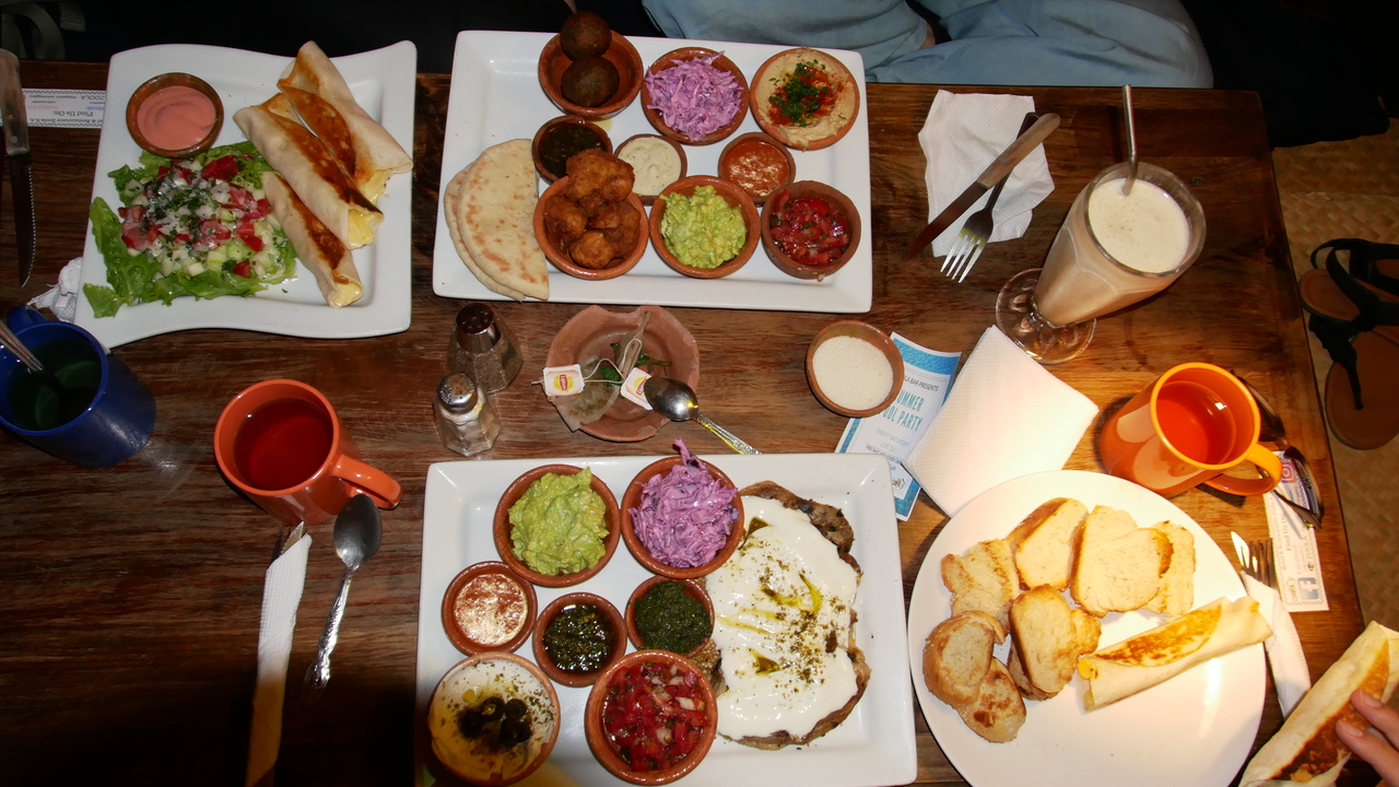 Nachdem wir innerhalb kürzester Zeit gleich zweimal einer potentiell gefährlichen Lage entkommen sind, gönnen wir uns im israelischen Restaurant Zoola ein ausgiebiges Dinner samt köstlichem Dessert – Schoko-Soufflé mit Vanilleeis, Keksen und Banane. Für emotionale Wogen sorgt die Nachricht, die Amélie an ihre WhatsApp-Familiengruppe geschrieben hat, als wir uns entschieden, das Tuctuc zu nehmen. „… Wenn ich mich nicht in einer Stunde melde, ruft die Botschaft an...“