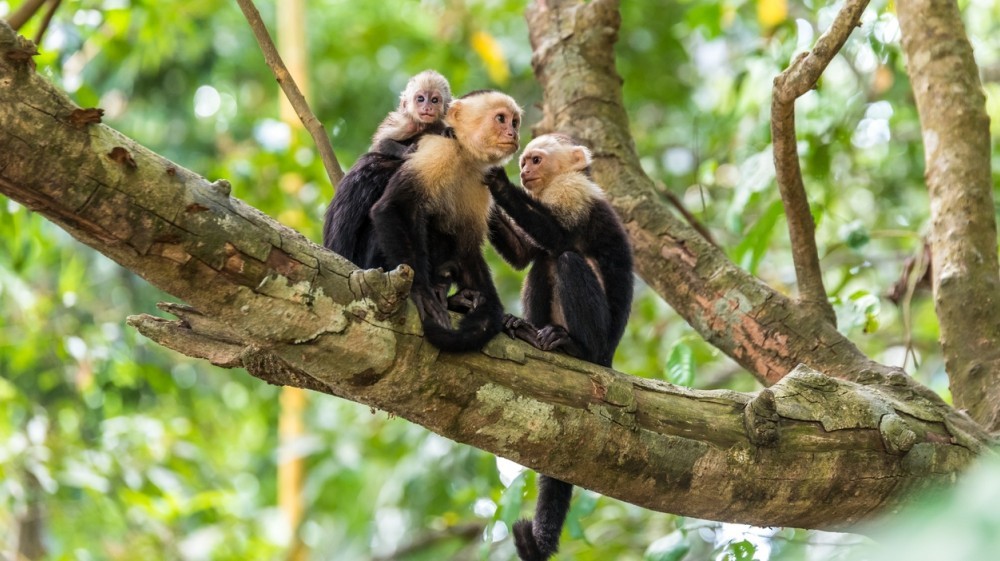 Brüllaffen springen durch die Baumkronen, mittelamerikanische Totenkopfaffen schwingen sich zu Dutzenden von Ast zu Liane und Panama-Kapuzineraffen tollen ausgelassen auf dem Waldboden herum. Mehrere Leguane sind am Strand auf ihren Felsen und Baumstämmen so gut getarnt, dass kaum ein Touri sie ausmacht. Violette Krebse tummeln sich im feuchten Boden, obwohl das Meer noch hunderte von Metern entfernt ist. Einmal landet ein riesiger geierartiger Vogel im Baum gleich neben uns und ein rotköpfiger Specht erinnert an Pinocchio. So manche Tiere kommen uns gar nicht so unbekannt vor: Agutis sehen ein bisschen aus wie Frischlinge und Weißwedelhirsche hätten wir hier nicht erwartet.