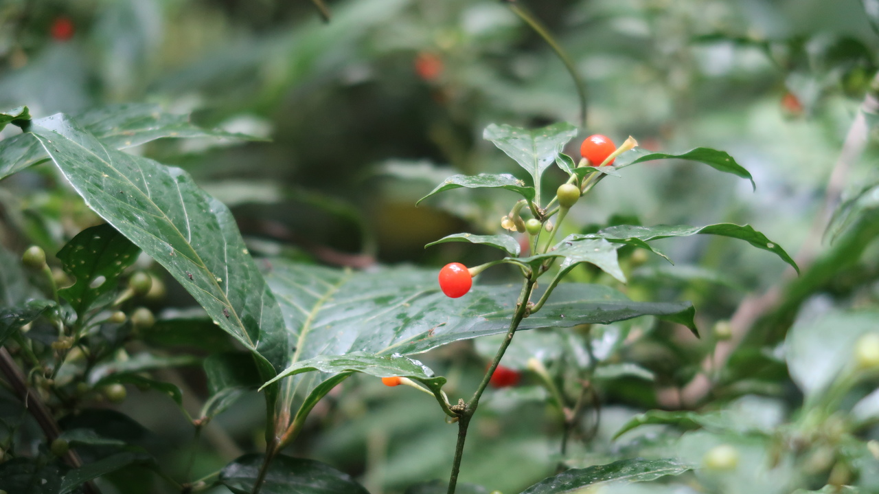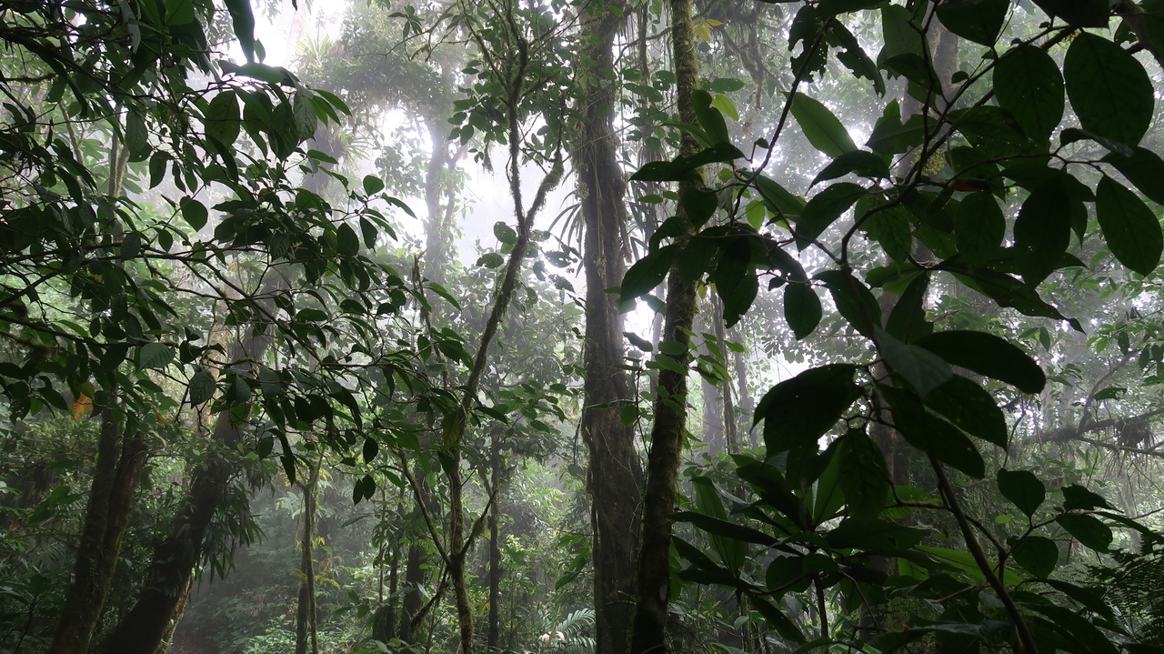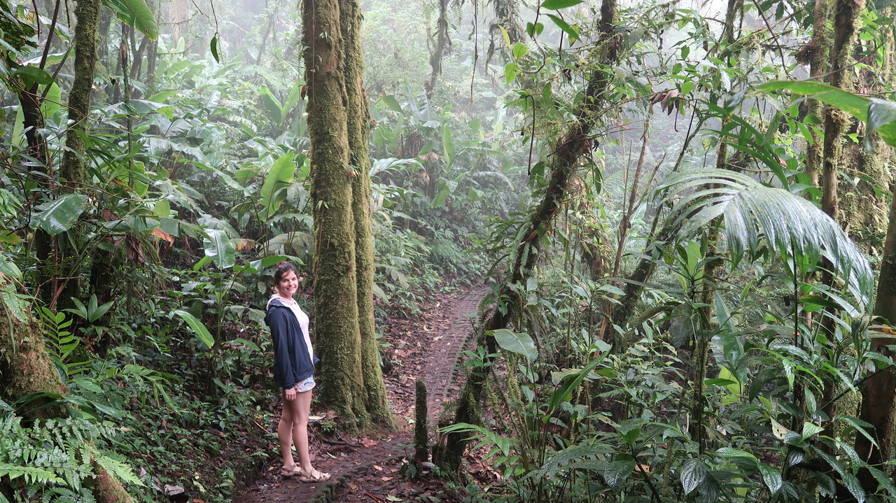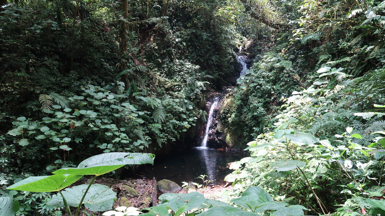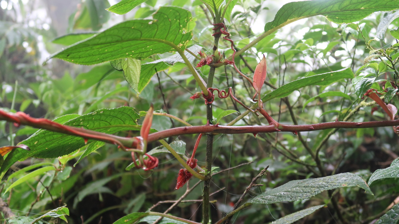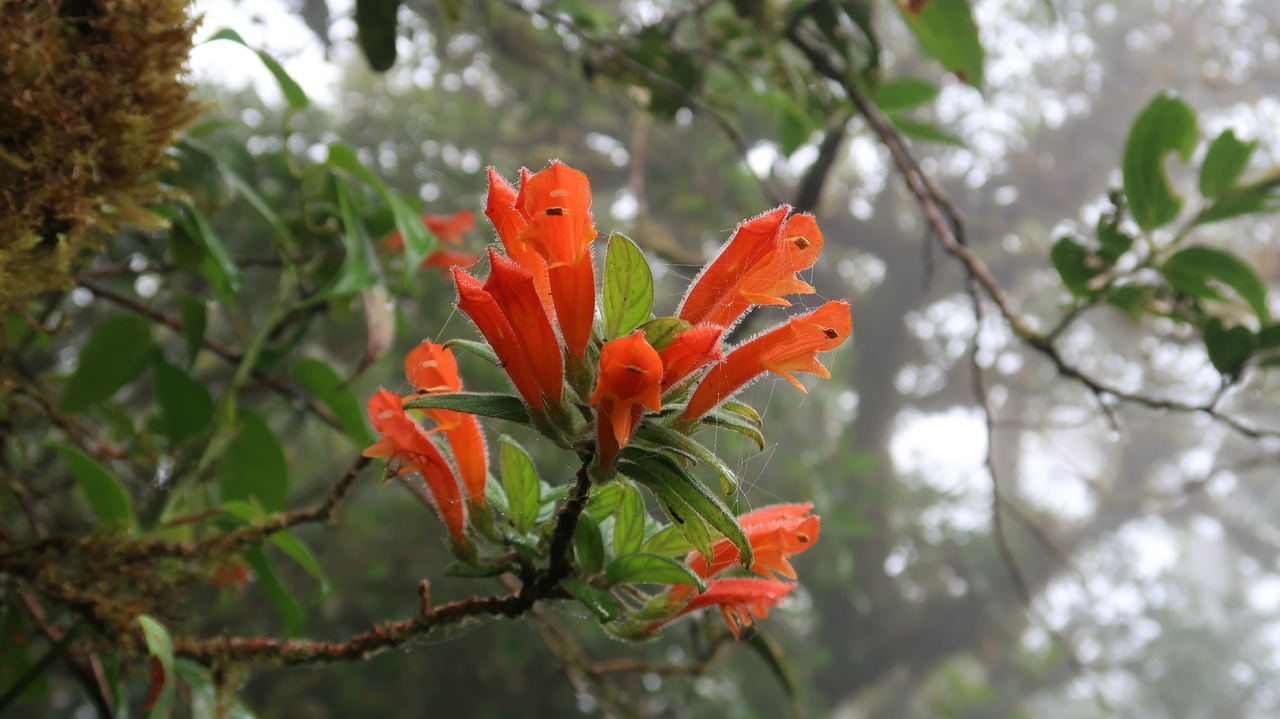 Imposanter und interessanter finden wir die Nebelwälder bei Tageslicht. Die morgendlichen Nebelschleier verwandeln sich ab und zu in Nieselschauer, als wir durch den zugewucherten Bosque Nuboso voller Mose, Flechten, gigantischer Lianen und Luftwurzeln wandern. Die Luft könnte frischer nicht sein und abgesehen vom Gezwitscher der Vögel und dem gelegentlichen Brüllen der Brüllaffen umgibt uns Stille. Wir treffen auf jede Menge exotische Tropenpflanzen, die geradezu dazu einladen, ihnen coole Namen zu geben – Coral Coffee zum Beispiel (offiziell “Mountain Corn”), rote Bush Berries, pinke Jungle Cherries und Farnbäume, die sich gerne mal in Alien-artige Calamares-Churros verwandeln.