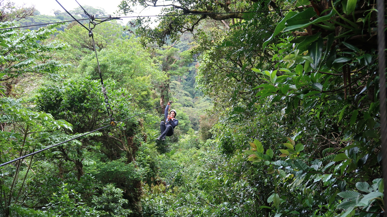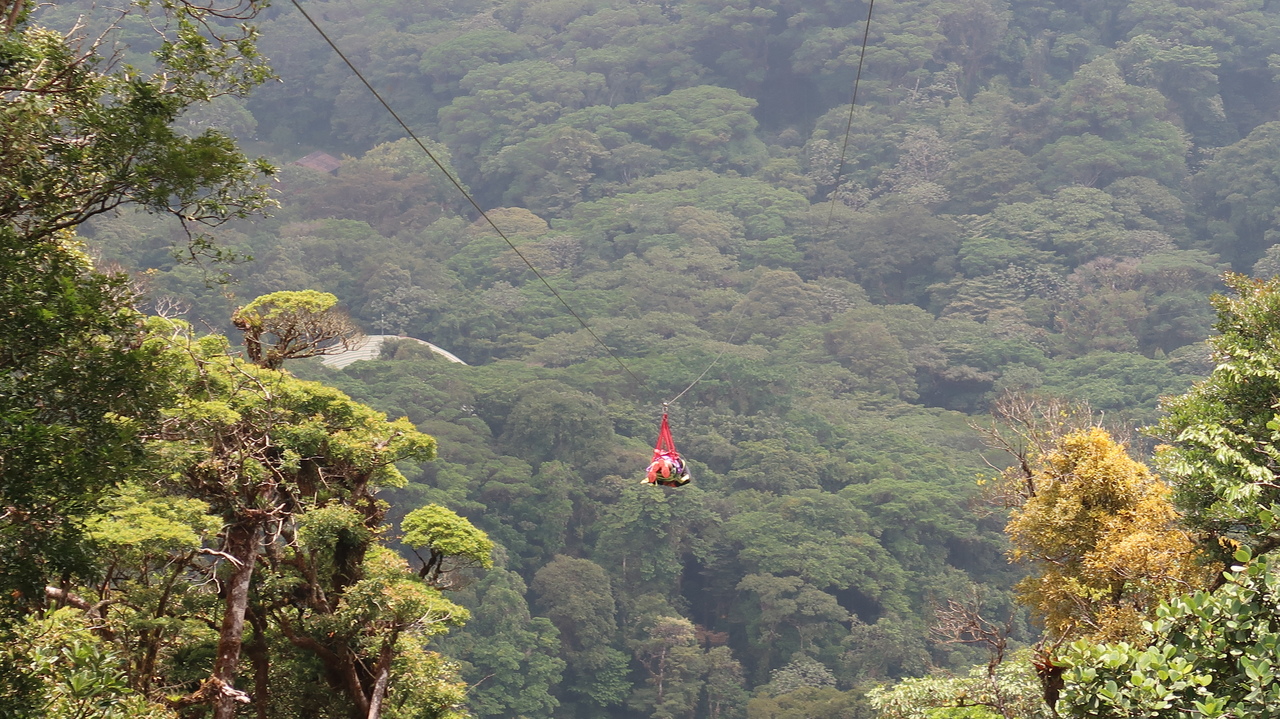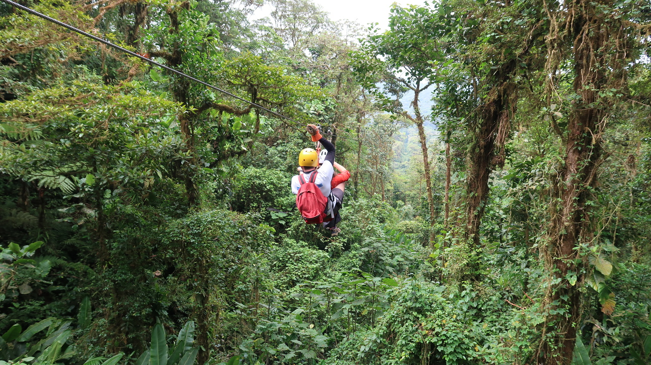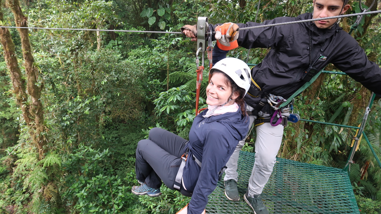 “Ok, you can go”, meint der Guide – und schon sausen wir mit in einem Affentempo über die Baumkronen des Nebelwalds. Anfangs hat uns die kommerzielle Effizienz von Selvatura Canopying etwas abgeschreckt, mit der hier alles durchgetaktet ist und die so gar nicht zur entspannten “pura vida”-Mentalität der Ticos passt. Sobald wir jedoch auf den Plattformen unterwegs sind, verteilen sich die Touristenmassen im Nebelwald. So genießen wir Adrenalin pur in der Natur auf insgesamt 13 Seilrutschen. Die längsten Ziplines – mit 850 Metern bzw. einem Kilometer Länge - rutschen wir paarweise entlang. Ein paar in unserer Gruppe fliegen die letzte Seilrutsche in einer liegenden Superman-Pose und machen dabei eine ziemlich gute Figur.
