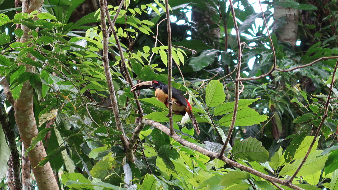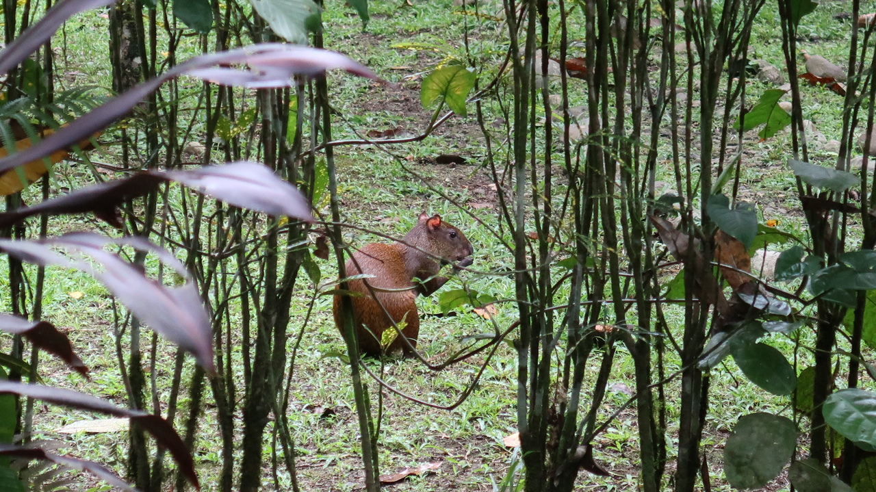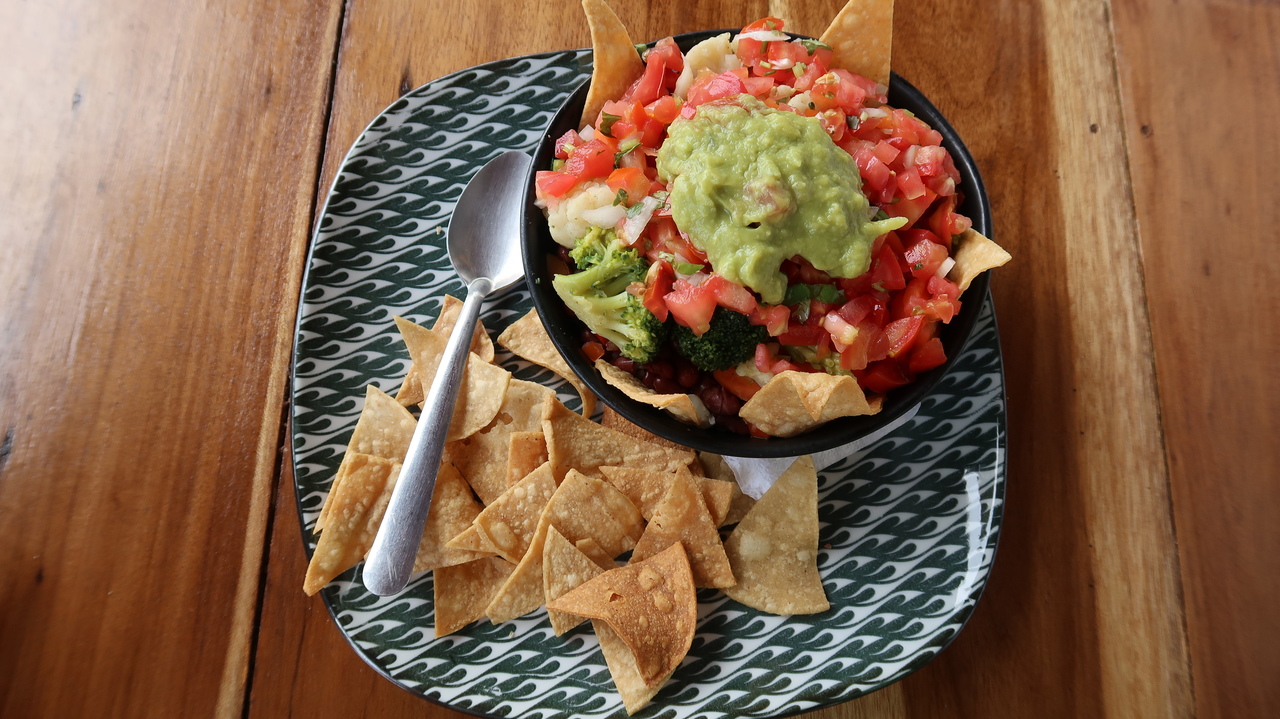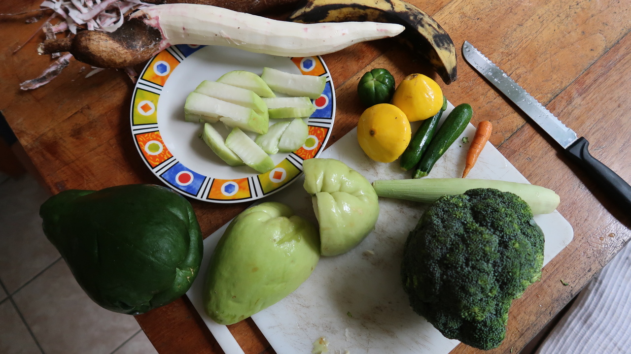 Noch vor Sonnenaufgang erwacht der Regenwald um uns herum zirpend, singend und brüllend. Da die kleine Bungalowanlage Luna Caribeña außerhalb des Orts und abseits der Straße liegt, sind wir hier auch tagsüber nur von den Geräuschen der Natur umgeben. Wie ein Wanderzoo schauen nach und nach Kolibris, Tukane, Agutis, riesige Grashüpfer, Tausendfüßler und Fledermäuse nach dem Rechten und ziehen weiter. Wir genießen es, eine Veranda mit Hängematte und Kochnische zu haben. So bereichern wir unser morgendliches Mango-Müsli mit Maracuja, Ananas und Papaya und kochen uns leckere Mahlzeiten – landesuntypisch mal ohne Reis und Bohnen, dafür mit Maniok, Chayote, Minikürbissen und gebratenen Kochbananen.
