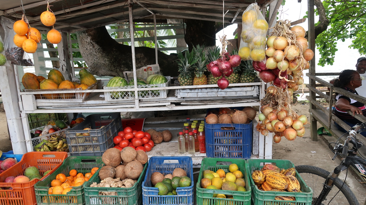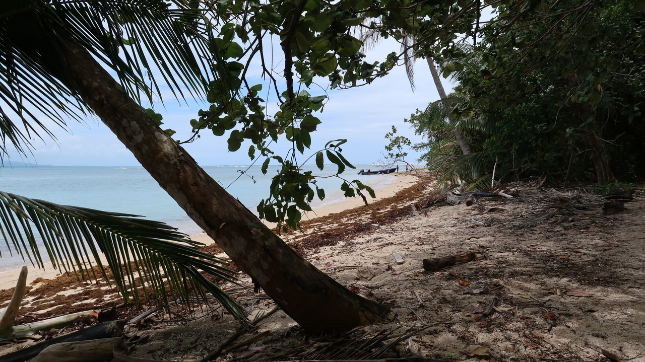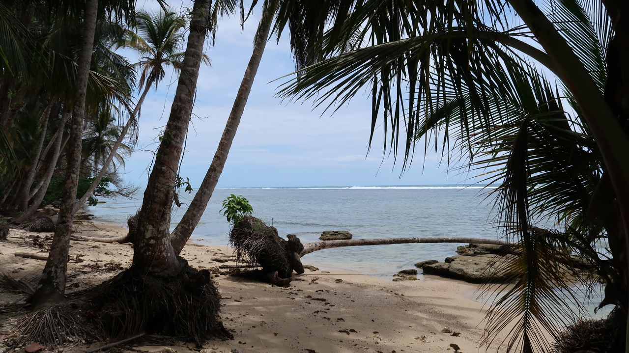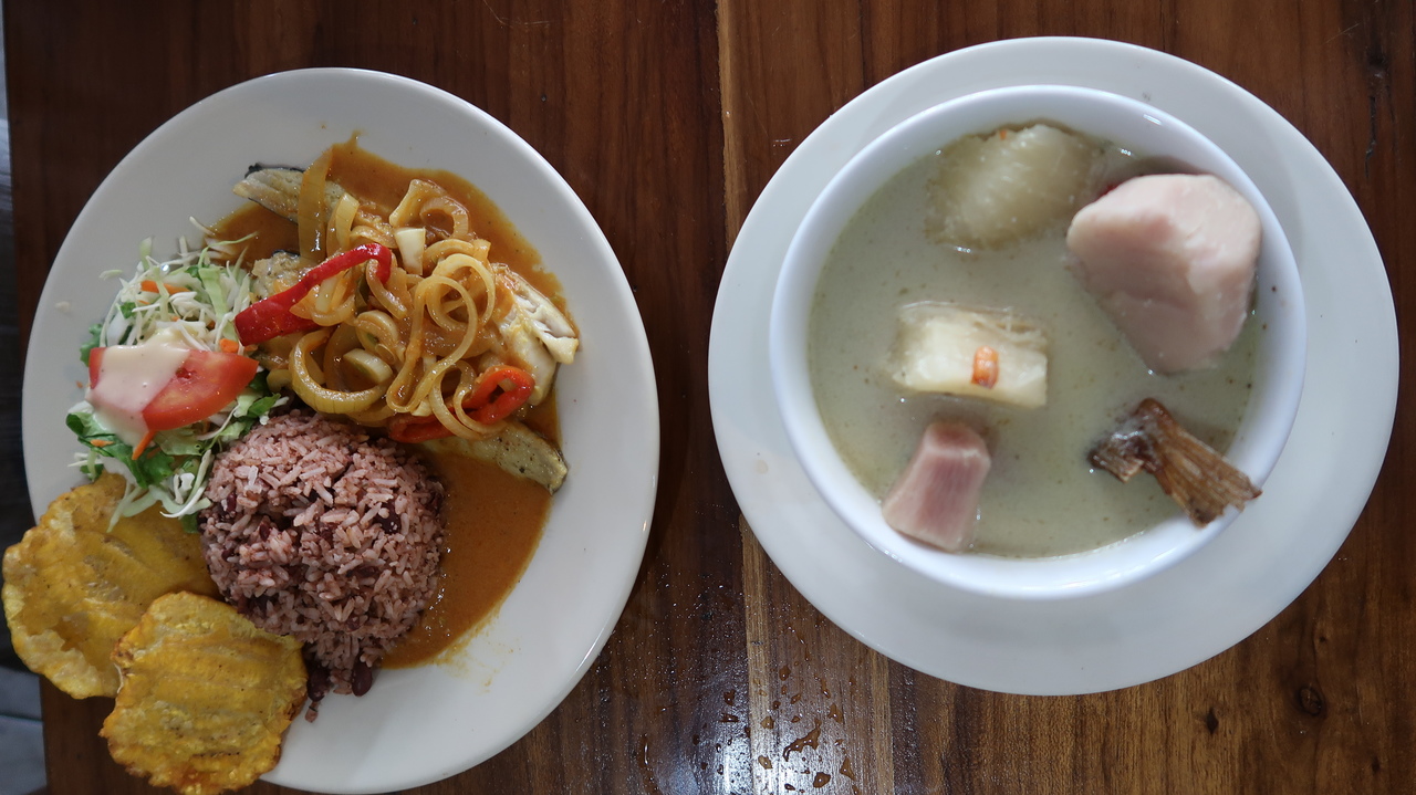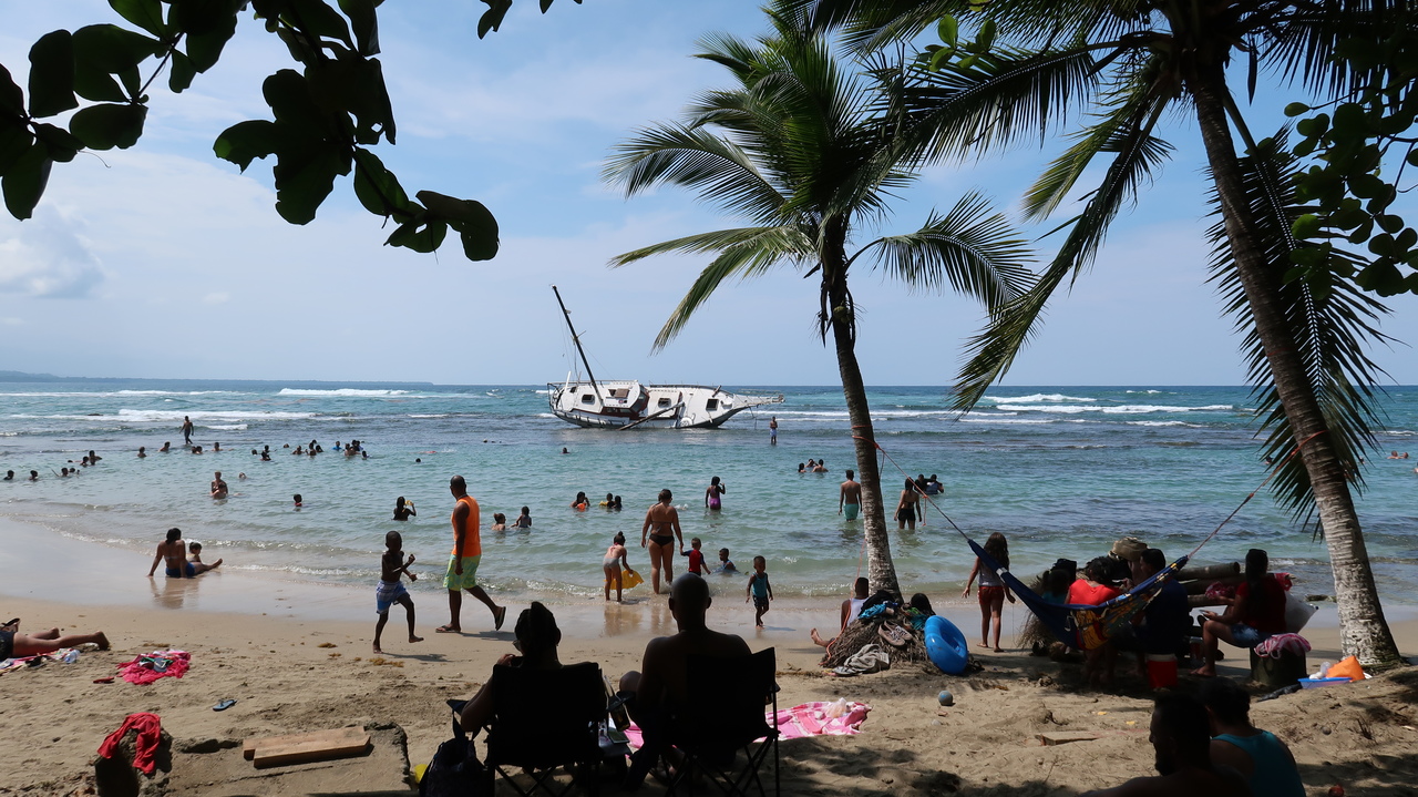 Österliches Campen am Karibikstrand scheint sich in Costa Rica großer Beliebtheit zu erfreuen und so sind unter den Palmen entlang der Strände ganze Zeltstädte entstanden. Ein havariertes Boot liegt mit Schräglage im Wasser vor Puerto Viejo, was die Badenden nicht weiter stört. Im jamaikanisch angehauchten Familienrestaurant „Tamara“ probieren wir den karibischen Eintopf Rondón mit Kokosmilch, Maniok und Fisch sowie „Agua de Sapo“, eine scharfe Limo mit viel Ingwer. Es bedienen uns die Söhne, die vielleicht zehn Jahre alt sind.