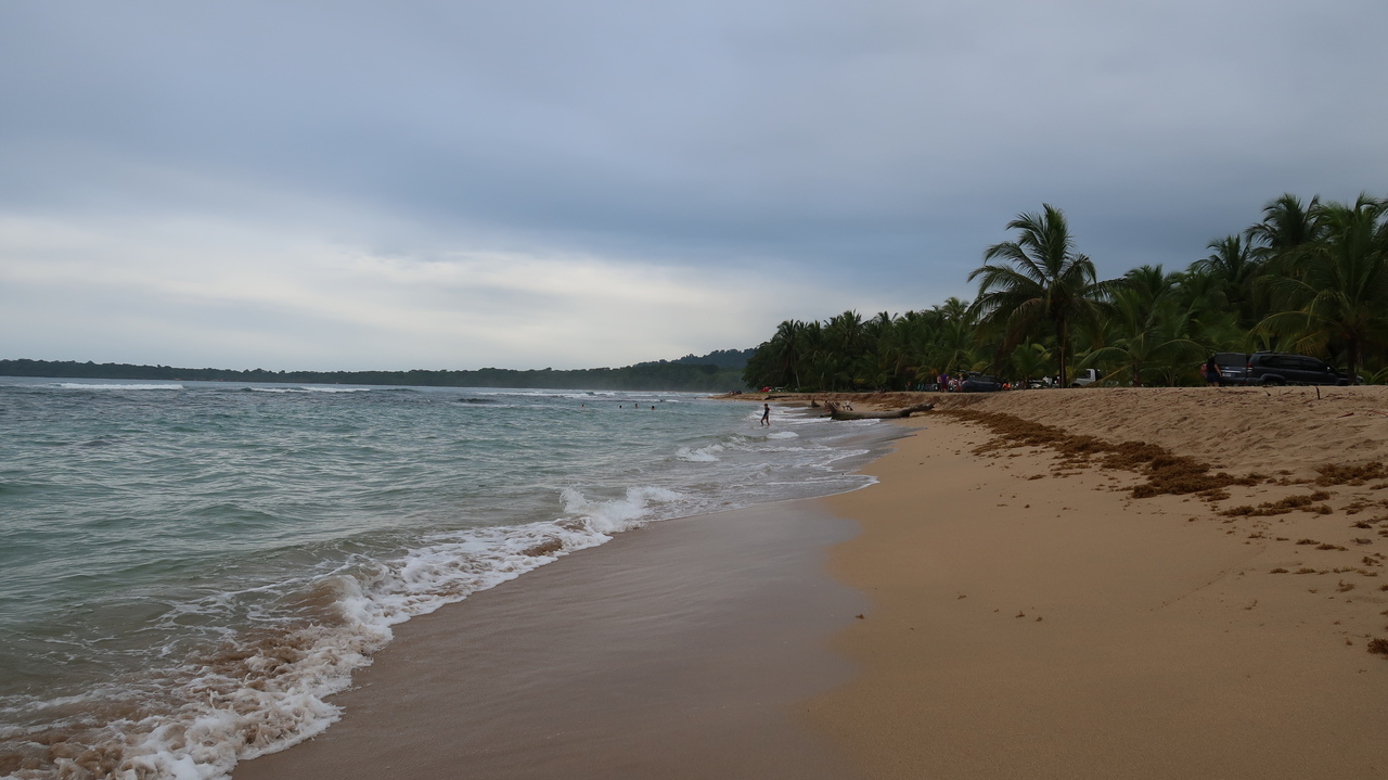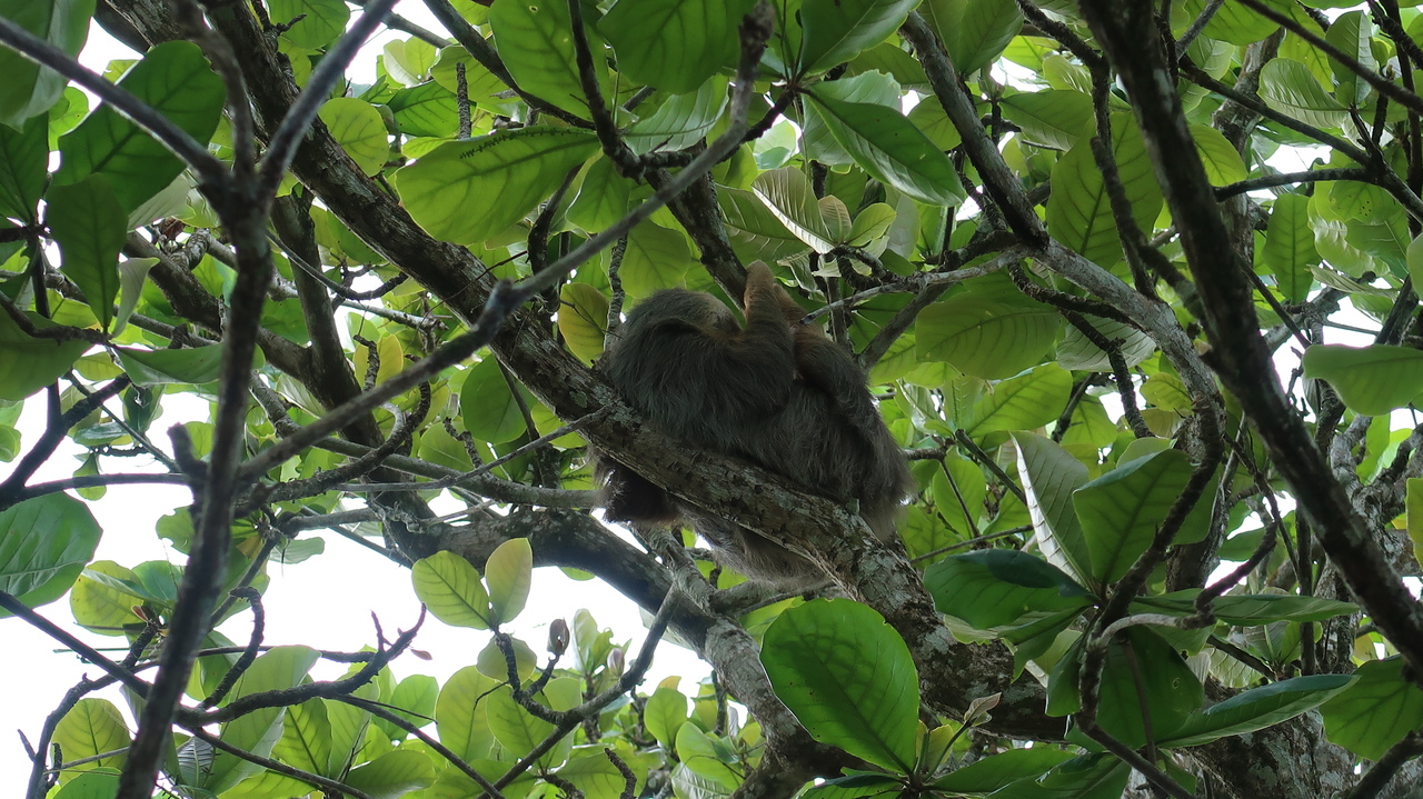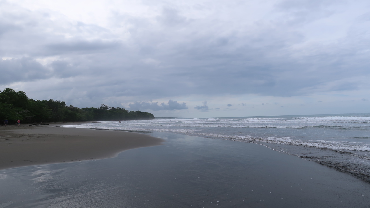 An der Playa Negra haben einige wenige Backpacker viel schwarzen Sand für sich alleine. Ein Faultier schläft in einem Baum, diesmal nur einige Meter vom Boden entfernt und gut erkennbar. Cahuita ist um einiges entspannter und ruhiger als sein größerer Nachbar Puerto Viejo, vom österlichen Besucheransturm merkt man hier nichts.