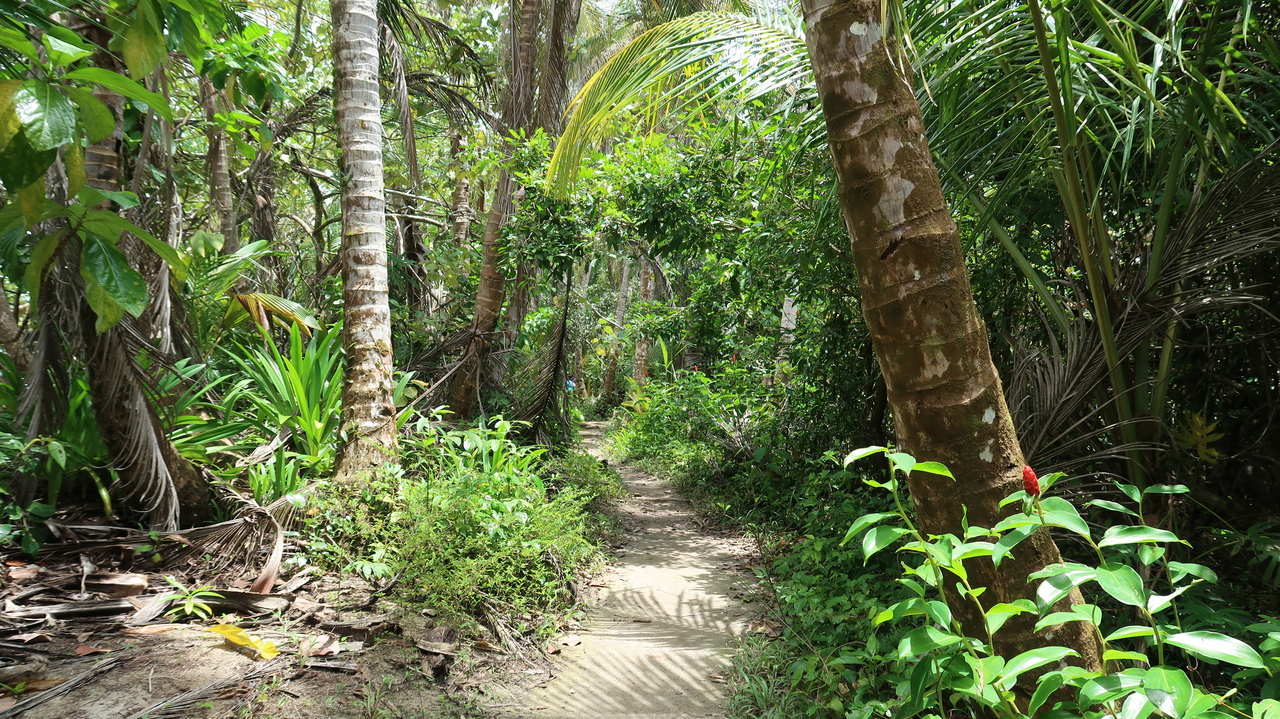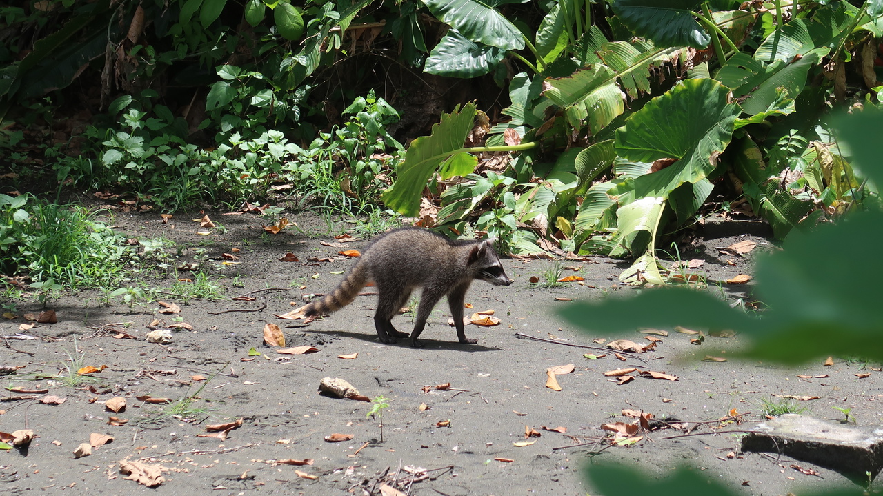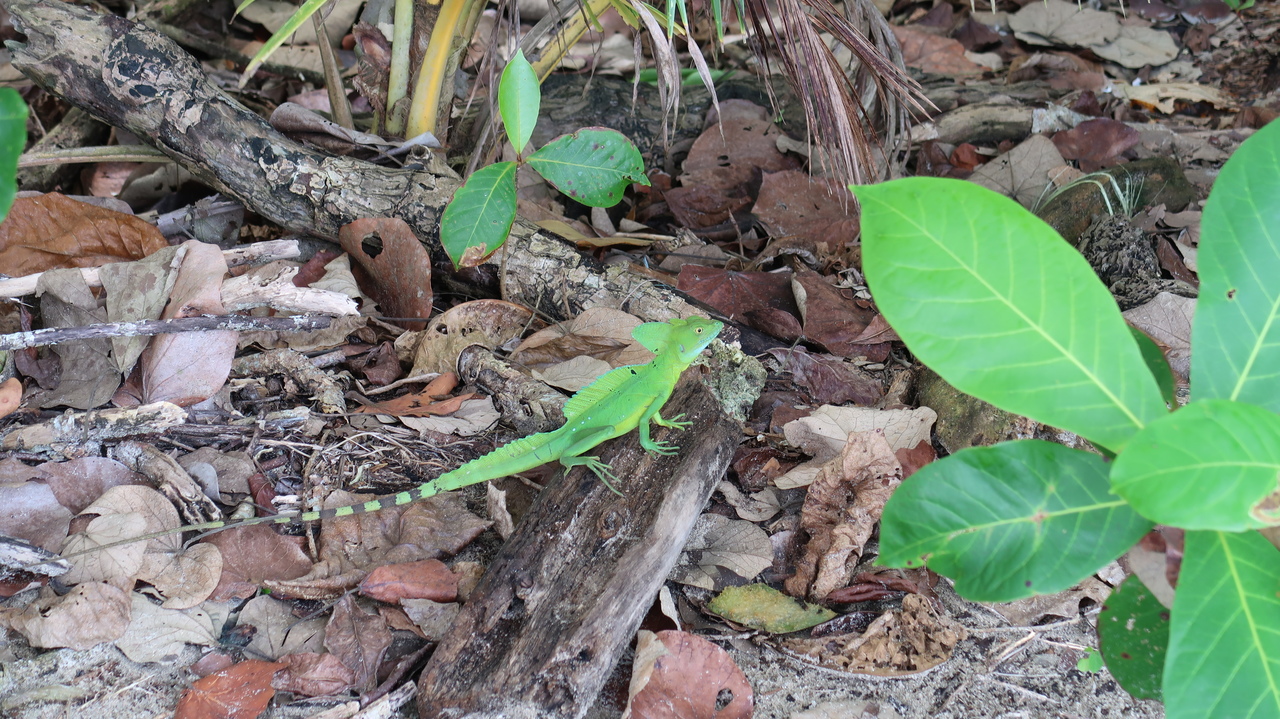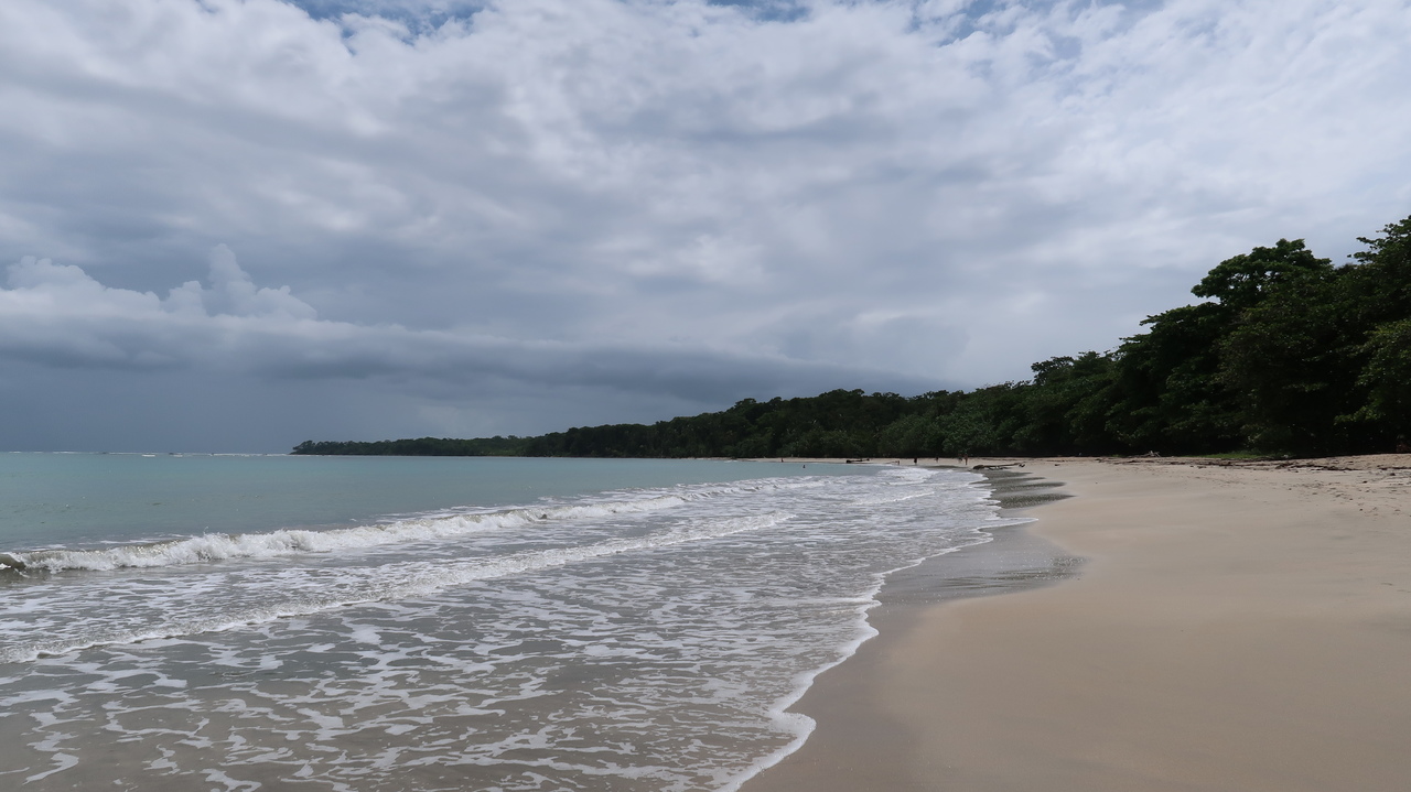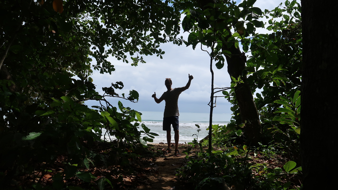 Weißer Sand, türkisfarbenes Meer, grüne Palmen – unsere landschaftlich reizvollste Wanderung in Costa Rica führt uns an Max‘ Geburtstag durch den Cahuita Nationalpark. Der Weg führt uns an Stränden entlang, durch schattigen Regenwald und auf Plankenwegen über Mangrovenwälder und Sümpfe hinweg. Immer wieder kreuzen exotische Tiere unseren Weg, von denen wir die meisten inzwischen kennen, darunter verspielte Affen, flinke Eichhörnchen, neonfarbene Salamander und Einsiedlerkrebse. Zwischendurch kühlen wir uns in den sanften Wellen der Karibik ab, die zwar warm, zu unserer Überraschung aber kühler als der Pazifik Costa Ricas sind.