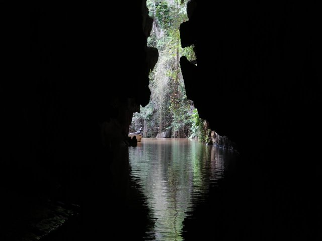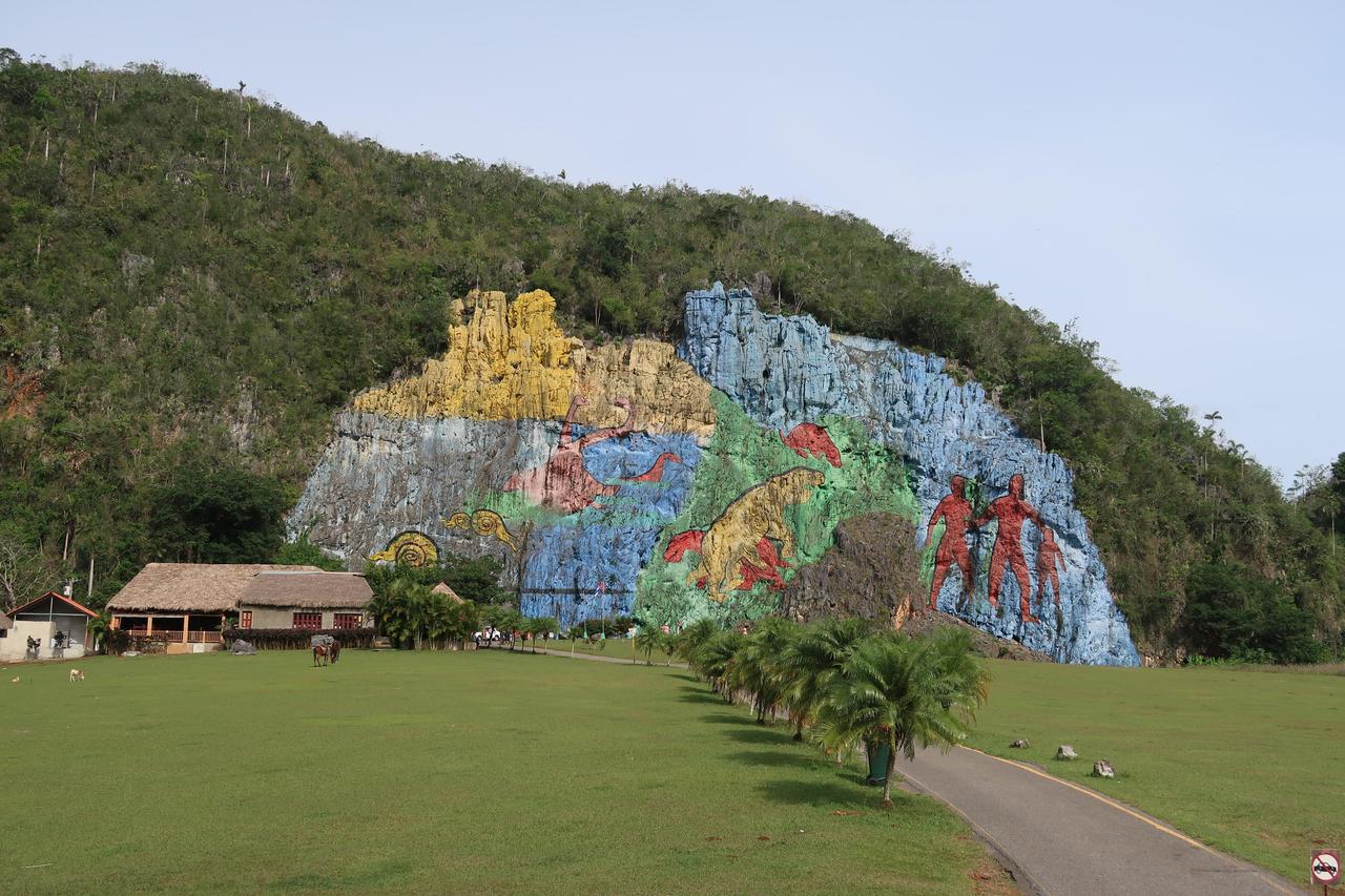 Völlig deplatziert wirkt der Doppeldecker-Hop-on-hop-off-Bus im ländlichen Valle de Viñales. Dennoch grüßen die Einheimischen überall strahlend den Bus(fahrer) und es ist eine komfortable und günstige Möglichkeit, die Umgebung zu erkunden. Wie etwa die kunterbunte Felsmalerei Mural de la Prehistoria, den Mogote Coco Solo und die Cueva del Indio. Nach einem Spaziergang durch die Dunkelheit fahren wir hier mit einem Boot durch die Höhle, wobei uns ein Guide per Laserpointer mit gelangweilter Leierstimme auf die durchaus interessanten Höhlenformationen wie die drei Schiffe des Kolumbus aufmerksam macht.