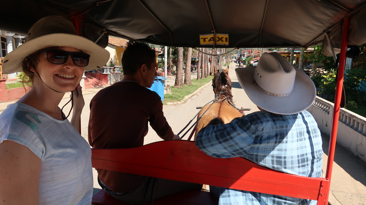 Obwohl viele der bunten Häuser in Viñales Casa Particulares sind, herrscht eine ursprüngliche Dorfatmosphäre. Wir fühlen uns in die Vergangenheit versetzt: morgens fahren Bauern mit ihren Ochsenkarren aufs Feld und es sind mehr Pferdekutschen als Oldtimer auf den Straßen unterwegs. Unsere Gastgeberin Juany ist die Herzlichkeit in Person. Sie verwöhnt uns mit einem üppigen Frühstück, wobei sie uns jeden Morgen eine neue süße Köstlichkeit auftischt: Marmelade aus Guaven und grünen Papayas, Honig aus der Gegend, Mais-Schoko-Pudding und Buñuelos, gebratene Maniok-Teigkringel, die ein wenig an Churros erinnern.