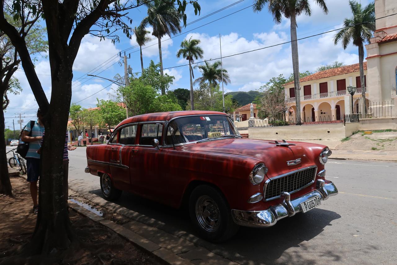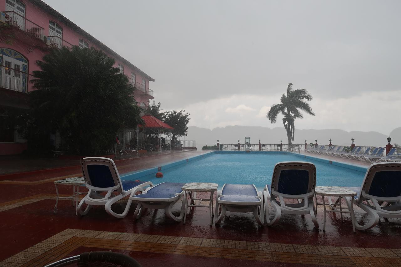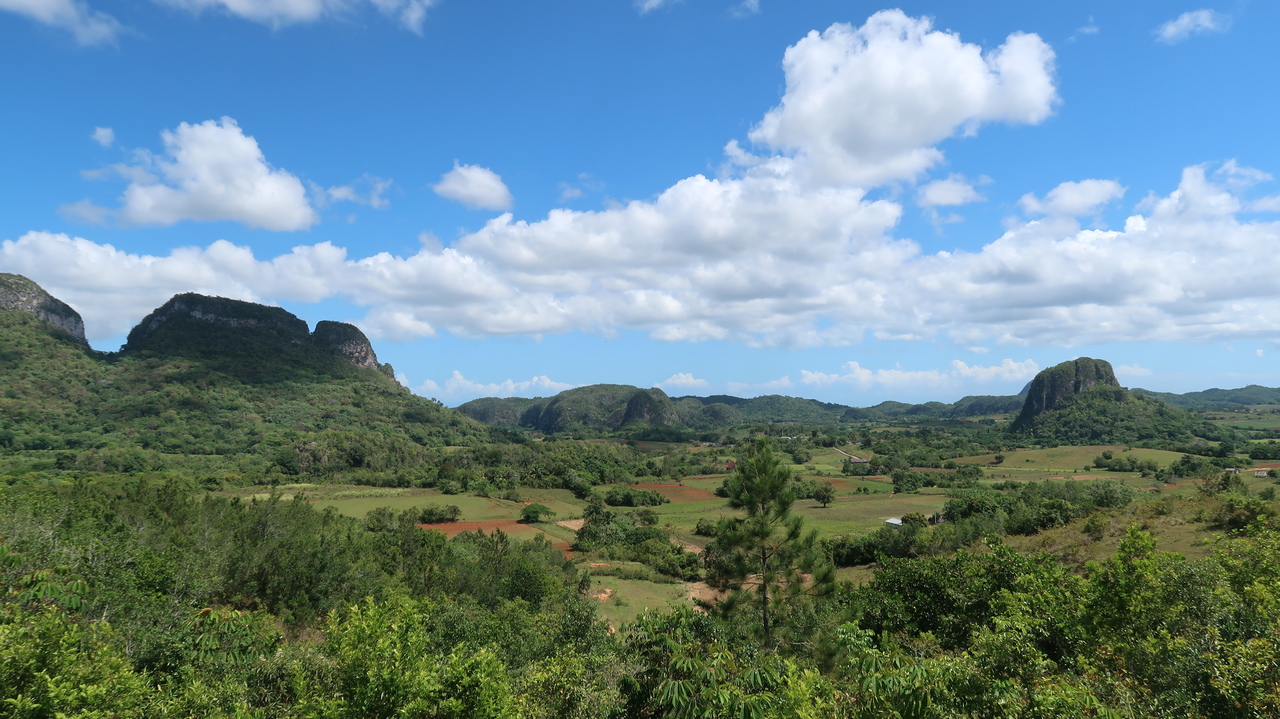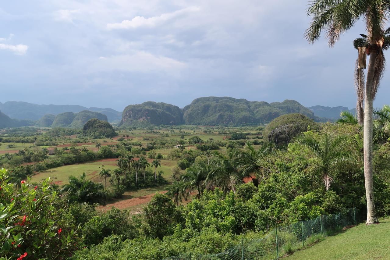 Das Hotel Los Jazmines im rosa Kolonialstil bietet einen grandiosen Ausblick in die Weite - über grüne Felder, rote Äcker und Tabak-Trockenhütten bis zu den grauen Karstfelsen am Horizont. Und die Möglichkeit, den erstaunlich tiefen Pool (von 2,80 Meter) zu nutzen. Eine Gruppe Einheimischer feiert hier gerade ein größeres Familienfest mit riesigen Kuchenplatten, Latino-Klängen und purem Rum. Wir sind fast die einzigen Ausländer am Pool. Interessanterweise scheinen sich die Zimmerpreise an zahlungskräftige Ausländer, die Getränkepreise an der Bar dagegen an Kubaner zu richten. Gerade haben wir uns mit Piña Colada und Eis eingedeckt, da beginnt es zu regnen. Nach einigen Sekunden wie aus Kübeln. Zusammen mit der Geburtstagsgesellschaft flüchten wir in die Hotellobby. Als wir eine Stunde später in den Doppeldeckerbus hüpfen, scheint schon wieder unschuldig die Sonne.