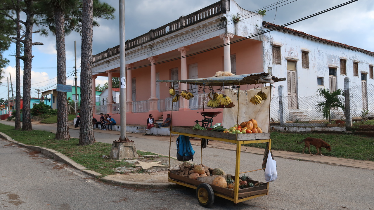 In Kuba an Lebensmittel zu kommen erfordert echtes Insider-Wissen, so auch in Viñales. Im Supermarkt ist die Auswahl wieder erschreckend gering. Der Thunfisch in der Vitrine sei erst ab morgen zu verkaufen, informiert uns die Verkäuferin. Erdnüsse sind nach wie vor unauffindbar. Dafür entdecken wir in dem Snackstand vor einem Spielplatz süße Erdnussriegel (dulce de maní), die es mit ganzen und gemahlenen Erdnüssen gibt. Und zwar überall im Land, wie wir später feststellen werden. Interessant ist auch der Obsthandel. Früchte gibt es in Viñales ausschließlich an mobilen Straßenständen zu kaufen, und zwar allesamt aus der Region, allerdings nur in bestimmten Straßen und zu bestimmten Zeiten. Guaven erweisen sich als der perfekte Mitnahme-Snack, schade nur, dass die Mangos in der Gegend noch nicht süß schmecken. Dafür müsse es erst einmal zwei Wochen lang ordentlich regnen, erklärt uns Juany.