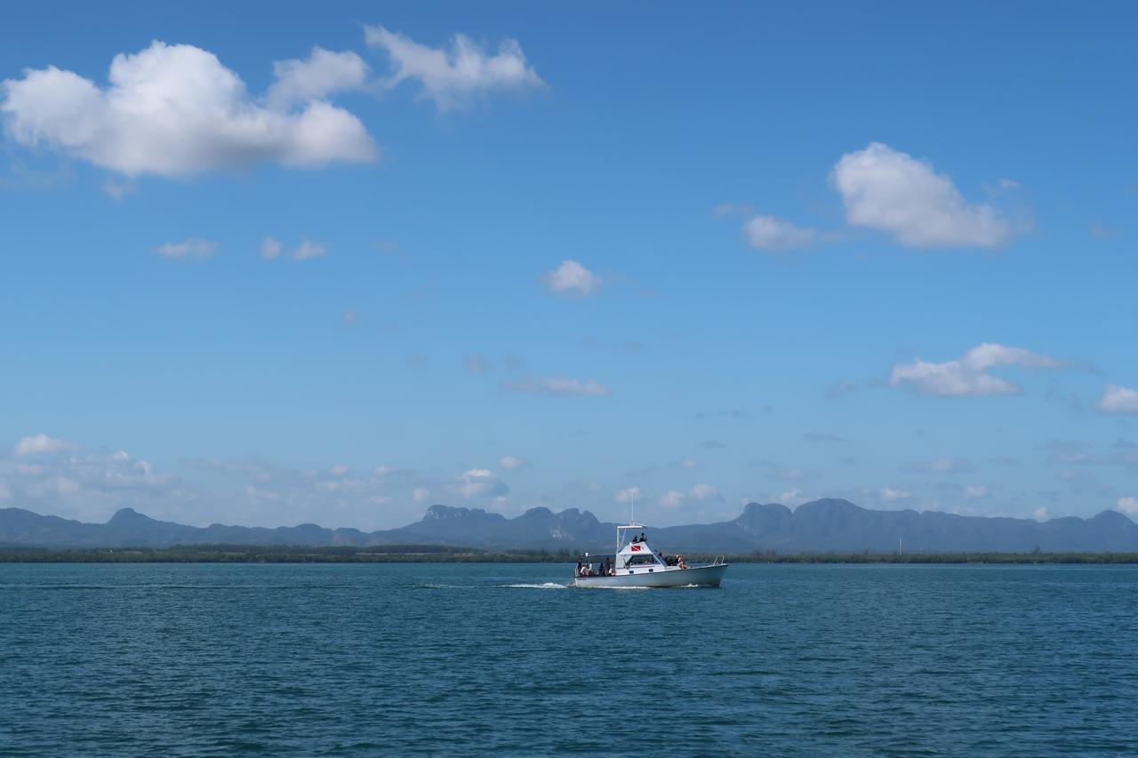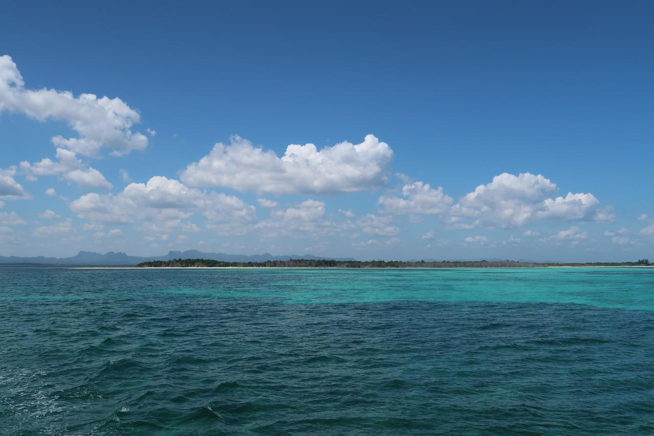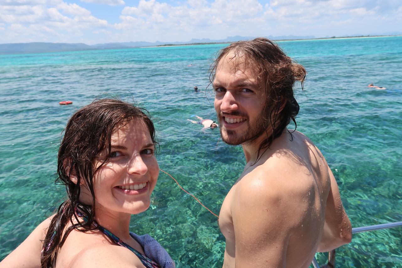 Kurz darauf sind wir wieder an Bord eines Tuckerboots, diesmal in Richtung der vorgelagerten Korallenriffe. Da das Boot überfüllt ist, dürfen wir oben beim Kapitän sitzen und den weiten Blick über die Sandinseln und das türkise Meer genießen. Das Wasser könnte klarer nicht sein und wir sehen beim Schnorcheln jede Menge bunte Fische und viele lila Korallen. Wir machen uns einen Spaß daraus, durch die Blubberblasen der Taucher zu schwimmen.