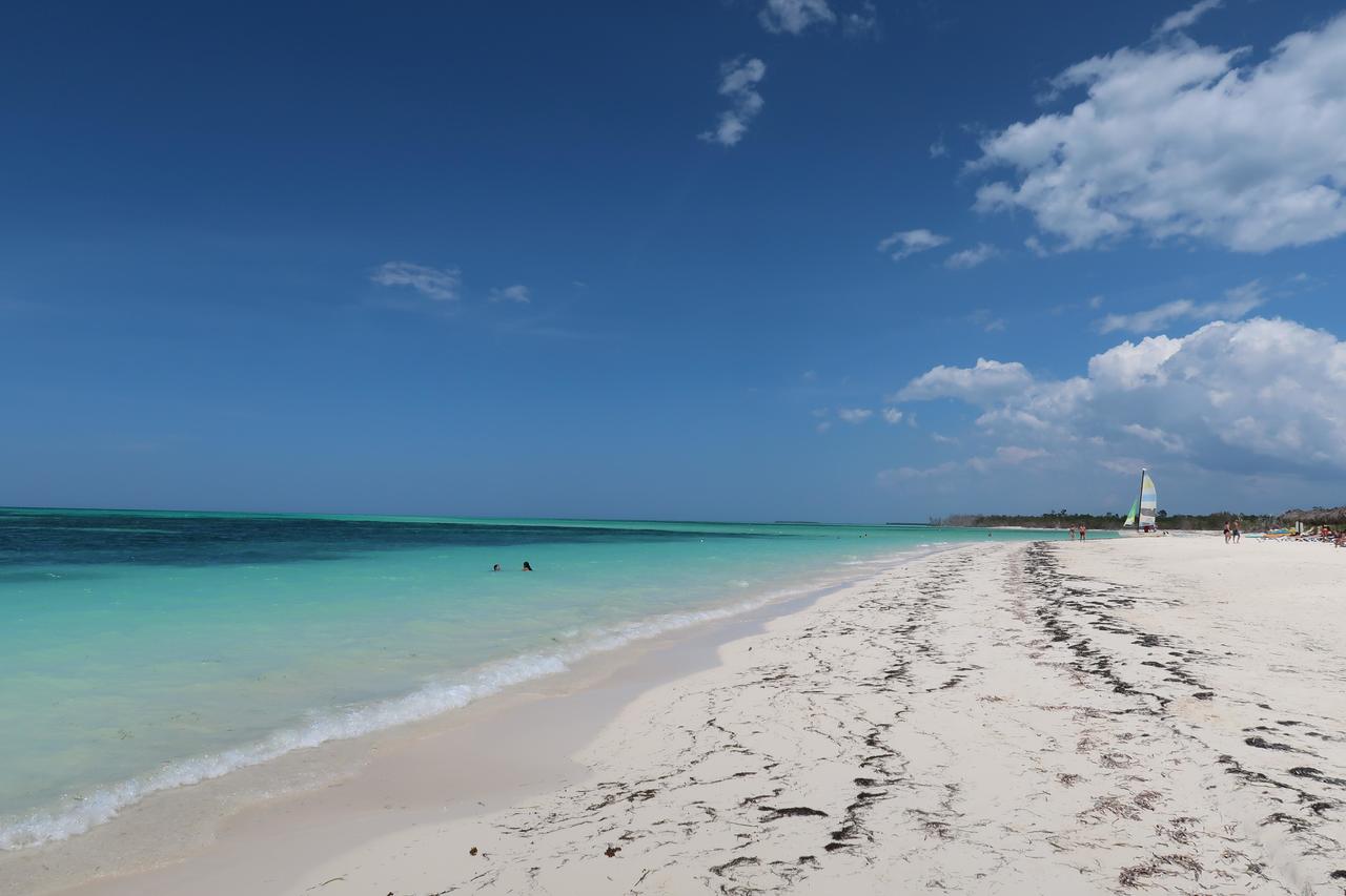 An der Atlantikküste angekommen, steigen wir in einen alten Kahn, der uns langsam und laut tuckernd zur Sandinsel Cayo Levisa bringt. Über Plankenwege gelangen wir durch Mangrovenwälder zum Resort am vier Kilometer langen, weißen Sandstrand, wo wir mit Saft und einer Gitarreneinlage begrüßt werden. Irgendwie wirken die Hotelbediensteten auf der Insel nicht so glücklich und gelöst wie die Kubaner, die wir bisher getroffen haben.