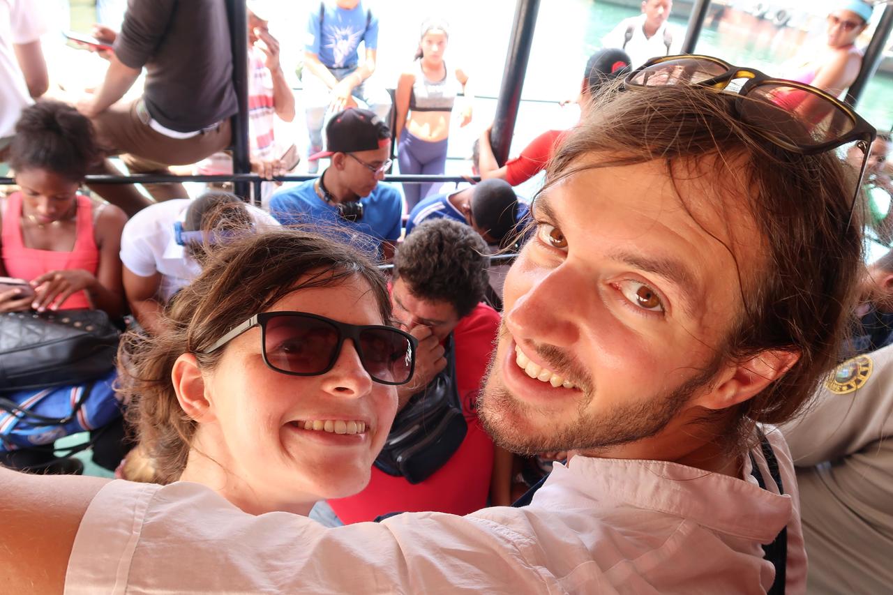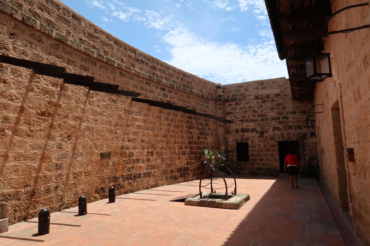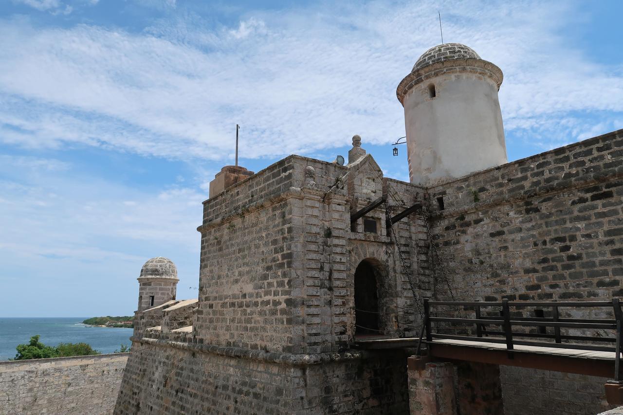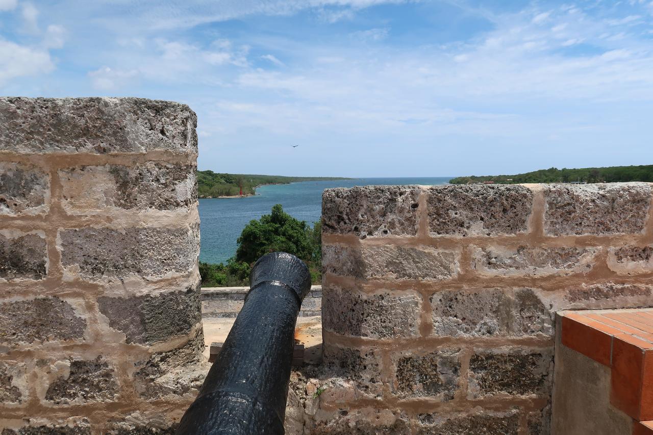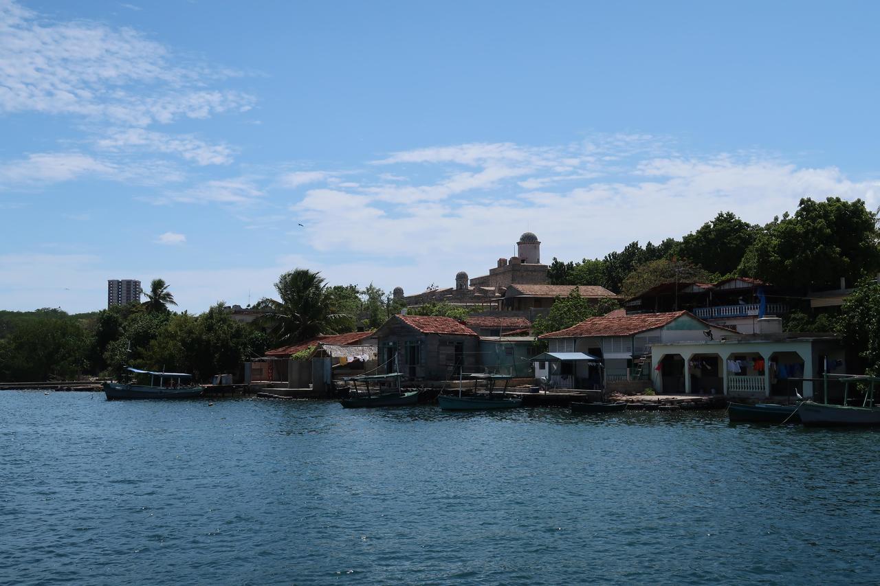 In einer Fähre oder besser gesagt einem restlos überfüllten Kahn tuckern wir über die Bahía de Cienfuegos in Richtung Karibik. Die Befestigungsanlage des Castillo de Nuestra Señora de los Ángeles ist aus dem Jahr 1738 – also fast 100 Jahre älter als Cienfuegos selbst – und überwachte den strategisch wichtigen Punkt der Passage zur Bucht. Außer Waffen und Legenden gibt es hier nicht allzu viel, aber der Blick aufs offene Meer ist nett. Als wir zurück tuckern, sehen wir ein Atomkraftwerk hinter den Hügeln aufragen, das Ende der 80er Jahre mit Unterstützung aus der Sowjetunion zu bauen begonnen, nach der Wende allerdings nie fertiggestellt wurde.